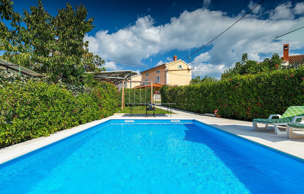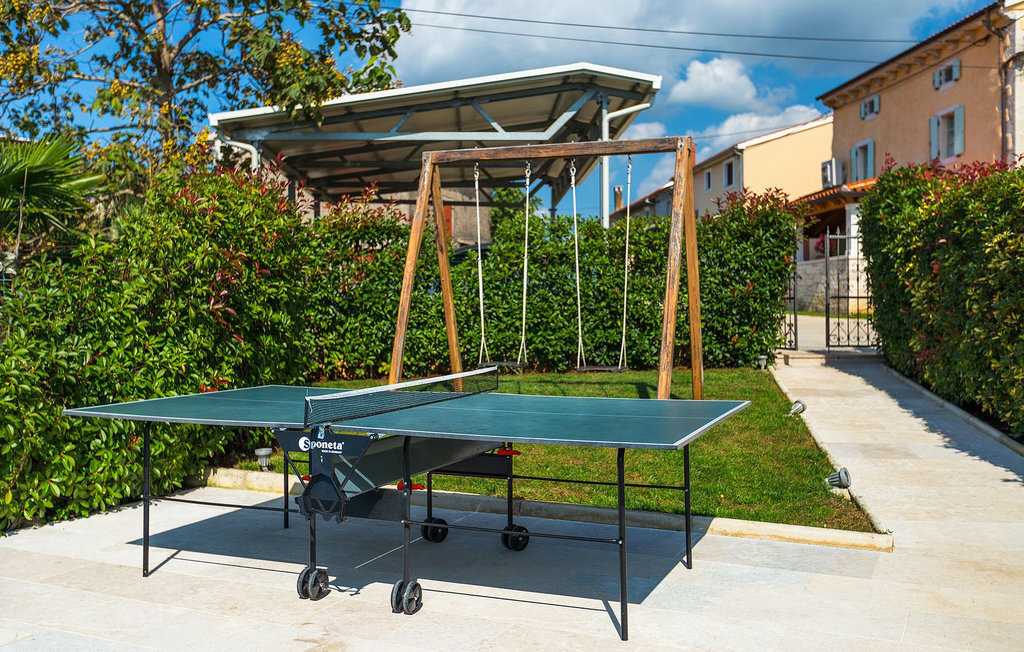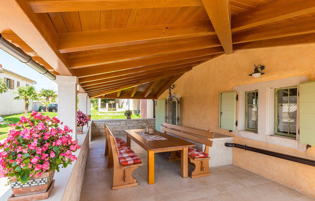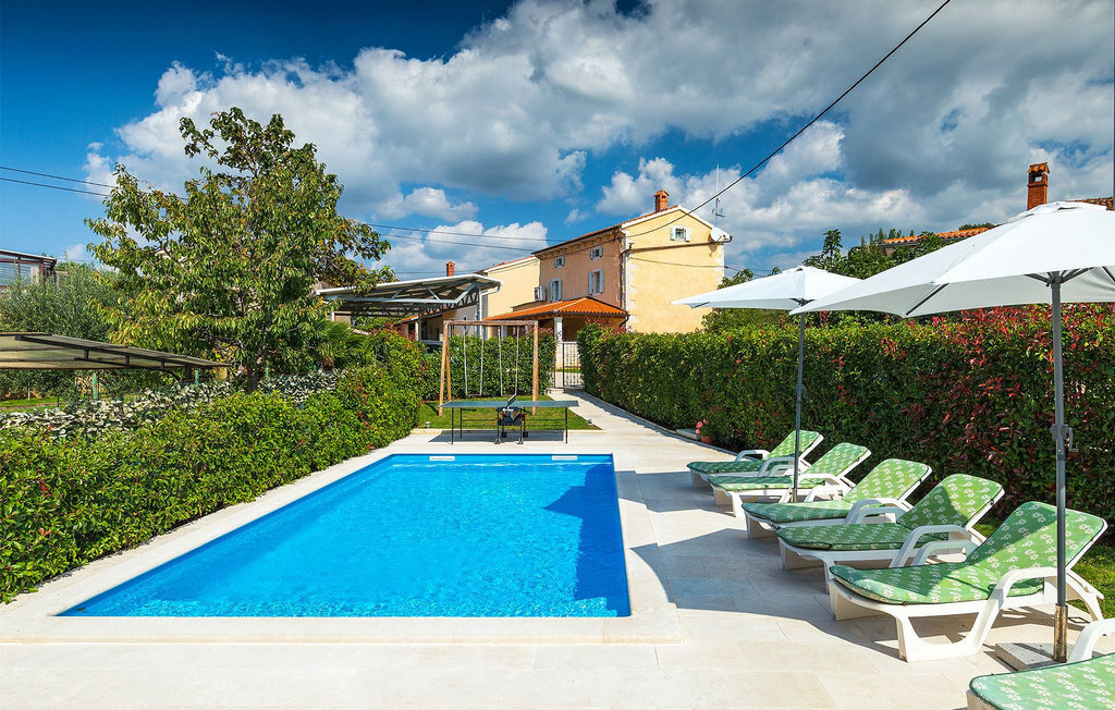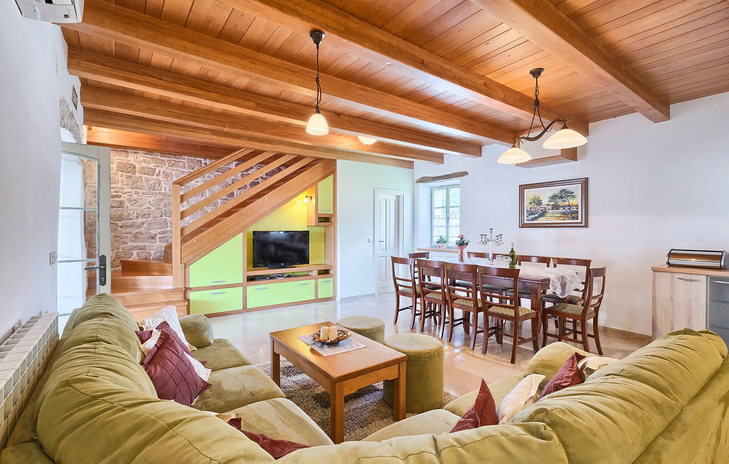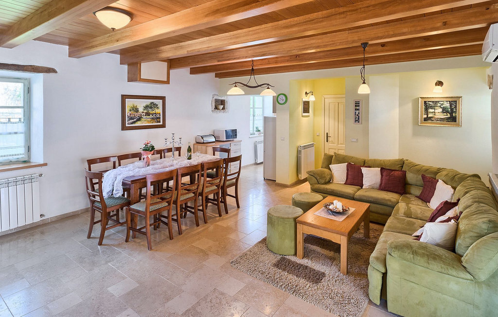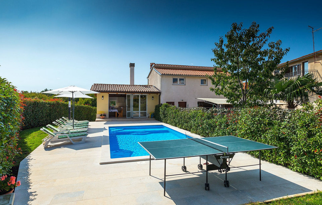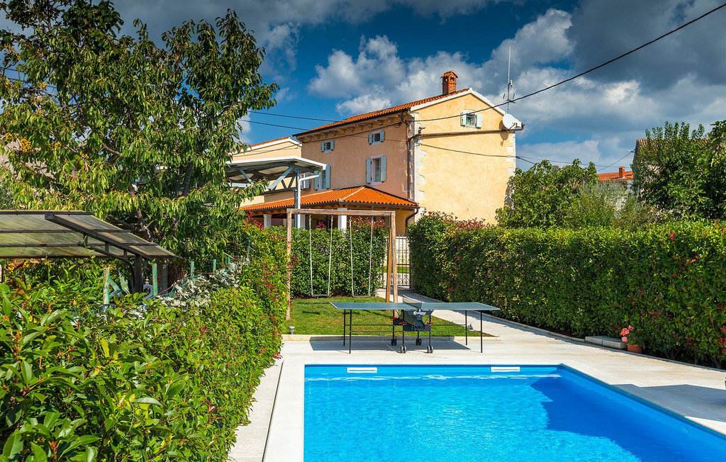 Cette charmante maison de vacances peut accueillir jusqu'à 8 personnes dans 4 chambres à coucher (2 avec lit double, 2 avec 2 lits simples chacune) ainsi qu'un canapé-lit supplémentaire au dernier étage. Toutes les pièces sont climatisées et nouvellement équipées. Le salon est spacieux et accueillant. Il offre confort moderne et détente. Devant la maison se trouve la magnifique terrasse couverte avec une grande table pour manger en plein air. De l'autre côté de la route, à quelques pas, se trouve une cour séparée, clôturée par un mur et sécurisée par un portail, avec une piscine. Vous y trouverez également une cuisine d'été entièrement équipée avec une grande table à manger ainsi qu'un barbecue. Vous y trouverez également une balançoire et une table de ping-pong.Cette propriété se trouve dans la partie centrale de la péninsule d'Istrie, près de la petite ville de Kanfanar, plus précisément dans le hameau de Bubani. L'architecture ancienne de Kanfanar et des villages environnants est bien conservée et les oliviers dominent cette zone au climat méditerranéen chaud. Kanfanar et la campagne environnante sont très connus, non seulement pour leur patrimoine historique et culturel, mais aussi pour leur excellente cuisine authentique d'Istrie. L'Istrie est un lieu unique et enchanteur qui, depuis qu'il existe des archives historiques, accueille des visiteurs et des colons de toutes les régions du monde. La ville de Pula avec son amphithéâtre romain et le parc national de Brijuni avec son terrain de golf de 18 trous ne sont qu'à 20 minutes en voiture. De fantastiques restaurants et tavernes se trouvent à quelques minutes en voiture, partout dans les environs. Un endroit idéal pour profiter de la nourriture et de l'histoire - et bien sûr pour se détendre.