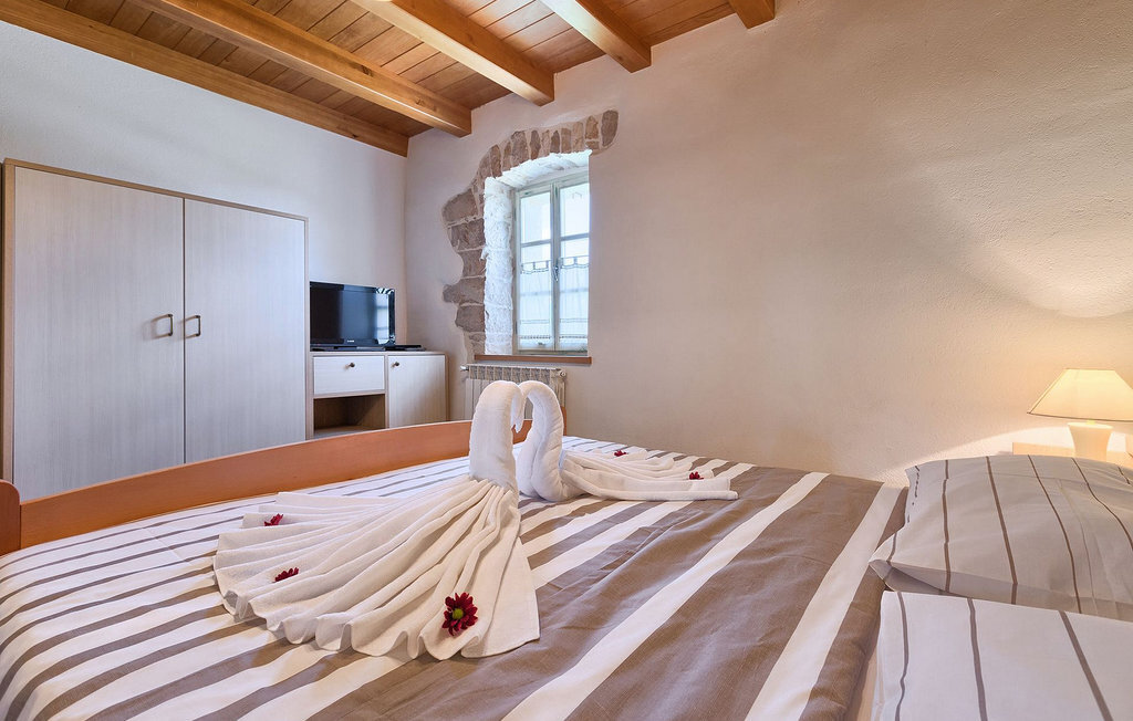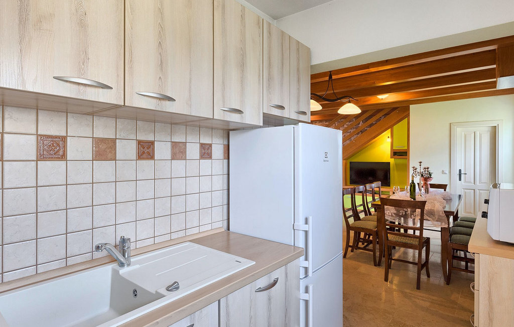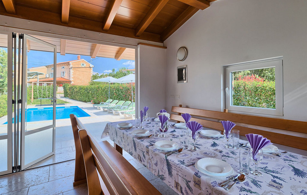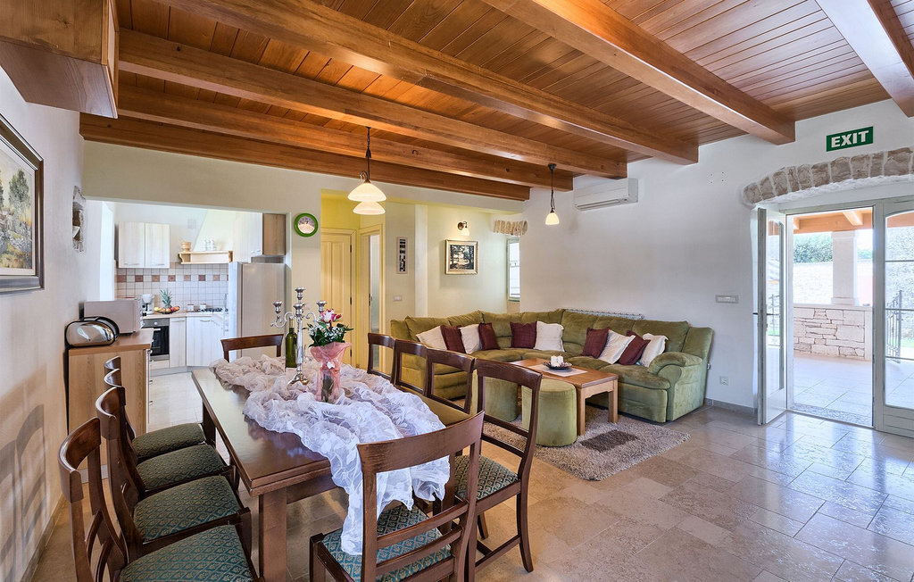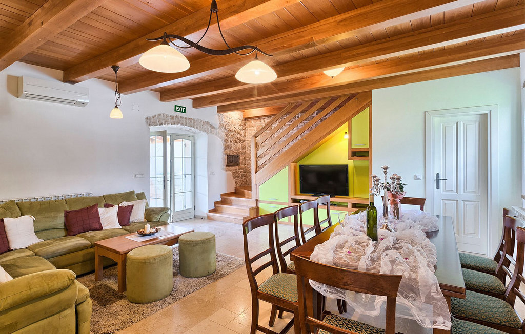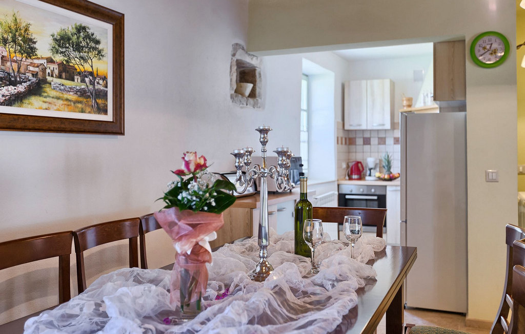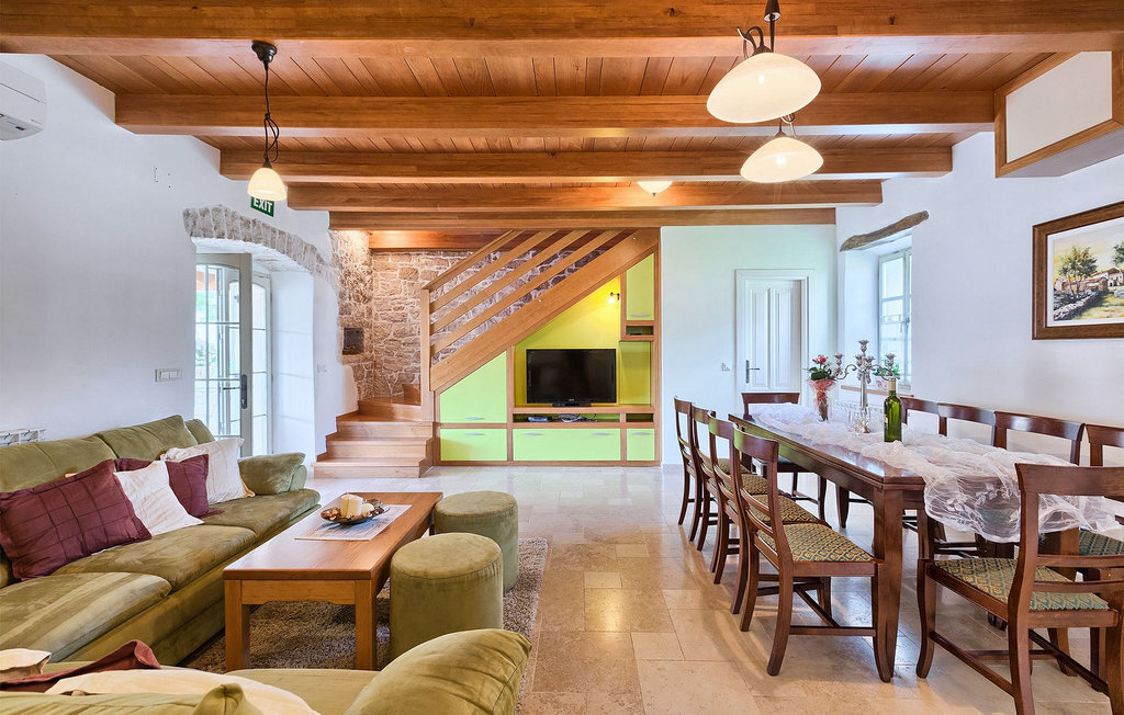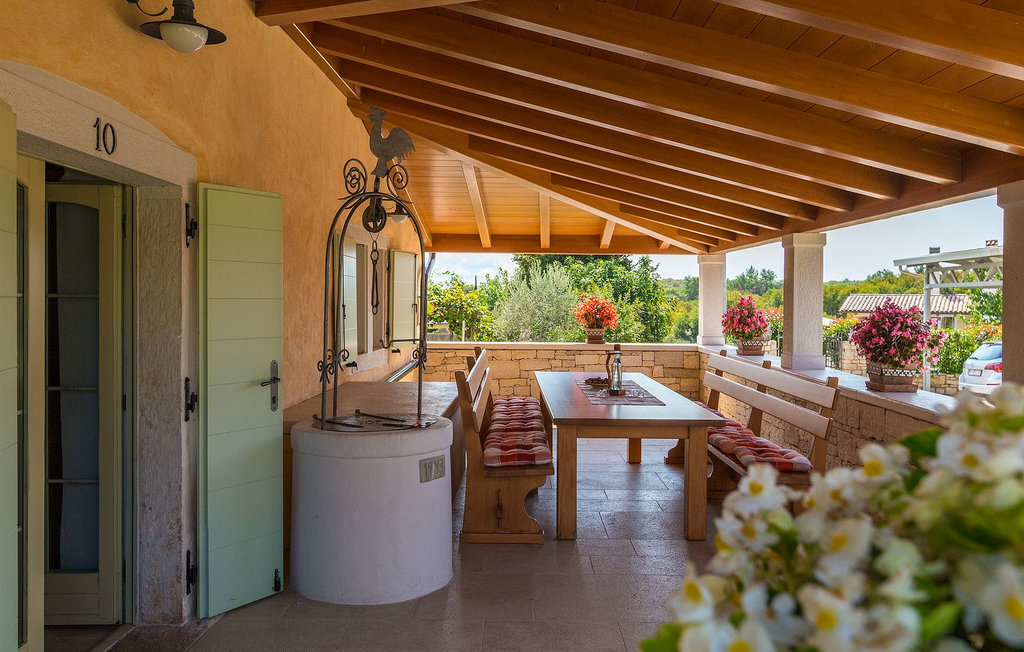 Cette charmante maison de vacances peut accueillir jusqu'à 8 personnes dans 4 chambres à coucher (2 avec lit double, 2 avec 2 lits simples chacune) ainsi qu'un canapé-lit supplémentaire au dernier étage. Toutes les pièces sont climatisées et nouvellement équipées. Le salon est spacieux et accueillant. Il offre confort moderne et détente. Devant la maison se trouve la magnifique terrasse couverte avec une grande table pour manger en plein air. De l'autre côté de la route, à quelques pas, se trouve une cour séparée, clôturée par un mur et sécurisée par un portail, avec une piscine. Vous y trouverez également une cuisine d'été entièrement équipée avec une grande table à manger ainsi qu'un barbecue. Vous y trouverez également une balançoire et une table de ping-pong.Cette propriété se trouve dans la partie centrale de la péninsule d'Istrie, près de la petite ville de Kanfanar, plus précisément dans le hameau de Bubani. L'architecture ancienne de Kanfanar et des villages environnants est bien conservée et les oliviers dominent cette zone au climat méditerranéen chaud. Kanfanar et la campagne environnante sont très connus, non seulement pour leur patrimoine historique et culturel, mais aussi pour leur excellente cuisine authentique d'Istrie. L'Istrie est un lieu unique et enchanteur qui, depuis qu'il existe des archives historiques, accueille des visiteurs et des colons de toutes les régions du monde. La ville de Pula avec son amphithéâtre romain et le parc national de Brijuni avec son terrain de golf de 18 trous ne sont qu'à 20 minutes en voiture. De fantastiques restaurants et tavernes se trouvent à quelques minutes en voiture, partout dans les environs. Un endroit idéal pour profiter de la nourriture et de l'histoire - et bien sûr pour se détendre.