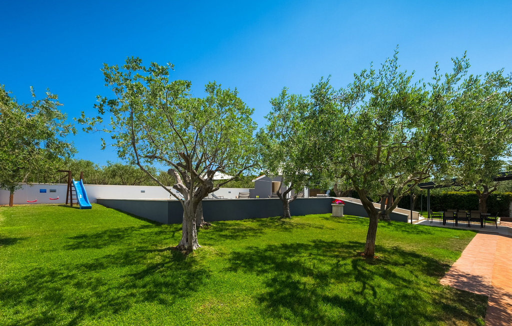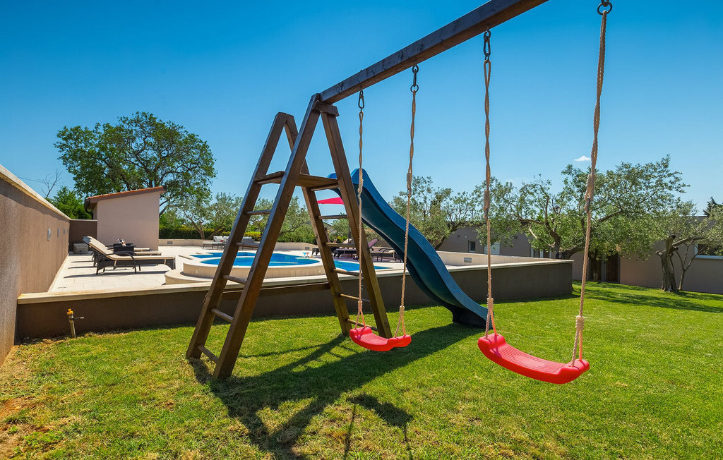 Pour les réunions du soir, un grand lit de jardin avec des coussins confortables vous permettra de vous détendre en sirotant votre boisson préférée. Et pendant que les adultes discutent autour de boissons et d'histoires, les enfants sont sur leur propre terrain de jeu privé.