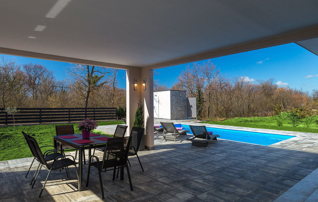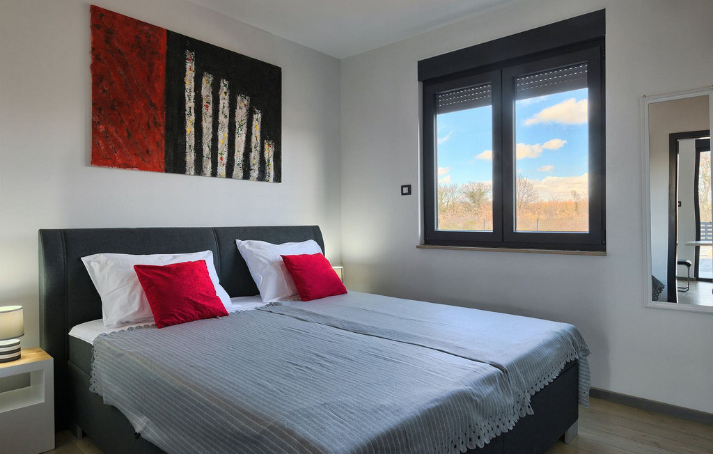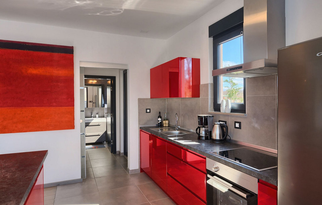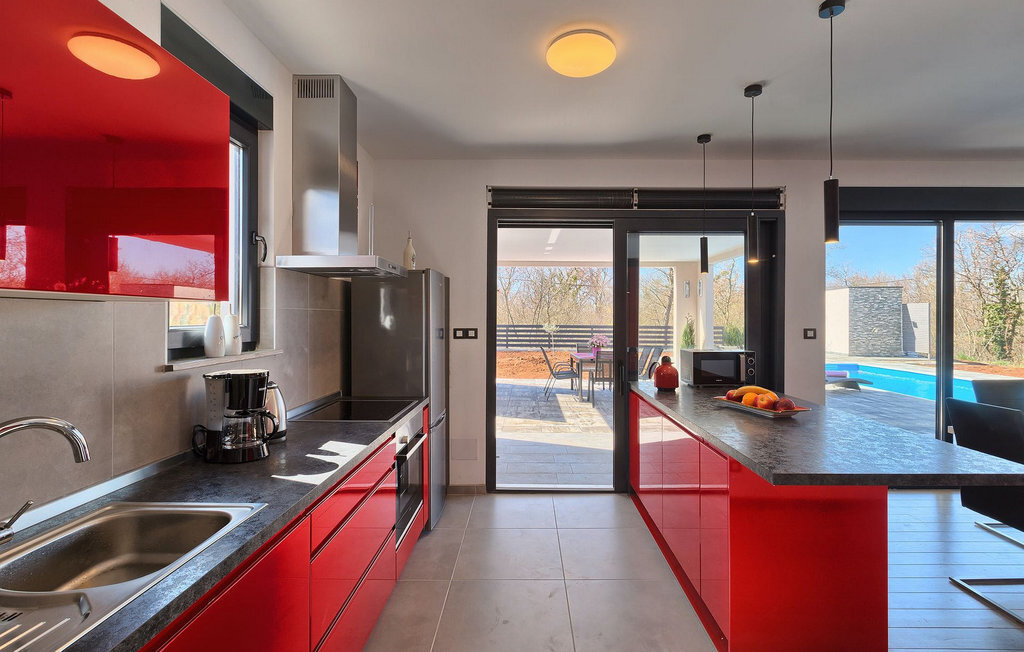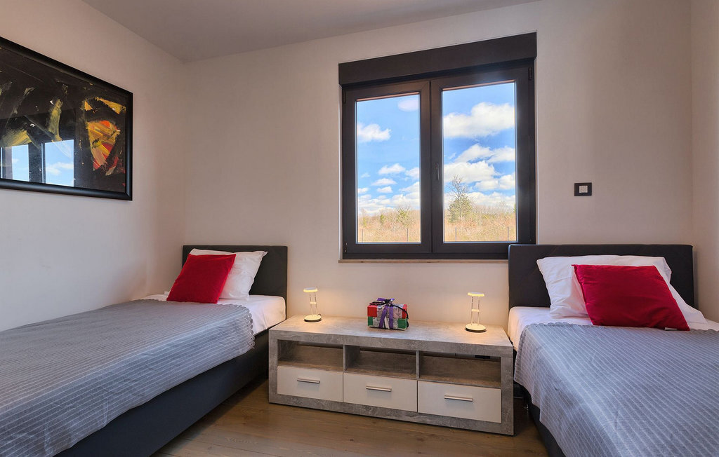 Cette belle villa aménagée avec style est le choix parfait pour des vacances en famille. Cette villa, située dans un village tranquille d'Istrie, est un logement idéal pour 4 personnes dans 90 mètres carrés. Le grand canapé-lit dans le salon peut accueillir 2 personnes supplémentaires. Le salon de la villa a un accès direct à la piscine privée dans le jardin de la villa, et est inondé de lumière grâce à la grande surface vitrée. Le salon est relié à la salle à manger et à la cuisine entièrement équipée. La cuisine n'est cependant pas le seul endroit où vous pouvez préparer vos repas ; sur la spacieuse terrasse couverte devant la villa, vous disposez d'un barbecue à gaz, ainsi que d'un évier et de vaisselle. Si vous passez vos vacances avec des enfants, en plus de la piscine privée, ils peuvent aussi s'amuser au badminton ou sur le toboggan et la balançoire. Dans la villa, il y a en tout 2 chambres à coucher et 2 salles de bain. Une chambre dispose d'un lit double et d'une salle de bain privée. La deuxième chambre a deux lits simples. Les deux chambres, ainsi que l'ensemble de la villa, sont meublées simplement mais avec style et vous offrent des vacances parfaitement reposantes.Les deux villas, Sorella 1 et Sorella 2, sont situées dans un village tranquille d'Istrie, qui est un mélange parfait de calme et de détente, loin de l'agitation de la ville. Pourtant, les destinations de vacances connues sur la côte, comme Pula et Rovinj, sont facilement accessibles. L'Istrie centrale est une région magnifique avec de nombreuses petites villes médiévales dotées de bons restaurants, de cafés, de vignobles et de boutiques. Svetvinenat et Vodnjan sont deux petites villes de ce type, situées à moins de 10 km de la villa. Pendant que vous passez vos vacances dans le calme de cette localité de l'Istrie centrale, vous pouvez profiter de l'occasion pour visiter Faana et les belles plages environnantes ou de la possibilité de vous rendre en bateau dans l'un des parcs nationaux de Croatie - Brijuni.