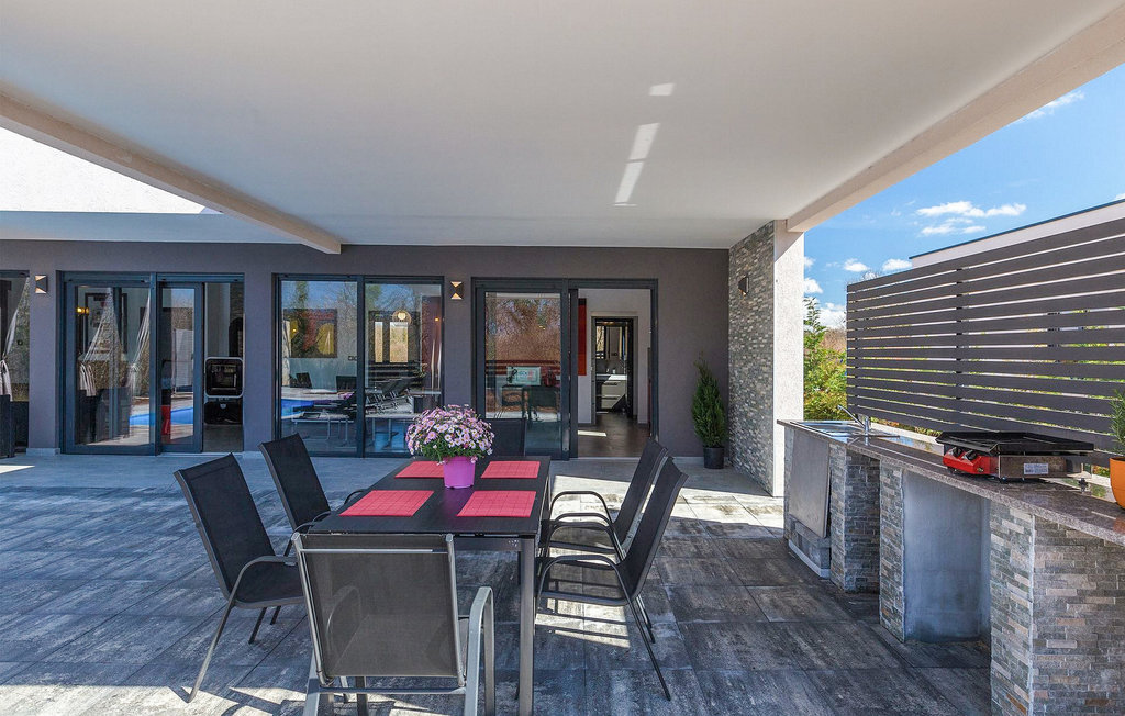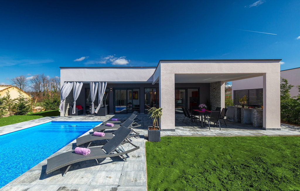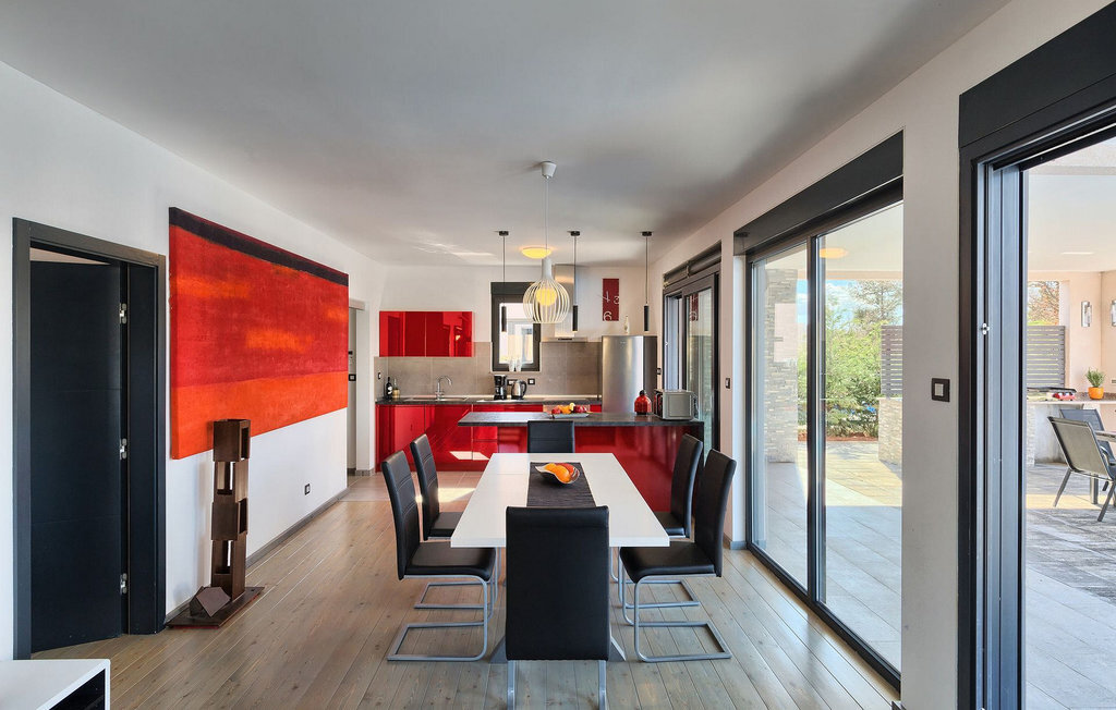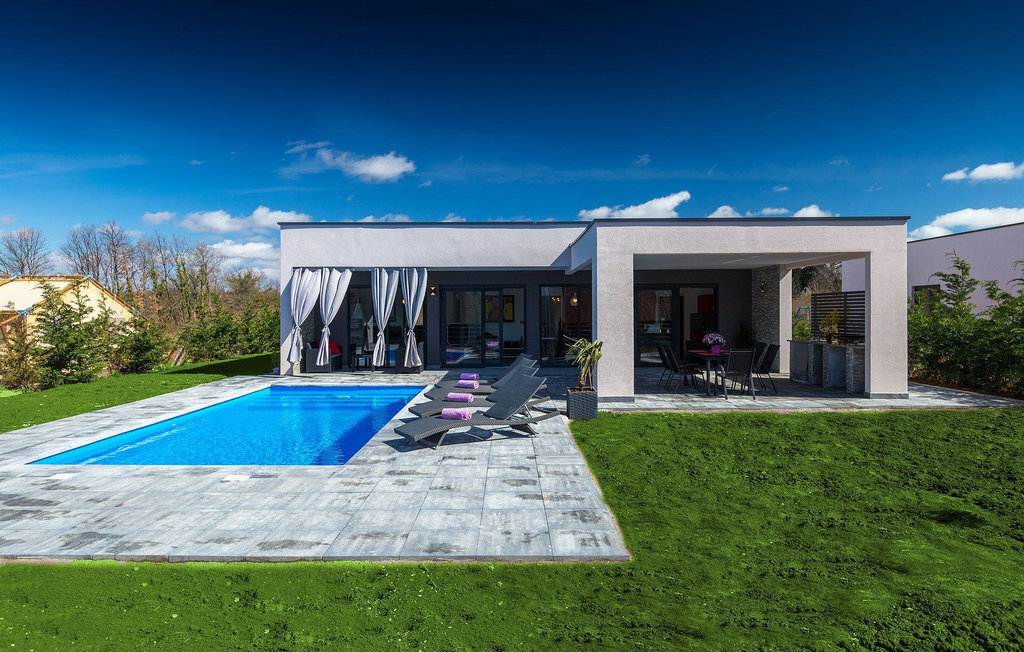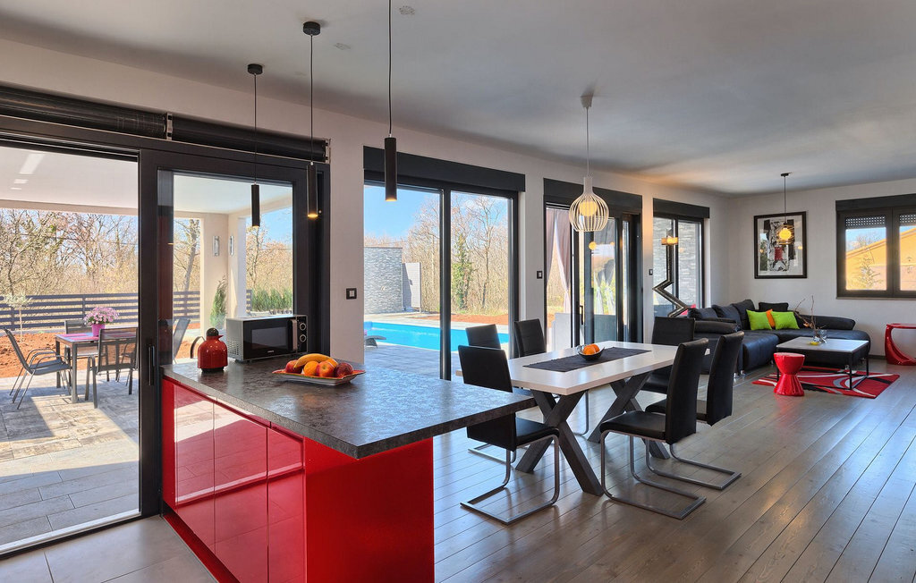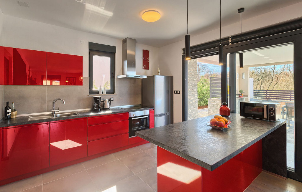 Cette belle villa aménagée avec style est le choix parfait pour des vacances en famille. Cette villa, située dans un village tranquille d'Istrie, est un logement idéal pour 4 personnes dans 90 mètres carrés. Le grand canapé-lit dans le salon peut accueillir 2 personnes supplémentaires. Le salon de la villa a un accès direct à la piscine privée dans le jardin de la villa, et est inondé de lumière grâce à la grande surface vitrée. Le salon est relié à la salle à manger et à la cuisine entièrement équipée. La cuisine n'est cependant pas le seul endroit où vous pouvez préparer vos repas ; sur la spacieuse terrasse couverte devant la villa, vous disposez d'un barbecue à gaz, ainsi que d'un évier et de vaisselle. Si vous passez vos vacances avec des enfants, en plus de la piscine privée, ils peuvent aussi s'amuser au badminton ou sur le toboggan et la balançoire. Dans la villa, il y a en tout 2 chambres à coucher et 2 salles de bain. Une chambre dispose d'un lit double et d'une salle de bain privée. La deuxième chambre a deux lits simples. Les deux chambres, ainsi que l'ensemble de la villa, sont meublées simplement mais avec style et vous offrent des vacances parfaitement reposantes.Les deux villas, Sorella 1 et Sorella 2, sont situées dans un village tranquille d'Istrie, qui est un mélange parfait de calme et de détente, loin de l'agitation de la ville. Pourtant, les destinations de vacances connues sur la côte, comme Pula et Rovinj, sont facilement accessibles. L'Istrie centrale est une région magnifique avec de nombreuses petites villes médiévales dotées de bons restaurants, de cafés, de vignobles et de boutiques. Svetvinenat et Vodnjan sont deux petites villes de ce type, situées à moins de 10 km de la villa. Pendant que vous passez vos vacances dans le calme de cette localité de l'Istrie centrale, vous pouvez profiter de l'occasion pour visiter Faana et les belles plages environnantes ou de la possibilité de vous rendre en bateau dans l'un des parcs nationaux de Croatie - Brijuni.