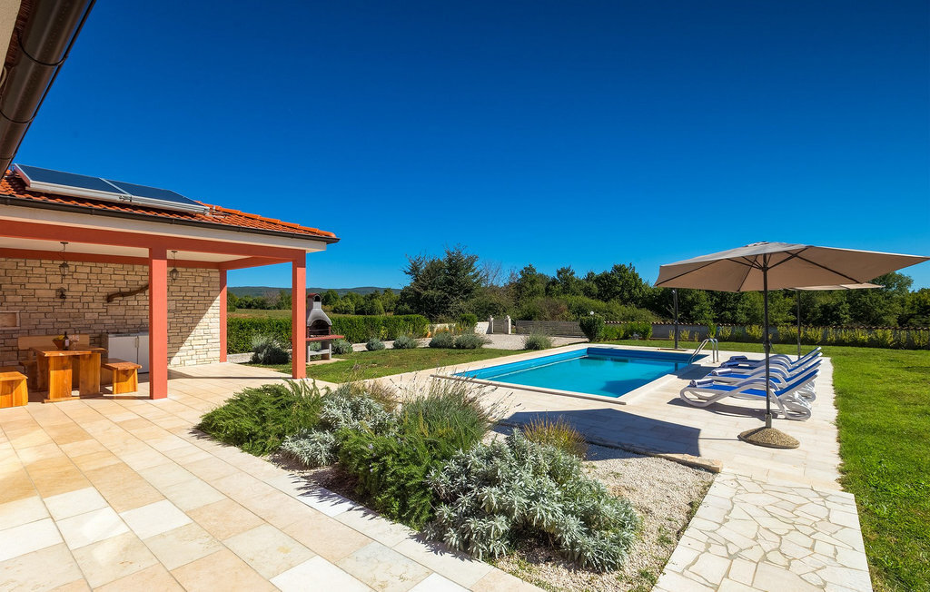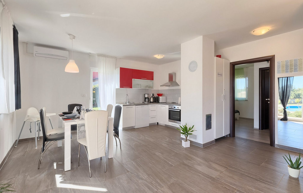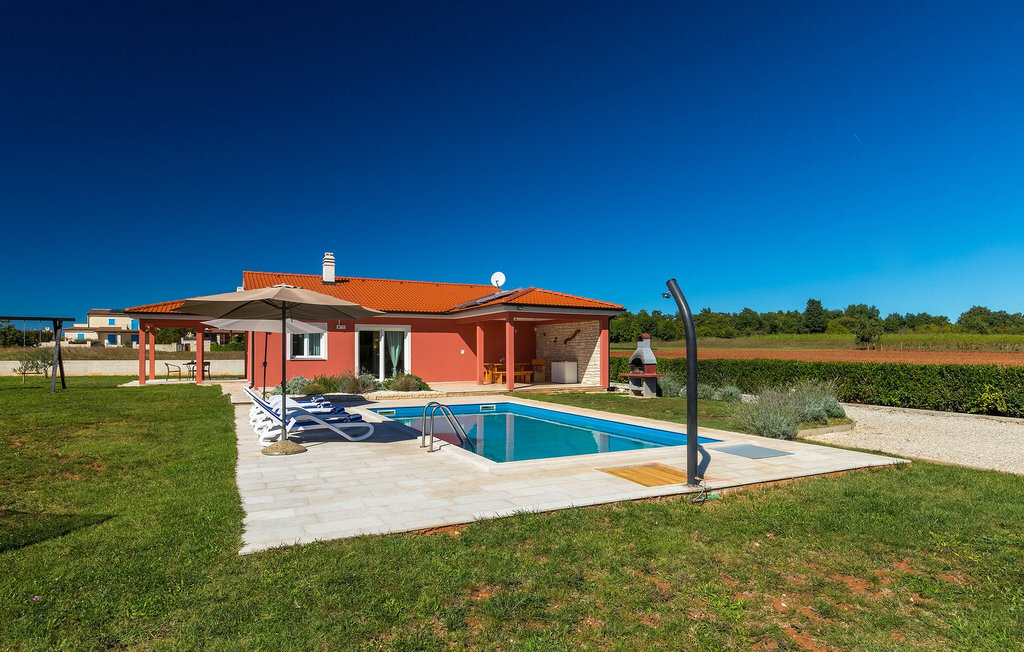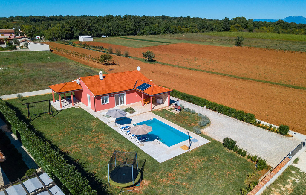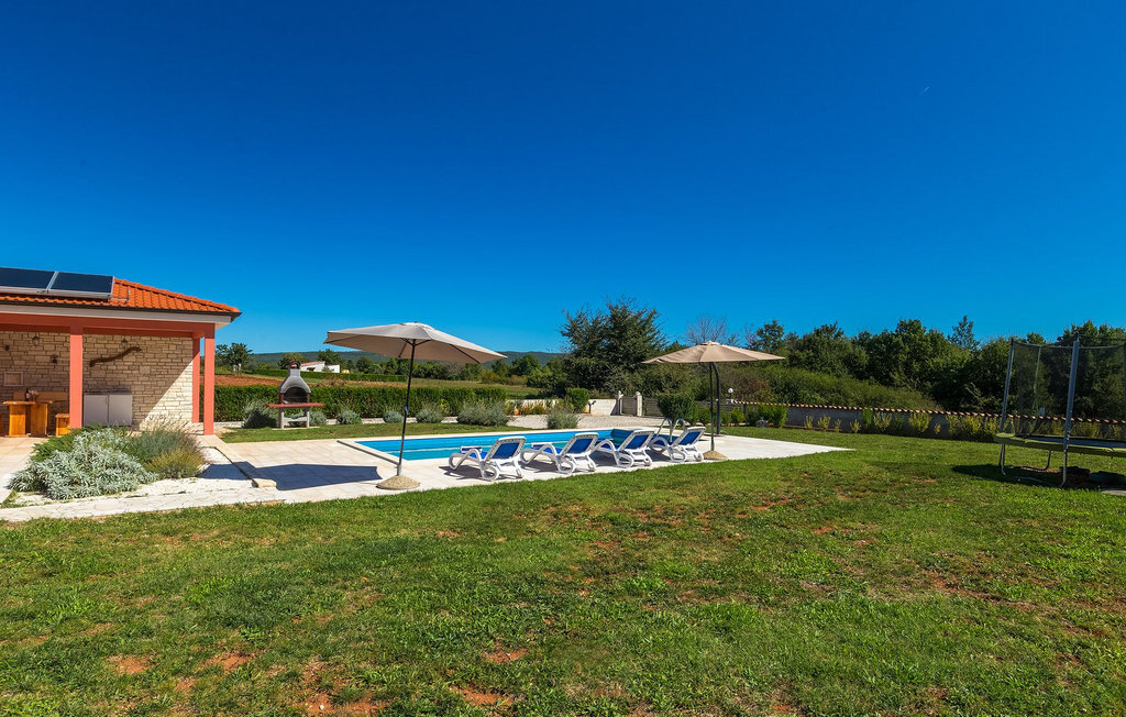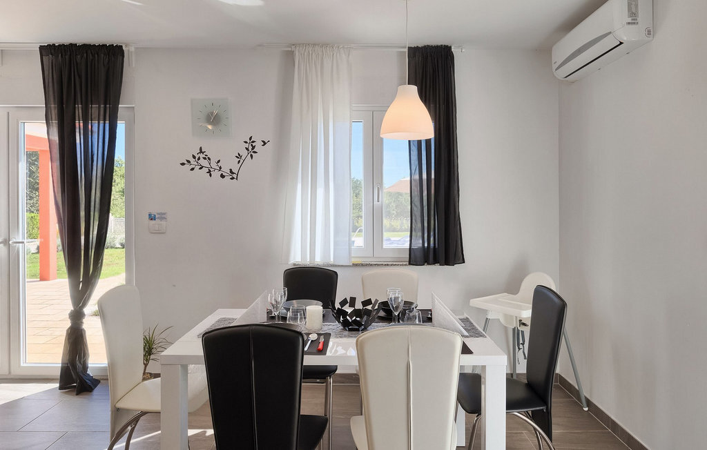 Cette magnifique villa Rebici est située au cœur d'une région rurale pittoresque d'Istrie, entourée de collines, d'oliveraies et de fermes. Elle est idéale pour des vacances familiales reposantes. La Villa Rebici peut accueillir jusqu'à 7 personnes. Dehors, il y a une piscine qui n'est disponible que pour vous et votre famille et qui dispose également de 4 chaises longues. Cette belle villa se compose de 3 chambres à coucher et de 3 salles de bains qui se trouvent au rez-de-chaussée, dont 2 chambres disposent d'une salle de bain privée. La cuisine entièrement équipée et moderne offre tout ce dont vous avez besoin pour préparer de délicieux repas. Un salon et une salle à manger sont également à votre disposition. Si vous souhaitez vous rafraîchir et vous baigner dans la magnifique mer Adriatique, la plage se trouve à seulement 1,5 km de la villa. Vous vous sentirez comme chez vous dans cette villa. Passez vos journées au soleil au bord de la piscine pendant que les enfants s'amusent sur l'aire de jeux de la villa.Cette magnifique villa est située au milieu des magnifiques collines d'Istrie et constitue un bon point de départ pour explorer cette région préservée, mais à un jet de pierre de la mer d'émeraude et des plages de galets isolées de la mer Adriatique. Non loin de la villa se trouve la petite ville médiévale pittoresque de Barban, célèbre pour ses traditionnels jeux de chevaliers annuels "Course à l'anneau". Un très bon ranch de chevaux proposant du trekking et de l'équitation se trouve dans le village voisin de Manjadvorci. Les amateurs de sensations fortes ont à leur disposition un grand parc d'adrénaline à 7 km de la villa, un centre de plongée dans la belle petite baie de Krnica (à 10 minutes en voiture), ainsi que de nombreux sentiers de randonnée et pistes cyclables différents. Un grand choix de plats gastronomiques, préparés avec de délicieux produits locaux, signifie que vous n'aurez jamais à aller bien loin pour trouver un excellent repas. Vous avez également la possibilité d'acheter vos produits alimentaires directement auprès des producteurs locaux. Pour ajouter le dernier ingrédient à cette riche variété d'activités, la ville historique de Pula et les hot spots touristiques animés ne sont qu'à quelques minutes en voiture, ainsi que les ferries pour faire le tour des îles environnantes, d'une beauté à couper le souffle.