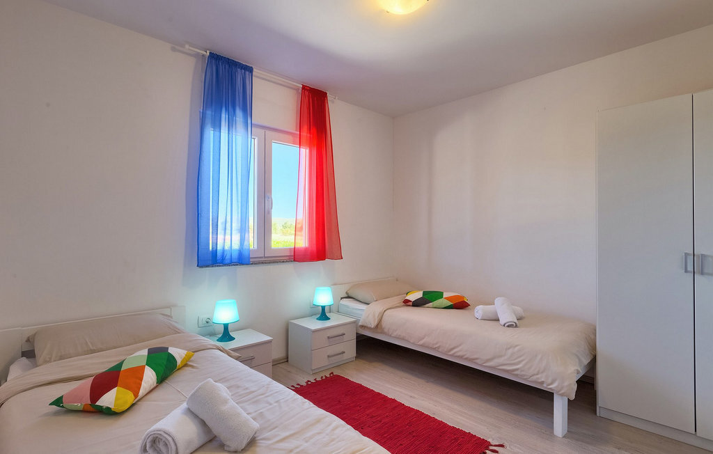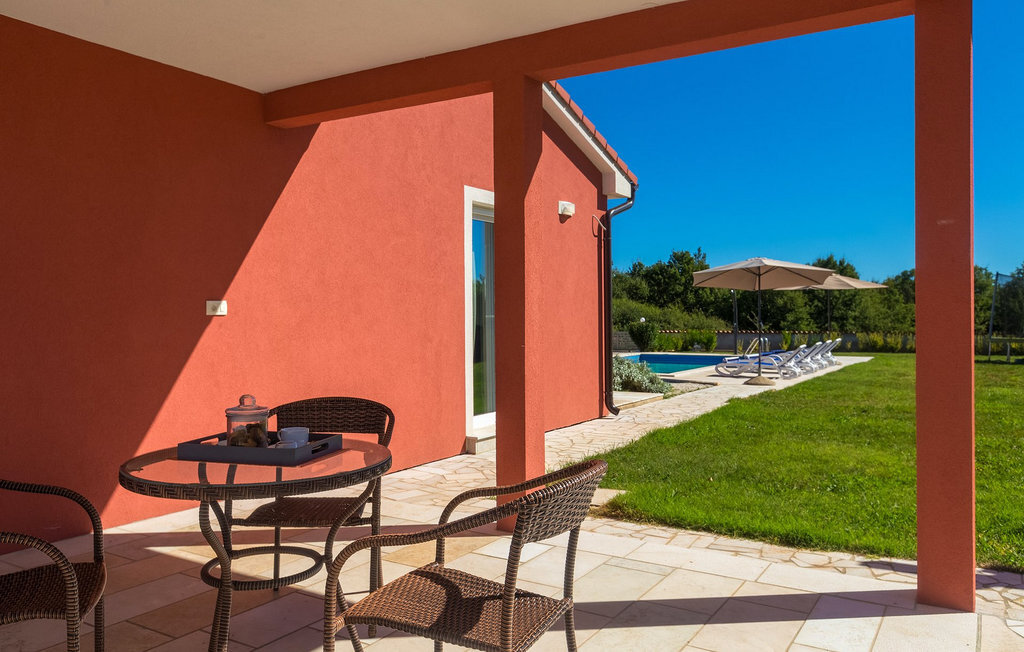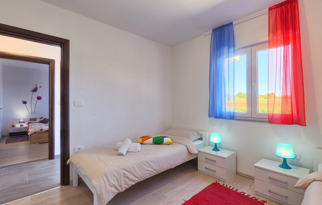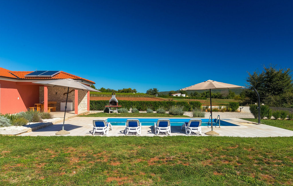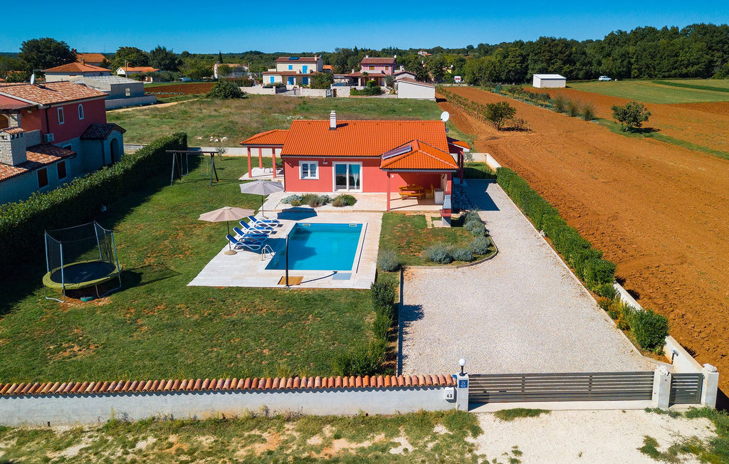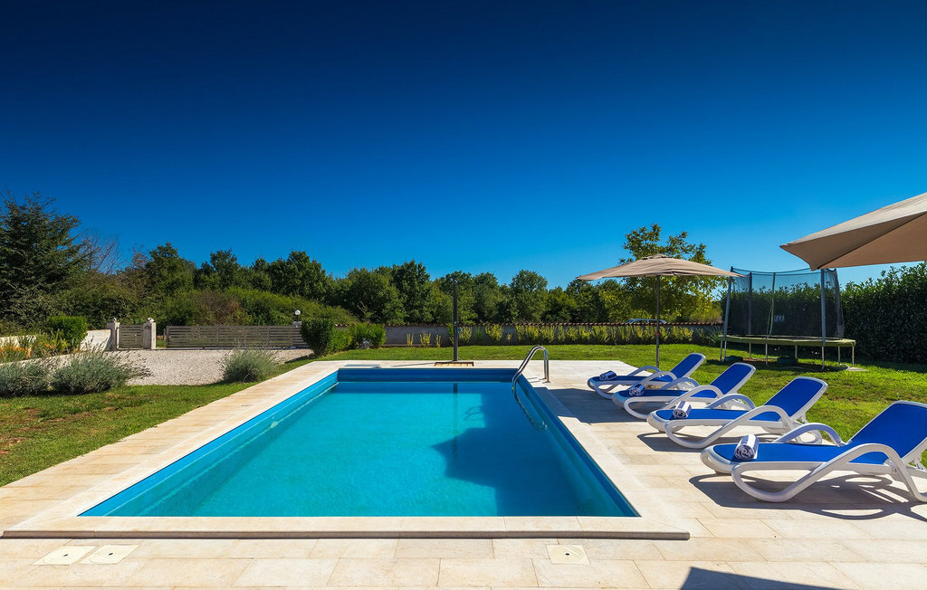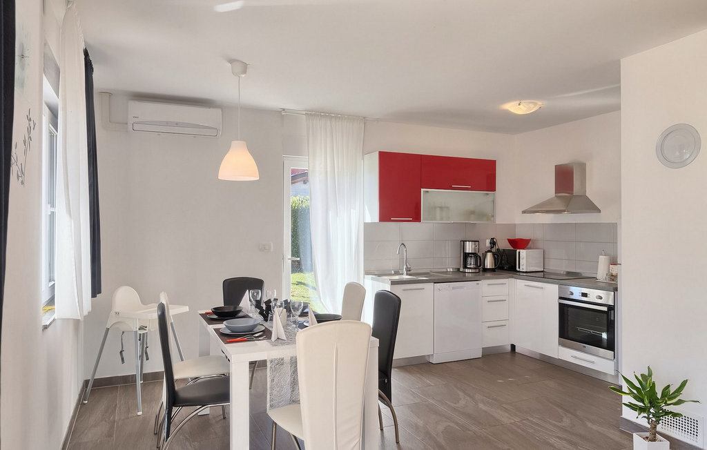 Cette magnifique villa Rebici est située au cœur d'une région rurale pittoresque d'Istrie, entourée de collines, d'oliveraies et de fermes. Elle est idéale pour des vacances familiales reposantes. La Villa Rebici peut accueillir jusqu'à 7 personnes. Dehors, il y a une piscine qui n'est disponible que pour vous et votre famille et qui dispose également de 4 chaises longues. Cette belle villa se compose de 3 chambres à coucher et de 3 salles de bains qui se trouvent au rez-de-chaussée, dont 2 chambres disposent d'une salle de bain privée. La cuisine entièrement équipée et moderne offre tout ce dont vous avez besoin pour préparer de délicieux repas. Un salon et une salle à manger sont également à votre disposition. Si vous souhaitez vous rafraîchir et vous baigner dans la magnifique mer Adriatique, la plage se trouve à seulement 1,5 km de la villa. Vous vous sentirez comme chez vous dans cette villa. Passez vos journées au soleil au bord de la piscine pendant que les enfants s'amusent sur l'aire de jeux de la villa.Cette magnifique villa est située au milieu des magnifiques collines d'Istrie et constitue un bon point de départ pour explorer cette région préservée, mais à un jet de pierre de la mer d'émeraude et des plages de galets isolées de la mer Adriatique. Non loin de la villa se trouve la petite ville médiévale pittoresque de Barban, célèbre pour ses traditionnels jeux de chevaliers annuels "Course à l'anneau". Un très bon ranch de chevaux proposant du trekking et de l'équitation se trouve dans le village voisin de Manjadvorci. Les amateurs de sensations fortes ont à leur disposition un grand parc d'adrénaline à 7 km de la villa, un centre de plongée dans la belle petite baie de Krnica (à 10 minutes en voiture), ainsi que de nombreux sentiers de randonnée et pistes cyclables différents. Un grand choix de plats gastronomiques, préparés avec de délicieux produits locaux, signifie que vous n'aurez jamais à aller bien loin pour trouver un excellent repas. Vous avez également la possibilité d'acheter vos produits alimentaires directement auprès des producteurs locaux. Pour ajouter le dernier ingrédient à cette riche variété d'activités, la ville historique de Pula et les hot spots touristiques animés ne sont qu'à quelques minutes en voiture, ainsi que les ferries pour faire le tour des îles environnantes, d'une beauté à couper le souffle.