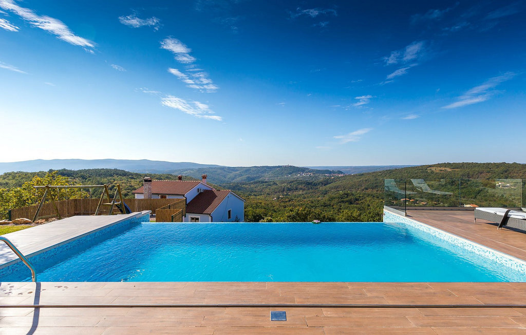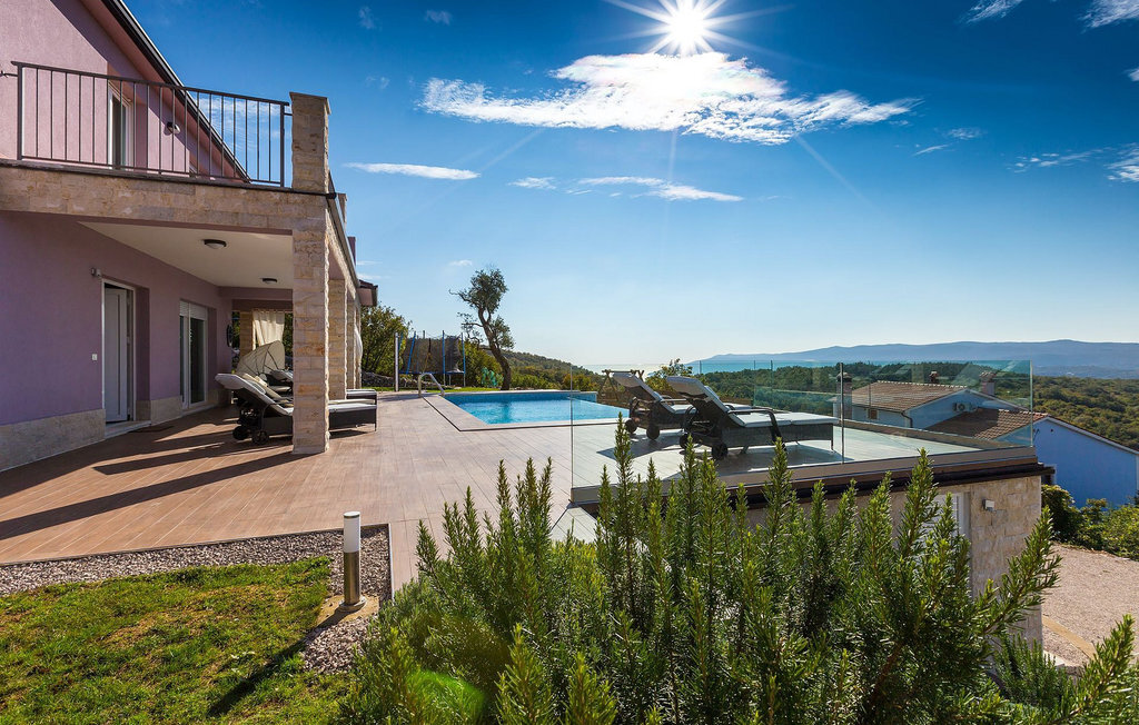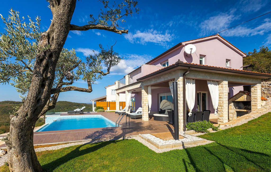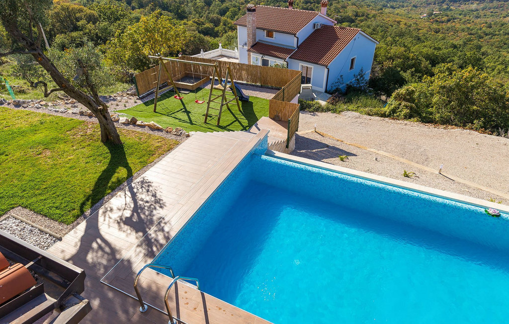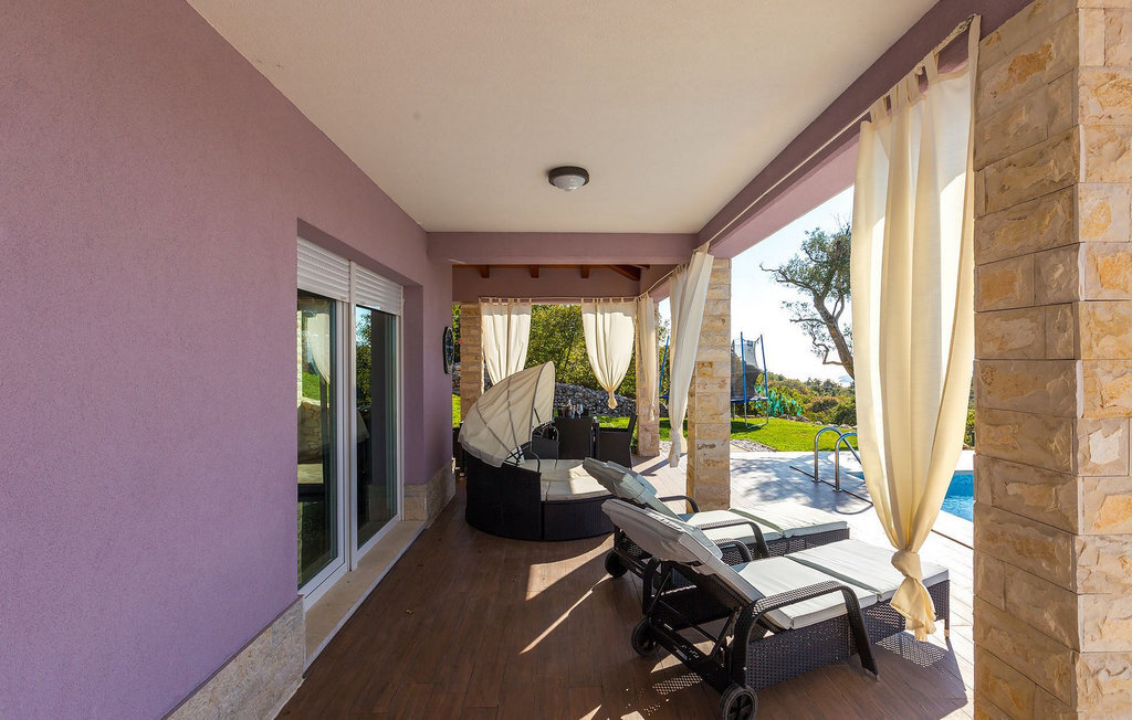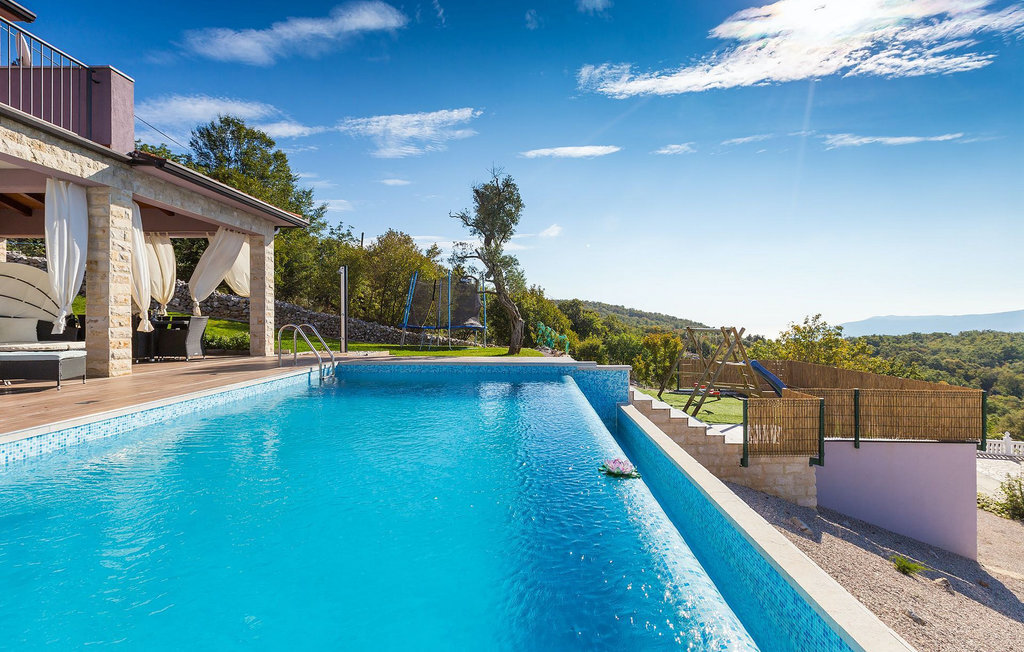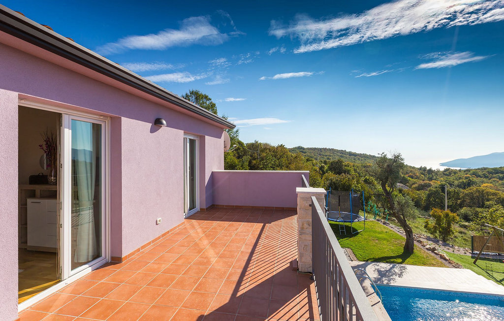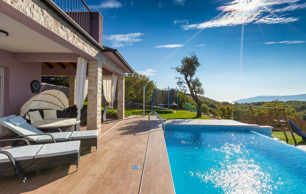 Si les vues à couper le souffle sont en tête de votre liste de souhaits, vous trouverez dans la Villa Amelie votre refuge de vacances idéal. Typique de l'Istrie, cette charmante villa est située à flanc de colline et offre des vues fabuleuses et infinies sur les collines pittoresques avec l'Adriatique scintillante et les îles idylliques du Kvarner à l'horizon. Au rez-de-chaussée spacieux et ouvert, un salon élégant jouxte une salle à manger confortable et une cuisine moderne entièrement équipée, où vous pouvez vous aventurer sans crainte à préparer quelques recettes régionales. Une belle cheminée, des canapés doux comme du beurre et des couleurs naturelles créent une ambiance chaleureuse, tandis que la grande télévision à écran plat avec chaîne stéréo et Playstation assure le divertissement de toute la famille. D'immenses fenêtres panoramiques laissent entrer la lumière naturelle et soulignent l'infinité de la vue. Elles s'ouvrent sur une grande véranda avec un salon accueillant, ainsi qu'une autre salle à manger avec un barbecue intégré pour vos repas savoureux en plein air. La magnifique piscine à débordement est conçue de telle manière que son bord disparaît tout simplement - dans un décor spectaculaire qui offre un panorama ultime. Trois chambres à coucher climatisées, dont une en suite, sont réparties à l'étage supérieur, qui donne sur une terrasse spacieuse où vous pourrez vous réveiller chaque matin avec une vue de rêve. De bons équipements pour vos petits, allant du lit et de la chaise bébé à leur propre aire de jeux en plein air, ainsi qu'une table de ping-pong, un baby-foot et des fléchettes, ajoutent à l'atmosphère familiale. Après une longue journée d'expériences culturelles authentiques et de baignades dans la mer cristalline, quel endroit pour profiter des couchers de soleil violets avec la silhouette de Labin à l'horizon.Depuis son emplacement exceptionnel, la délicieuse Villa Amelie jouit de l'une des plus belles vues sur la ville médiévale de Labin. Perchée sur sa colline au-dessus de la côte magique du Kvarner, Labin est le centre historique et administratif de l'Est de la Sardaigne. La région est un paradis pour les amateurs d'art et d'histoire grâce à son riche patrimoine culturel et architectural. Les ruelles escarpées et sinueuses de la vieille ville abritent des palais historiques bien conservés, de nombreuses galeries d'art et ?studios, ainsi que plusieurs festivals de jazz et de musique classique pendant les mois d'été. La ville dispose de quelques excellents restaurants de poisson, avec de délicieux produits locaux, ainsi que de cafés confortables où vous pourrez profiter de l'atmosphère détendue. La ville côtière de Labin est Rabac, ancien village de pêcheurs, aujourd'hui une destination touristique populaire, entourée d'une variété de plages de galets de rêve.