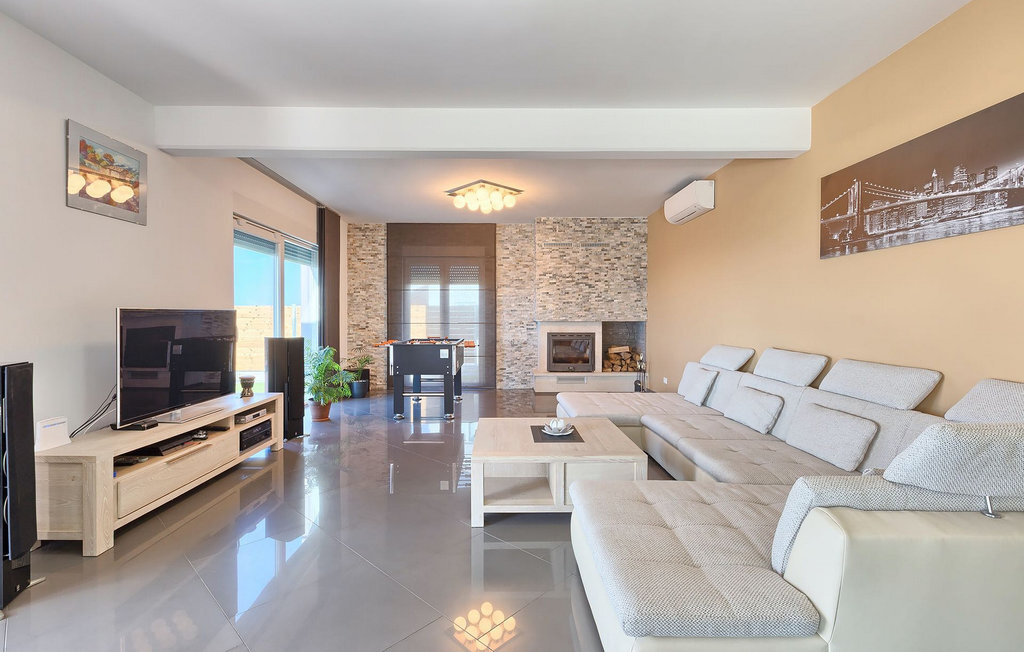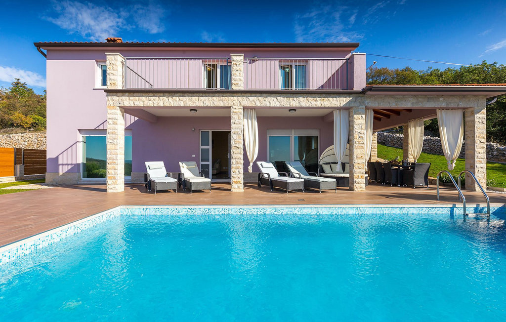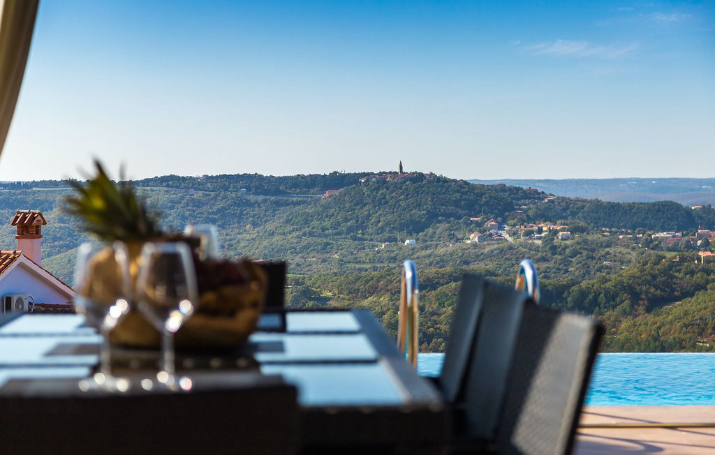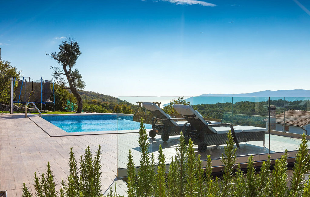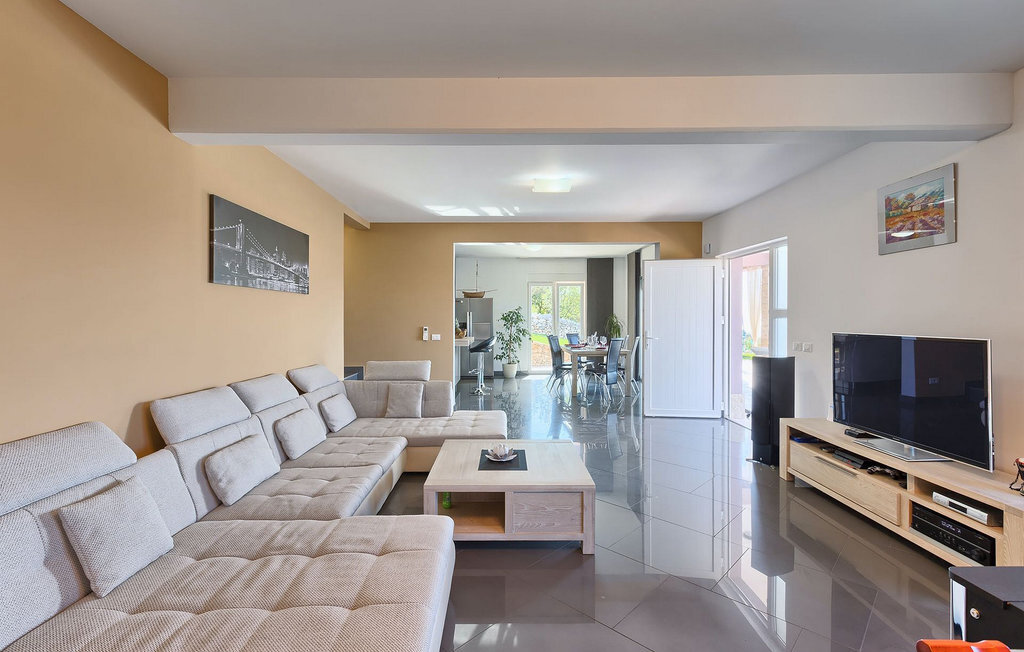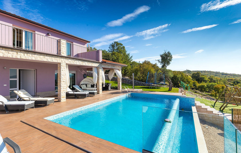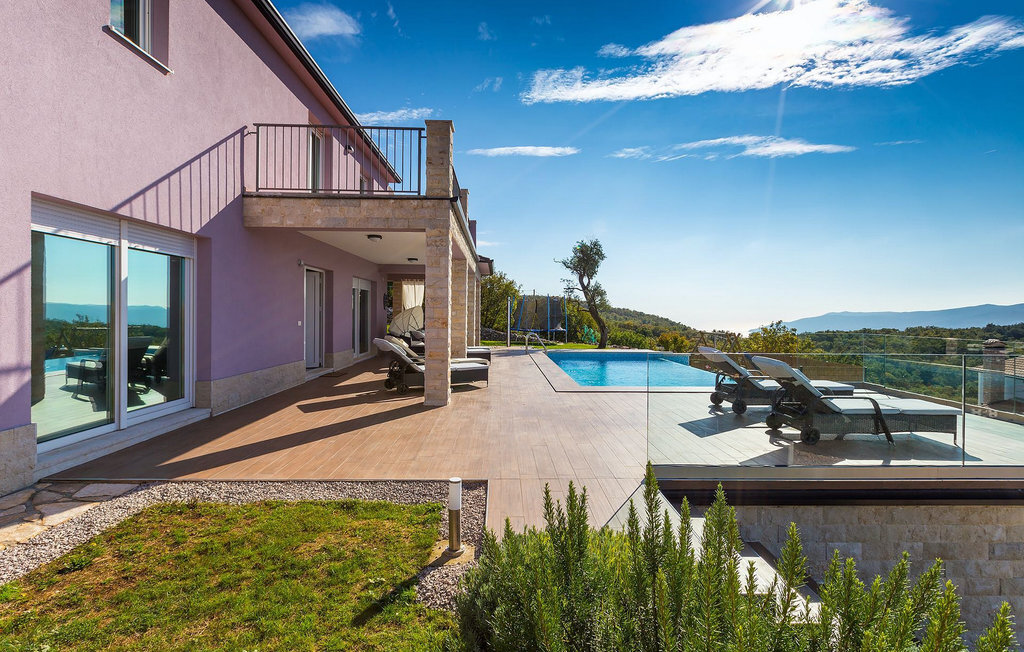 Si les vues à couper le souffle sont en tête de votre liste de souhaits, vous trouverez dans la Villa Amelie votre refuge de vacances idéal. Typique de l'Istrie, cette charmante villa est située à flanc de colline et offre des vues fabuleuses et infinies sur les collines pittoresques avec l'Adriatique scintillante et les îles idylliques du Kvarner à l'horizon. Au rez-de-chaussée spacieux et ouvert, un salon élégant jouxte une salle à manger confortable et une cuisine moderne entièrement équipée, où vous pouvez vous aventurer sans crainte à préparer quelques recettes régionales. Une belle cheminée, des canapés doux comme du beurre et des couleurs naturelles créent une ambiance chaleureuse, tandis que la grande télévision à écran plat avec chaîne stéréo et Playstation assure le divertissement de toute la famille. D'immenses fenêtres panoramiques laissent entrer la lumière naturelle et soulignent l'infinité de la vue. Elles s'ouvrent sur une grande véranda avec un salon accueillant, ainsi qu'une autre salle à manger avec un barbecue intégré pour vos repas savoureux en plein air. La magnifique piscine à débordement est conçue de telle manière que son bord disparaît tout simplement - dans un décor spectaculaire qui offre un panorama ultime. Trois chambres à coucher climatisées, dont une en suite, sont réparties à l'étage supérieur, qui donne sur une terrasse spacieuse où vous pourrez vous réveiller chaque matin avec une vue de rêve. De bons équipements pour vos petits, allant du lit et de la chaise bébé à leur propre aire de jeux en plein air, ainsi qu'une table de ping-pong, un baby-foot et des fléchettes, ajoutent à l'atmosphère familiale. Après une longue journée d'expériences culturelles authentiques et de baignades dans la mer cristalline, quel endroit pour profiter des couchers de soleil violets avec la silhouette de Labin à l'horizon.Depuis son emplacement exceptionnel, la délicieuse Villa Amelie jouit de l'une des plus belles vues sur la ville médiévale de Labin. Perchée sur sa colline au-dessus de la côte magique du Kvarner, Labin est le centre historique et administratif de l'Est de la Sardaigne. La région est un paradis pour les amateurs d'art et d'histoire grâce à son riche patrimoine culturel et architectural. Les ruelles escarpées et sinueuses de la vieille ville abritent des palais historiques bien conservés, de nombreuses galeries d'art et ?studios, ainsi que plusieurs festivals de jazz et de musique classique pendant les mois d'été. La ville dispose de quelques excellents restaurants de poisson, avec de délicieux produits locaux, ainsi que de cafés confortables où vous pourrez profiter de l'atmosphère détendue. La ville côtière de Labin est Rabac, ancien village de pêcheurs, aujourd'hui une destination touristique populaire, entourée d'une variété de plages de galets de rêve.
