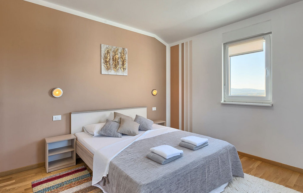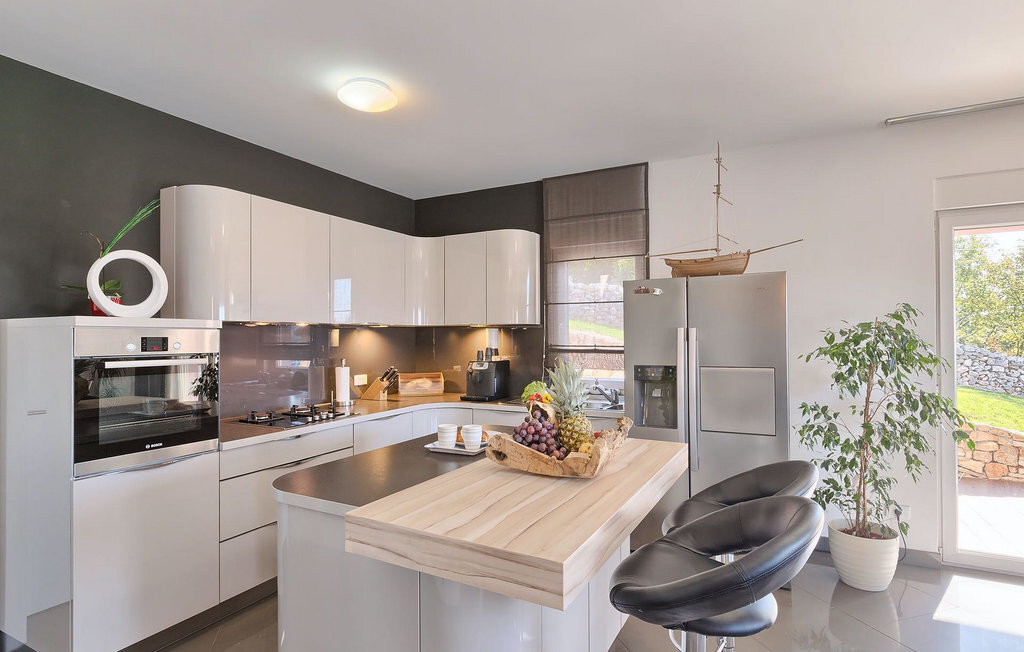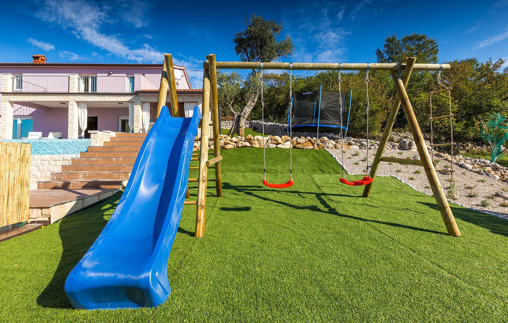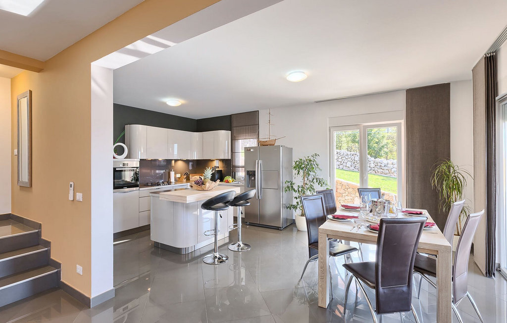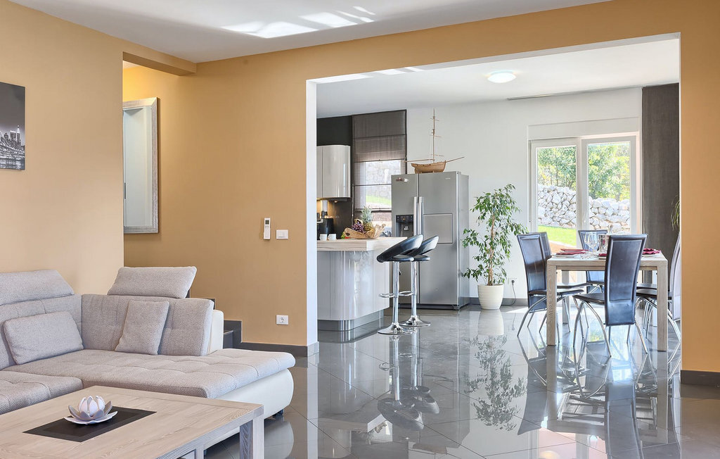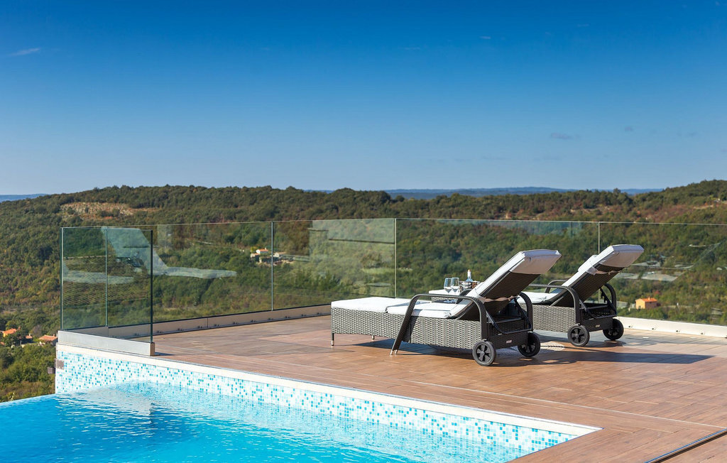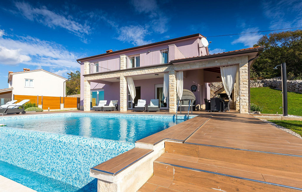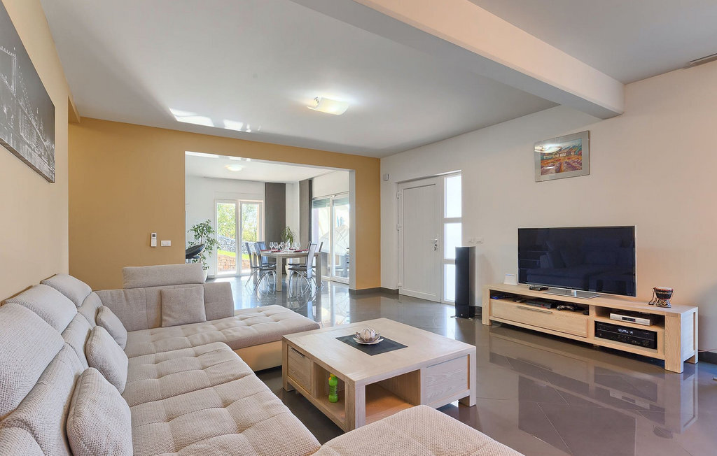 Si les vues à couper le souffle sont en tête de votre liste de souhaits, vous trouverez dans la Villa Amelie votre refuge de vacances idéal. Typique de l'Istrie, cette charmante villa est située à flanc de colline et offre des vues fabuleuses et infinies sur les collines pittoresques avec l'Adriatique scintillante et les îles idylliques du Kvarner à l'horizon. Au rez-de-chaussée spacieux et ouvert, un salon élégant jouxte une salle à manger confortable et une cuisine moderne entièrement équipée, où vous pouvez vous aventurer sans crainte à préparer quelques recettes régionales. Une belle cheminée, des canapés doux comme du beurre et des couleurs naturelles créent une ambiance chaleureuse, tandis que la grande télévision à écran plat avec chaîne stéréo et Playstation assure le divertissement de toute la famille. D'immenses fenêtres panoramiques laissent entrer la lumière naturelle et soulignent l'infinité de la vue. Elles s'ouvrent sur une grande véranda avec un salon accueillant, ainsi qu'une autre salle à manger avec un barbecue intégré pour vos repas savoureux en plein air. La magnifique piscine à débordement est conçue de telle manière que son bord disparaît tout simplement - dans un décor spectaculaire qui offre un panorama ultime. Trois chambres à coucher climatisées, dont une en suite, sont réparties à l'étage supérieur, qui donne sur une terrasse spacieuse où vous pourrez vous réveiller chaque matin avec une vue de rêve. De bons équipements pour vos petits, allant du lit et de la chaise bébé à leur propre aire de jeux en plein air, ainsi qu'une table de ping-pong, un baby-foot et des fléchettes, ajoutent à l'atmosphère familiale. Après une longue journée d'expériences culturelles authentiques et de baignades dans la mer cristalline, quel endroit pour profiter des couchers de soleil violets avec la silhouette de Labin à l'horizon.Depuis son emplacement exceptionnel, la délicieuse Villa Amelie jouit de l'une des plus belles vues sur la ville médiévale de Labin. Perchée sur sa colline au-dessus de la côte magique du Kvarner, Labin est le centre historique et administratif de l'Est de la Sardaigne. La région est un paradis pour les amateurs d'art et d'histoire grâce à son riche patrimoine culturel et architectural. Les ruelles escarpées et sinueuses de la vieille ville abritent des palais historiques bien conservés, de nombreuses galeries d'art et ?studios, ainsi que plusieurs festivals de jazz et de musique classique pendant les mois d'été. La ville dispose de quelques excellents restaurants de poisson, avec de délicieux produits locaux, ainsi que de cafés confortables où vous pourrez profiter de l'atmosphère détendue. La ville côtière de Labin est Rabac, ancien village de pêcheurs, aujourd'hui une destination touristique populaire, entourée d'une variété de plages de galets de rêve.