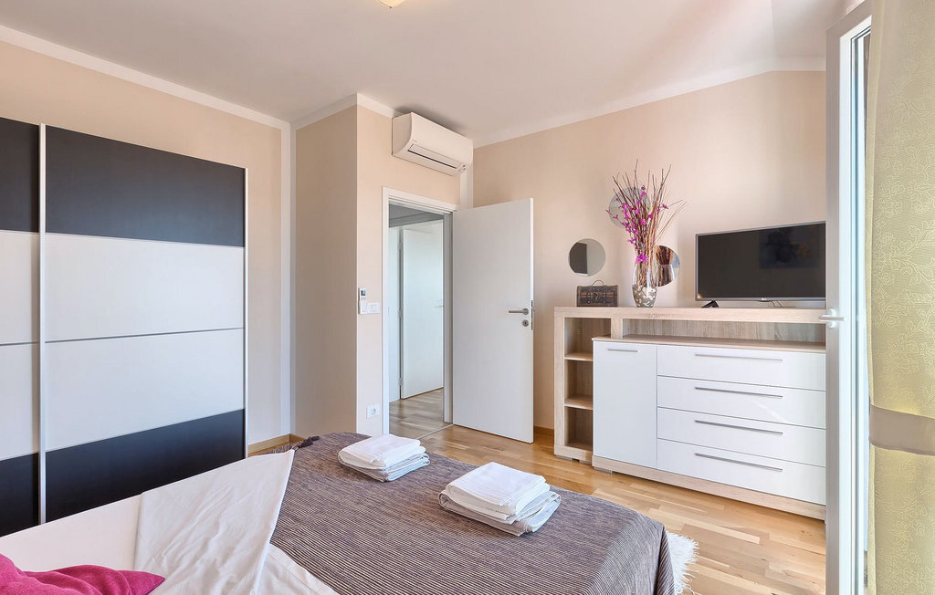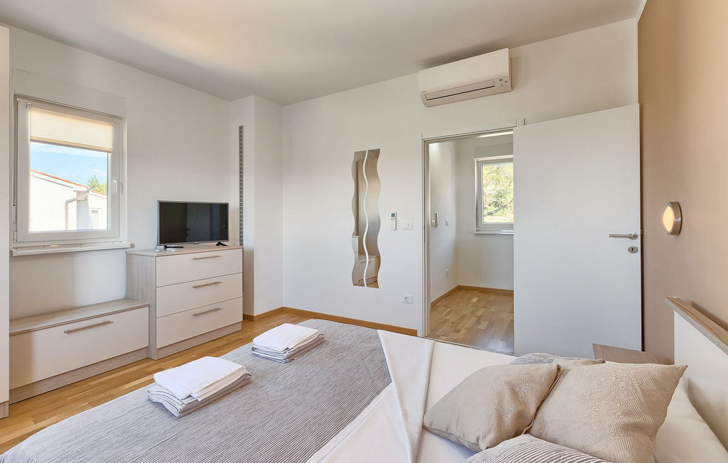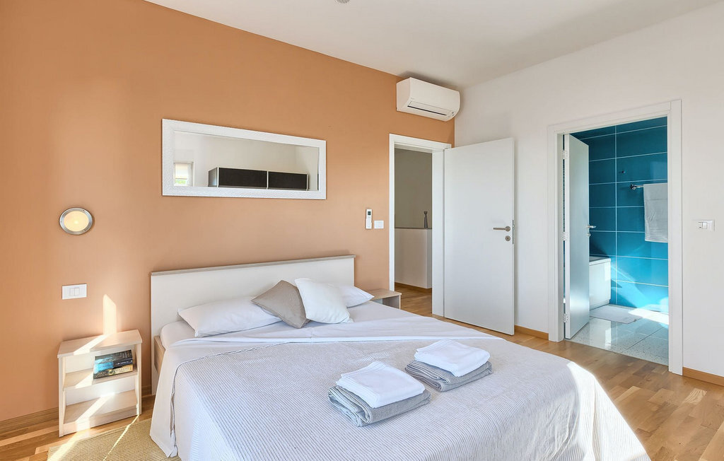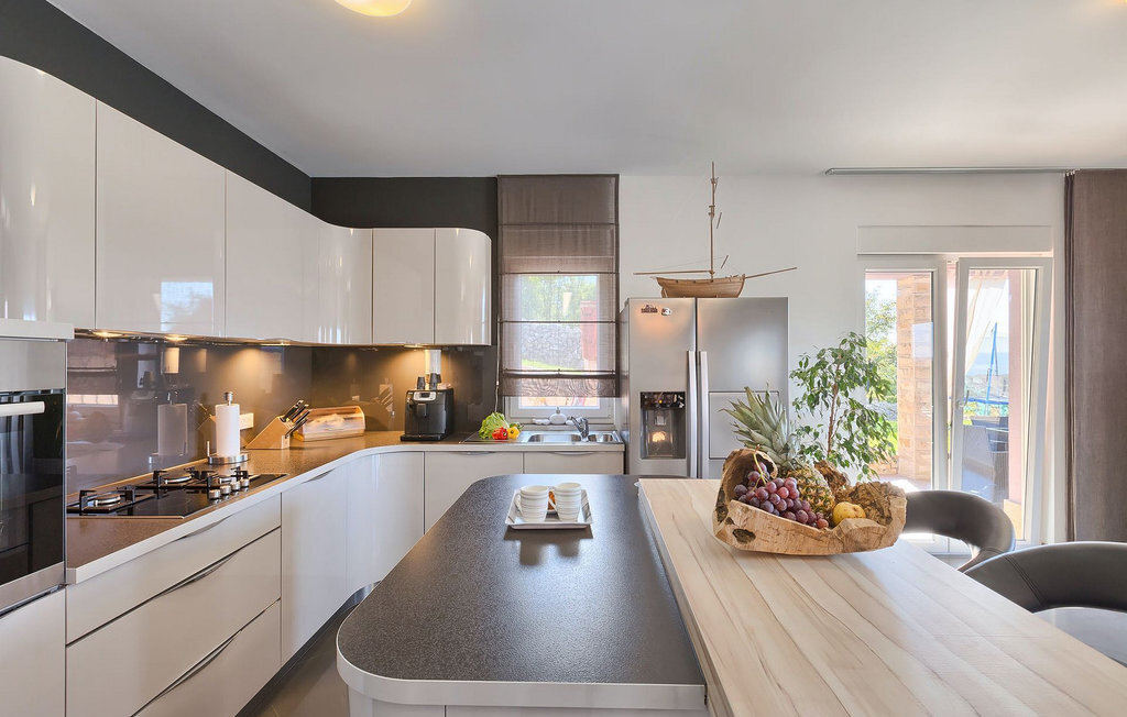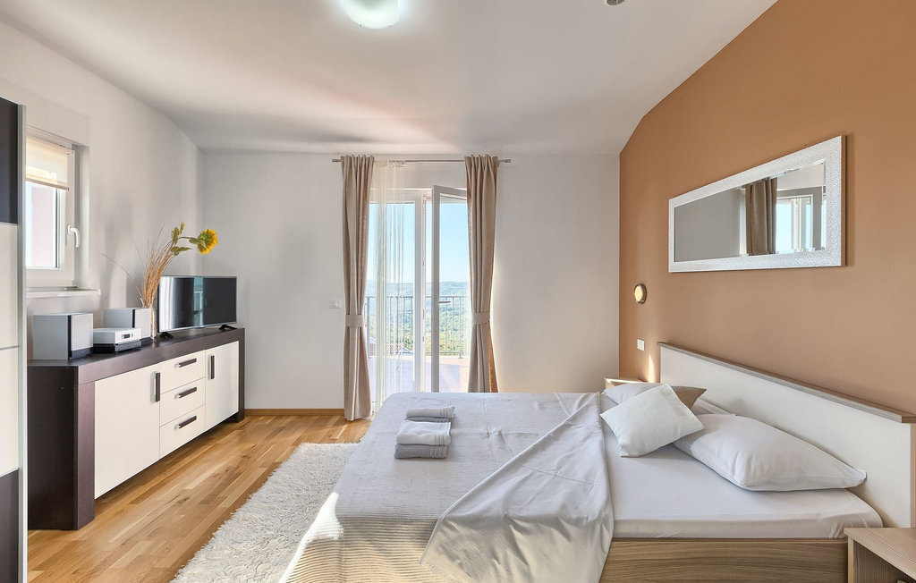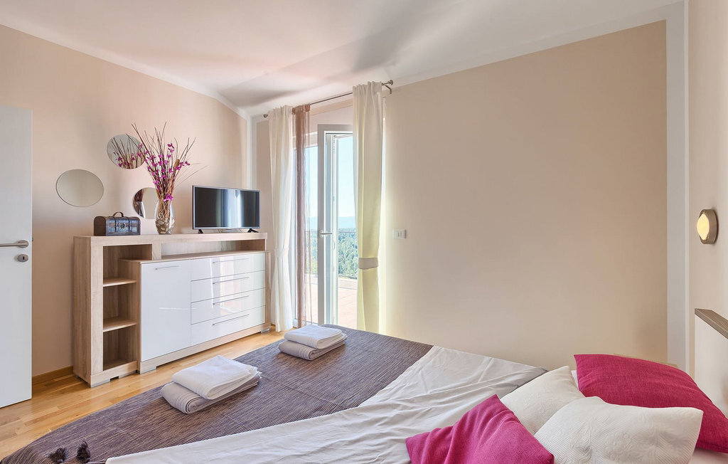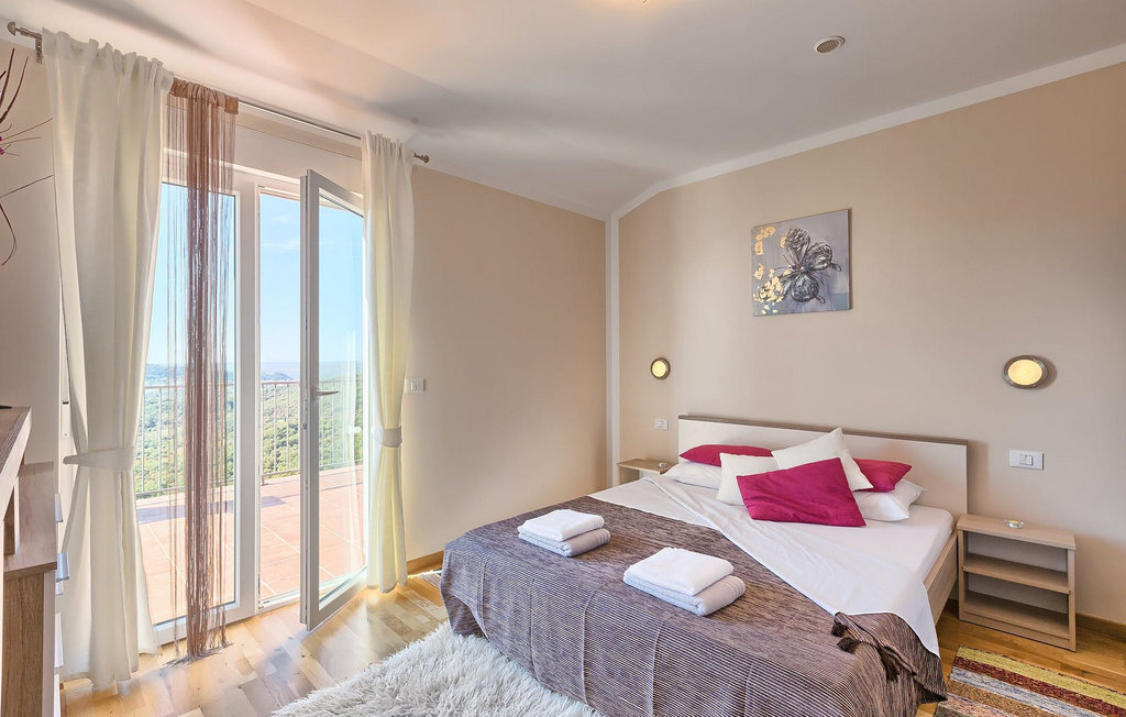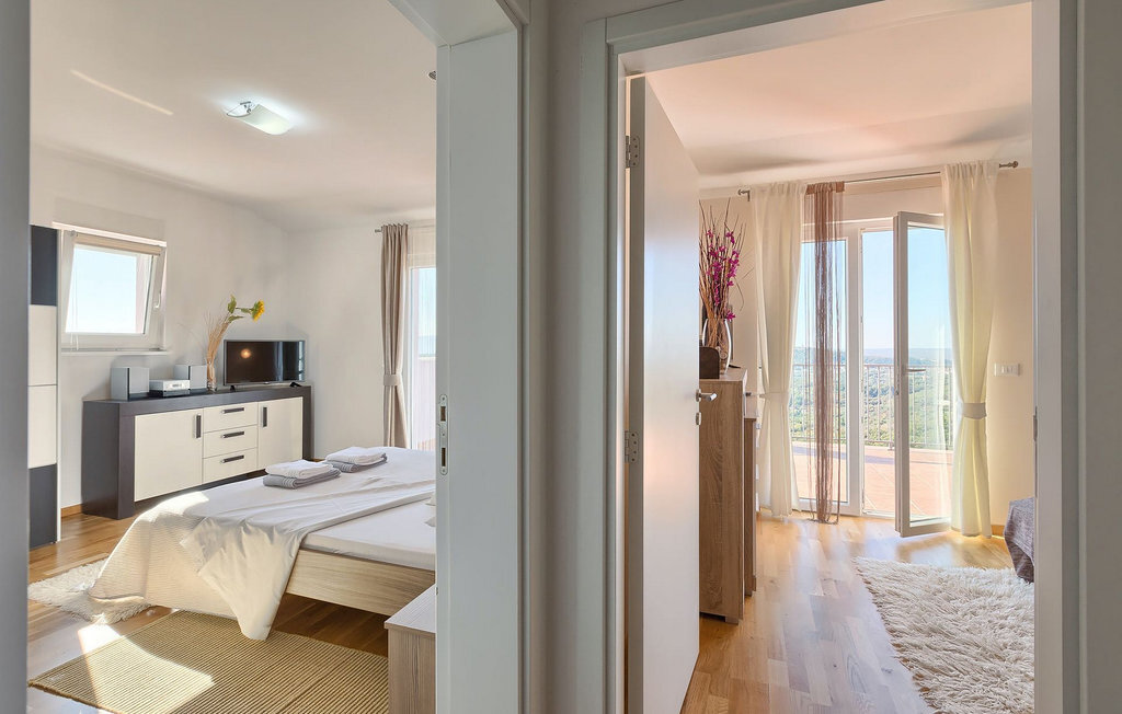 Si les vues à couper le souffle sont en tête de votre liste de souhaits, vous trouverez dans la Villa Amelie votre refuge de vacances idéal. Typique de l'Istrie, cette charmante villa est située à flanc de colline et offre des vues fabuleuses et infinies sur les collines pittoresques avec l'Adriatique scintillante et les îles idylliques du Kvarner à l'horizon. Au rez-de-chaussée spacieux et ouvert, un salon élégant jouxte une salle à manger confortable et une cuisine moderne entièrement équipée, où vous pouvez vous aventurer sans crainte à préparer quelques recettes régionales. Une belle cheminée, des canapés doux comme du beurre et des couleurs naturelles créent une ambiance chaleureuse, tandis que la grande télévision à écran plat avec chaîne stéréo et Playstation assure le divertissement de toute la famille. D'immenses fenêtres panoramiques laissent entrer la lumière naturelle et soulignent l'infinité de la vue. Elles s'ouvrent sur une grande véranda avec un salon accueillant, ainsi qu'une autre salle à manger avec un barbecue intégré pour vos repas savoureux en plein air. La magnifique piscine à débordement est conçue de telle manière que son bord disparaît tout simplement - dans un décor spectaculaire qui offre un panorama ultime. Trois chambres à coucher climatisées, dont une en suite, sont réparties à l'étage supérieur, qui donne sur une terrasse spacieuse où vous pourrez vous réveiller chaque matin avec une vue de rêve. De bons équipements pour vos petits, allant du lit et de la chaise bébé à leur propre aire de jeux en plein air, ainsi qu'une table de ping-pong, un baby-foot et des fléchettes, ajoutent à l'atmosphère familiale. Après une longue journée d'expériences culturelles authentiques et de baignades dans la mer cristalline, quel endroit pour profiter des couchers de soleil violets avec la silhouette de Labin à l'horizon.Depuis son emplacement exceptionnel, la délicieuse Villa Amelie jouit de l'une des plus belles vues sur la ville médiévale de Labin. Perchée sur sa colline au-dessus de la côte magique du Kvarner, Labin est le centre historique et administratif de l'Est de la Sardaigne. La région est un paradis pour les amateurs d'art et d'histoire grâce à son riche patrimoine culturel et architectural. Les ruelles escarpées et sinueuses de la vieille ville abritent des palais historiques bien conservés, de nombreuses galeries d'art et ?studios, ainsi que plusieurs festivals de jazz et de musique classique pendant les mois d'été. La ville dispose de quelques excellents restaurants de poisson, avec de délicieux produits locaux, ainsi que de cafés confortables où vous pourrez profiter de l'atmosphère détendue. La ville côtière de Labin est Rabac, ancien village de pêcheurs, aujourd'hui une destination touristique populaire, entourée d'une variété de plages de galets de rêve.