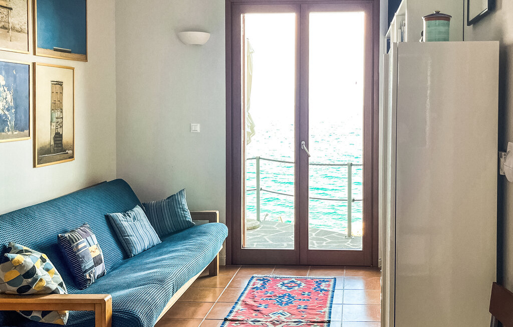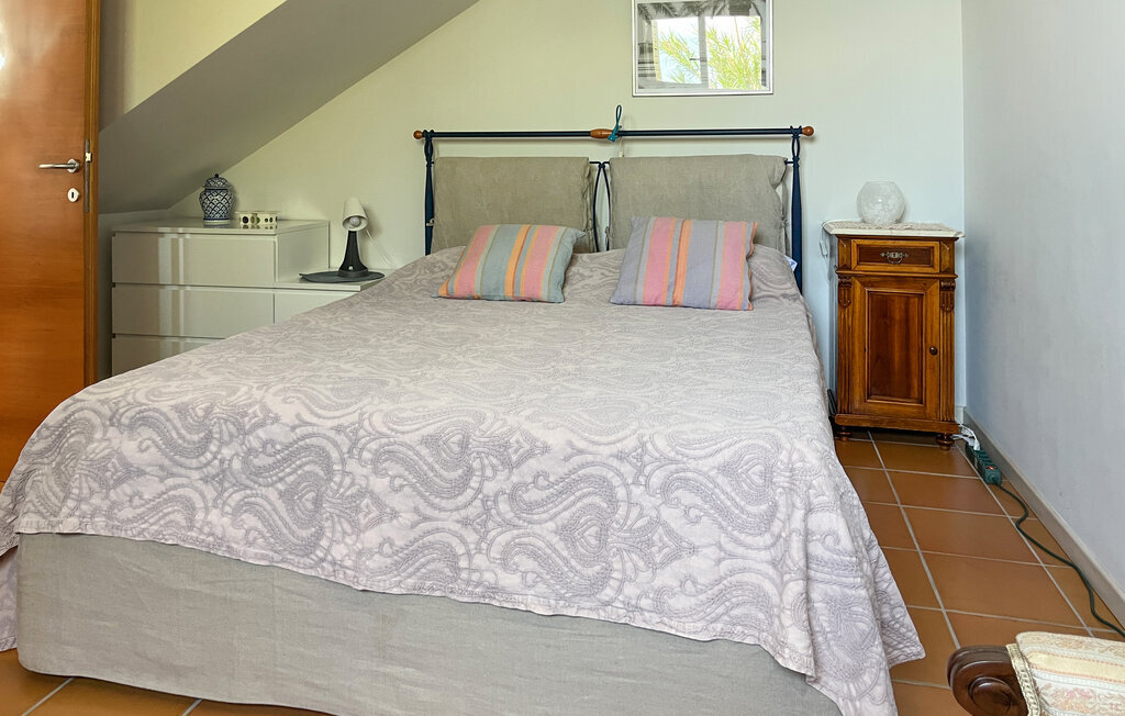 Le troisième niveau, le niveau de la mer, se compose de deux unités : la suite avec la chambre à coucher principale et le salon avec TV et canapé-lit. La suite dispose de sa propre salle de bain spacieuse et d'une buanderie avec des armoires encastrées, une machine à laver et un sèche-linge. L'autre unité se compose d'un lit double et d'une salle de bain. Entre les deux unités, il y a un couloir ouvert qui mène à la plage. La maison dispose d'une plage privée (accessible uniquement de la maison ou de la mer) avec une douche extérieure.