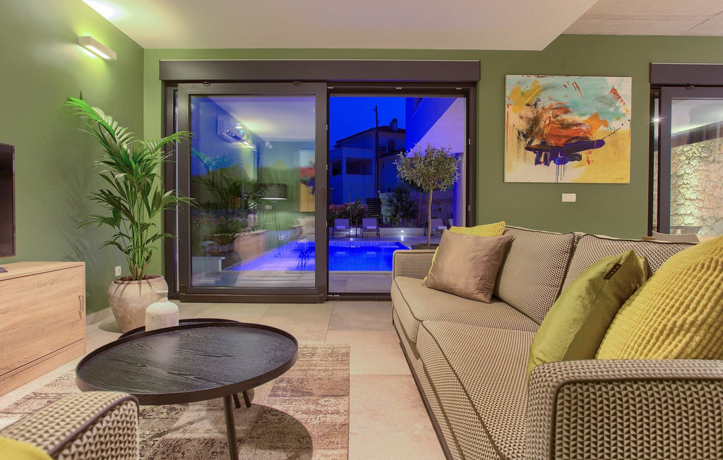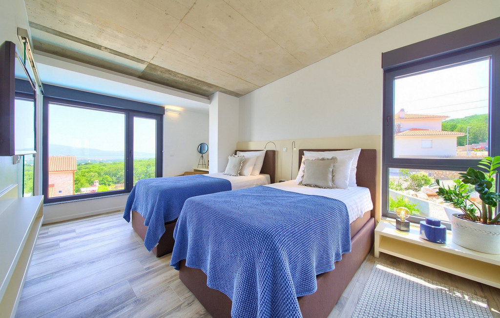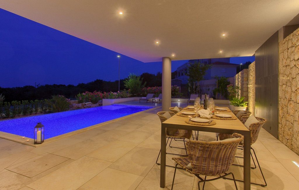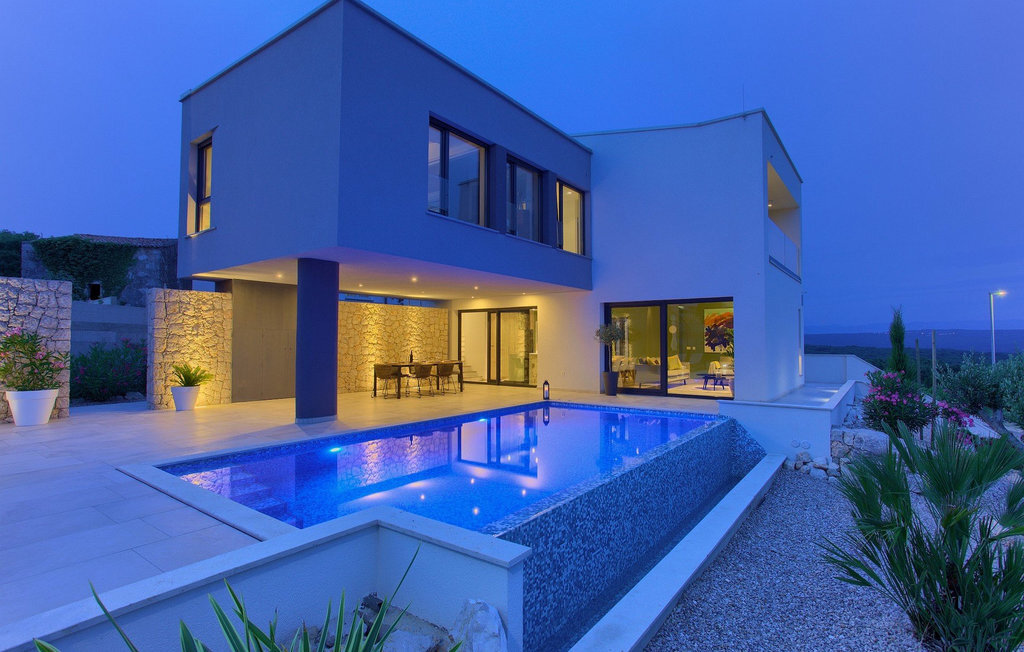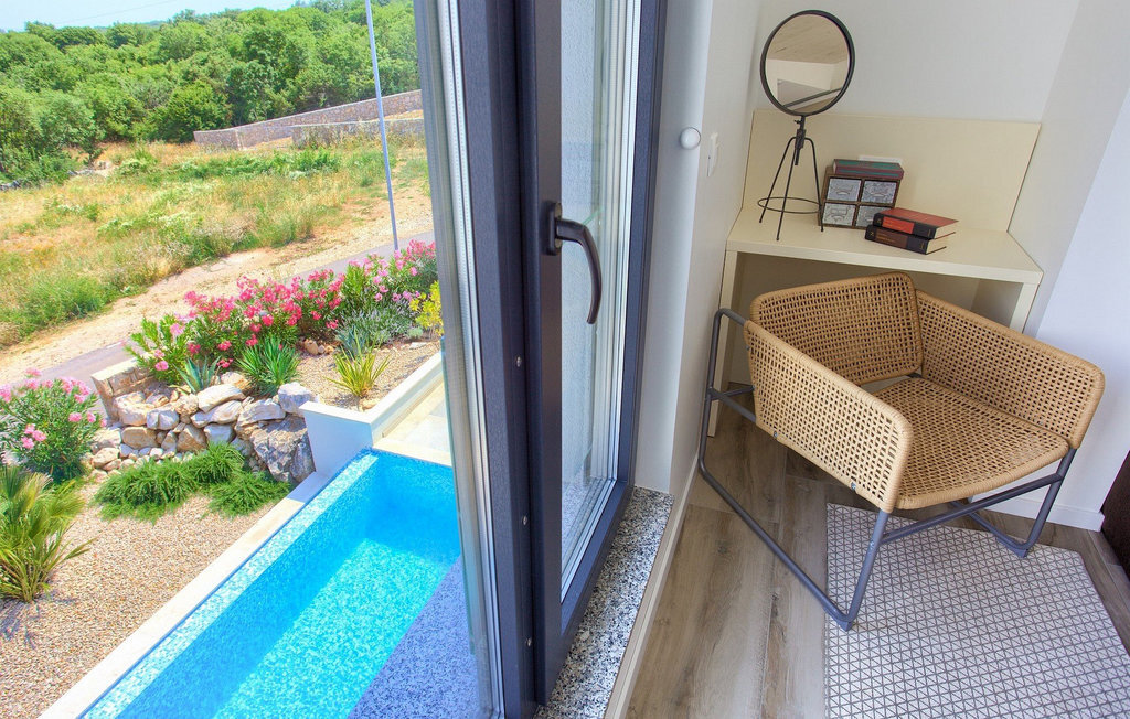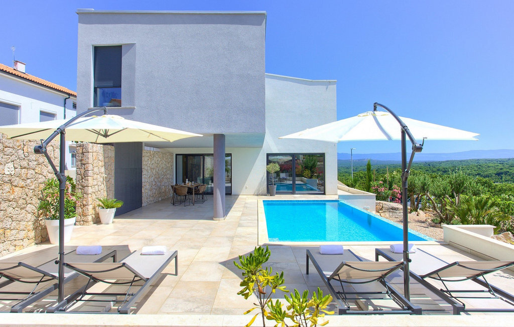 Cette villa exquise est située sur l'île de Krk, dans la région de Kvarner. La maison est parfaitement adaptée pour accueillir jusqu'à 6 hôtes. La Villa Silente a été aménagée et décorée avec un haut niveau de qualité afin d'offrir à ses hôtes des vacances inoubliables. La villa se compose d'un spacieux salon/salle à manger au rez-de-chaussée, équipé de meubles et de matériaux de qualité. Alors, si vous voulez avoir l'impression de vivre dans un showroom de designer rien que pour vous, c'est l'endroit qu'il vous faut ! Le premier étage est réservé à la détente et à une bonne nuit de sommeil, puisque seules les chambres confortables s'y trouvent. Il y a en tout trois chambres, deux avec des lits doubles et une avec deux lits simples, toutes équipées d'une télévision, de la climatisation et d'une salle de bain privée. Le rez-de-chaussée est réservé aux réunions de toute la famille ou d'un groupe d'amis, avec une belle cuisine moderne entièrement équipée et un salon confortable. Tandis que l'intérieur offre une détente totale dans ce chef-d'œuvre architectural décoré avec style, l'extérieur propose l'espace piscine et bassin accueillant ainsi qu'une salle à manger extérieure où vous pourrez profiter pleinement du climat méditerranéen. La villa est entièrement climatisée, dispose d'une connexion WLAN et d'un parking privé pouvant accueillir jusqu'à 4 voitures.L'île de Krk est l'île la plus septentrionale de Croatie. Elle se trouve dans la baie de Kvarner et est reconnue comme l'une des destinations les plus organisées et les plus attrayantes de l'Adriatique. De bonnes liaisons intérieures, de bonnes structures touristiques, différentes lignes de côte pleines de petites baies surplombant la mer cristalline et une nature magnifique, une multitude de possibilités de divertissement et de détente sont les raisons pour lesquelles Krk est l'une des destinations touristiques les plus intéressantes. Krk est une île particulière, un monde en soi, unique en termes de calme et de pureté, facilement accessible en raison de sa liaison avec le continent par le pont de Krk et disposant de son propre aéroport, à environ 30 km de Rijeka.