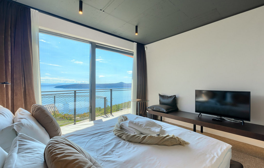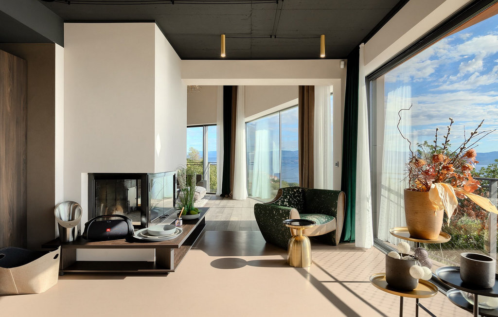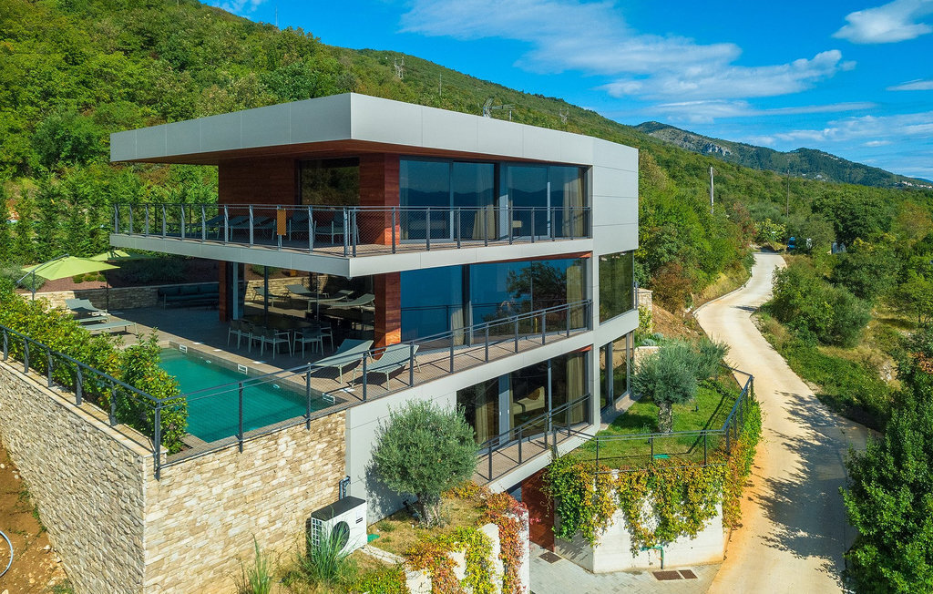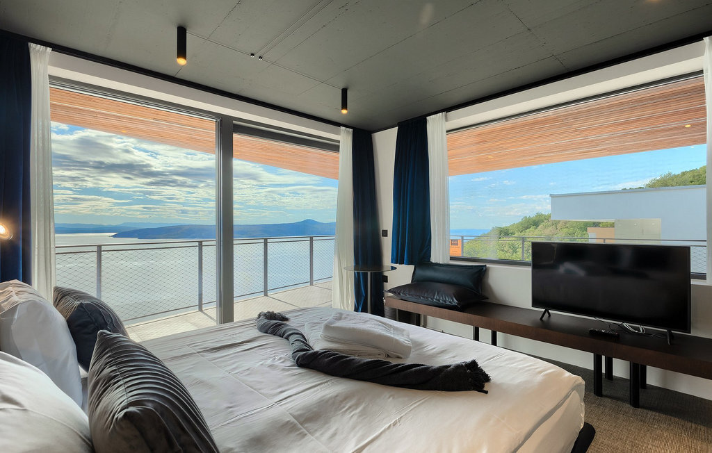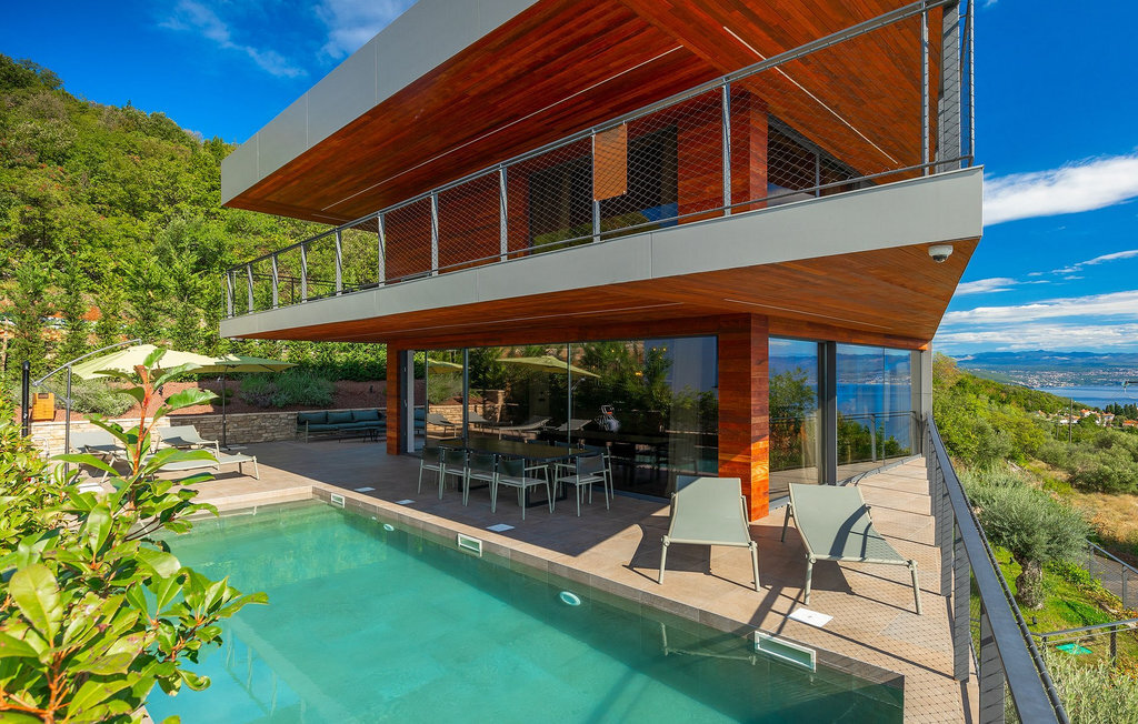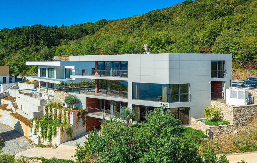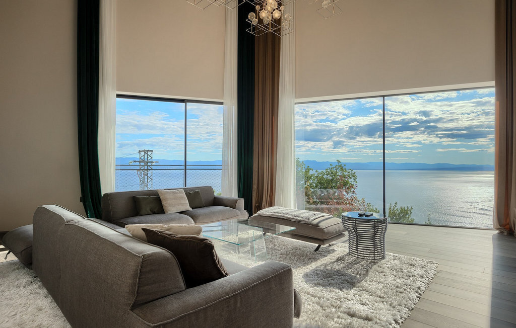 La villa de luxe Vista Hills vous offre des vacances inoubliables avec un traitement et un confort royaux. La villa dispose d'une vue à couper le souffle sur la baie de Kvarner et est conçue pour impressionner votre séjour avec calme et dans une atmosphère positive. La villa dispose de cinq chambres à coucher pour dix hôtes, avec la possibilité d'accueillir jusqu'à deux hôtes supplémentaires sur des lits d'appoint. Chaque chambre est climatisée et dispose d'une salle de bain privée, d'une télévision et d'un accès au balcon. Au premier étage se trouvent trois chambres modernes et luxueuses. Deux autres chambres se trouvent au troisième étage. Au deuxième étage de la villa se trouve un salon spacieux avec des meubles italiens de haute qualité ainsi qu'un coin repas et une cuisine entièrement équipée, conçue selon les instructions d'un cuisinier professionnel. Le rez-de-chaussée de la villa offre une taverne avec cuisine, un lieu idéal pour la convivialité. De même, à cet étage se trouve une salle de bien-être avec sauna, jacuzzi et table de massage, où vous pourrez recharger votre corps et votre esprit. La villa dispose également d'une salle de jeux avec jouets et Playstation, d'une salle de fitness entièrement équipée et d'un grand bureau. Les oliviers créent une atmosphère méditerranéenne authentique et une piscine chauffée avec des chaises longues et un espace salon invite à la détente. La terrasse, avec sa table à manger et son barbecue, est accessible depuis la salle à manger intérieure et constitue un lieu idéal pour passer du temps en famille ou entre amis avec une vue panoramique magnifique. Outre l'hébergement dans la villa, divers services supplémentaires sont disponibles sur demande et moyennant un supplément : entraîneur privé, cuisinier professionnel préparant de délicieuses spécialités, visite d'un sommelier renommé, soins de beauté et massages, location de yachts, vélos électriques, instructeur de plongée et bien d'autres choses encore. La villa de luxe Vista Hills, située dans le petit village de Moenice, se trouve à deux pas d'Opatija, la perle de l'Adriatique, et offre des places de parking pour 5 véhicules, dont 2 dans le garage. La localité voisine de Moenika Draga est connue pour sa belle plage de galets ipar de 2 km de long et son port de plaisance. Rijeka, la plus grande ville de la région de Kvarner, est à seulement 20 km de la villa. Vous pourrez y visiter de nombreux monuments culturels et historiques et découvrir l'histoire, la culture et les traditions locales intéressantes. La plus grande et la plus célèbre manifestation dans cette région est le carnaval de Rijeka, aujourd'hui l'un des plus grands défilés de carnaval en Europe et dans le monde. En 2020, Rijeka a été capitale européenne de la culture.