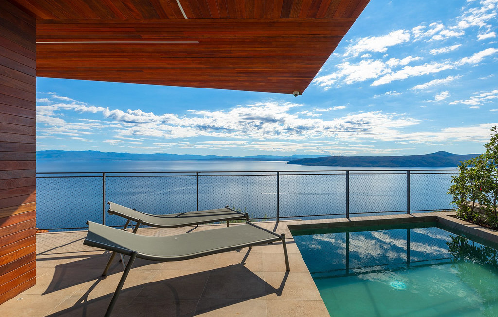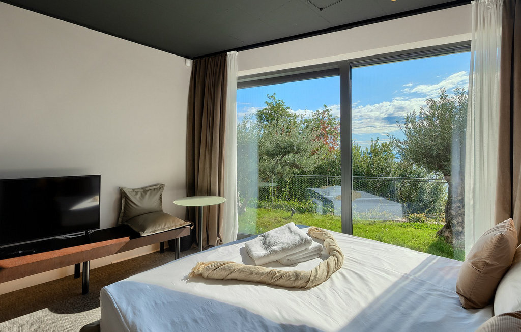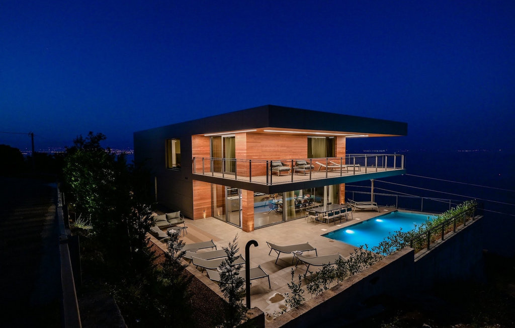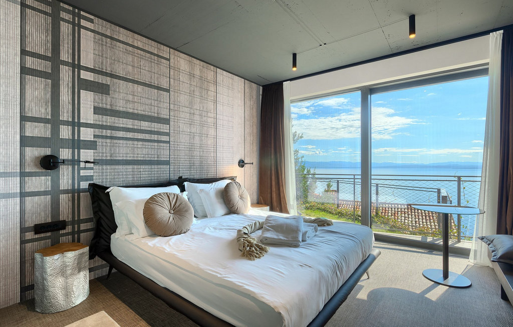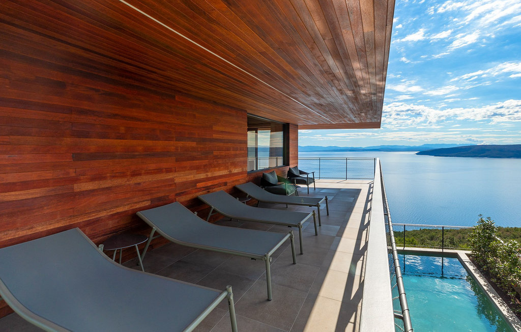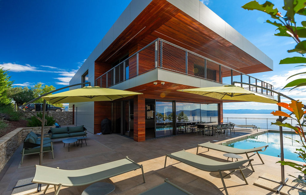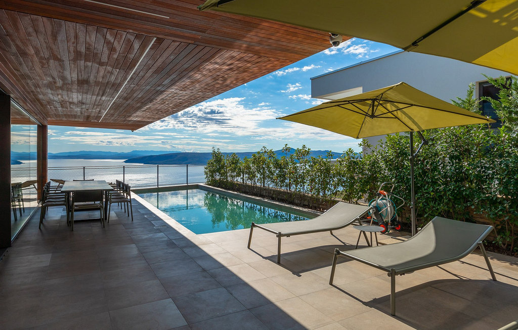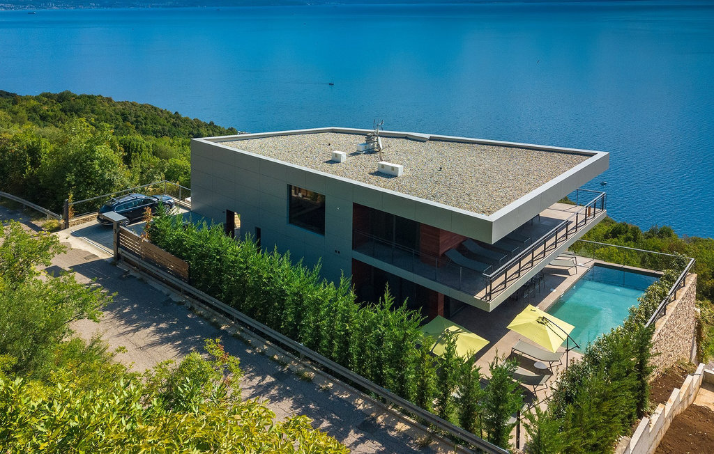 La villa de luxe Vista Hills vous offre des vacances inoubliables avec un traitement et un confort royaux. La villa dispose d'une vue à couper le souffle sur la baie de Kvarner et est conçue pour impressionner votre séjour avec calme et dans une atmosphère positive. La villa dispose de cinq chambres à coucher pour dix hôtes, avec la possibilité d'accueillir jusqu'à deux hôtes supplémentaires sur des lits d'appoint. Chaque chambre est climatisée et dispose d'une salle de bain privée, d'une télévision et d'un accès au balcon. Au premier étage se trouvent trois chambres modernes et luxueuses. Deux autres chambres se trouvent au troisième étage. Au deuxième étage de la villa se trouve un salon spacieux avec des meubles italiens de haute qualité ainsi qu'un coin repas et une cuisine entièrement équipée, conçue selon les instructions d'un cuisinier professionnel. Le rez-de-chaussée de la villa offre une taverne avec cuisine, un lieu idéal pour la convivialité. De même, à cet étage se trouve une salle de bien-être avec sauna, jacuzzi et table de massage, où vous pourrez recharger votre corps et votre esprit. La villa dispose également d'une salle de jeux avec jouets et Playstation, d'une salle de fitness entièrement équipée et d'un grand bureau. Les oliviers créent une atmosphère méditerranéenne authentique et une piscine chauffée avec des chaises longues et un espace salon invite à la détente. La terrasse, avec sa table à manger et son barbecue, est accessible depuis la salle à manger intérieure et constitue un lieu idéal pour passer du temps en famille ou entre amis avec une vue panoramique magnifique. Outre l'hébergement dans la villa, divers services supplémentaires sont disponibles sur demande et moyennant un supplément : entraîneur privé, cuisinier professionnel préparant de délicieuses spécialités, visite d'un sommelier renommé, soins de beauté et massages, location de yachts, vélos électriques, instructeur de plongée et bien d'autres choses encore. La villa de luxe Vista Hills, située dans le petit village de Moenice, se trouve à deux pas d'Opatija, la perle de l'Adriatique, et offre des places de parking pour 5 véhicules, dont 2 dans le garage. La localité voisine de Moenika Draga est connue pour sa belle plage de galets ipar de 2 km de long et son port de plaisance. Rijeka, la plus grande ville de la région de Kvarner, est à seulement 20 km de la villa. Vous pourrez y visiter de nombreux monuments culturels et historiques et découvrir l'histoire, la culture et les traditions locales intéressantes. La plus grande et la plus célèbre manifestation dans cette région est le carnaval de Rijeka, aujourd'hui l'un des plus grands défilés de carnaval en Europe et dans le monde. En 2020, Rijeka a été capitale européenne de la culture.