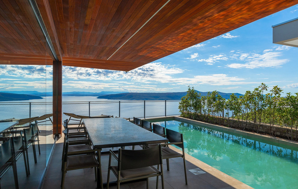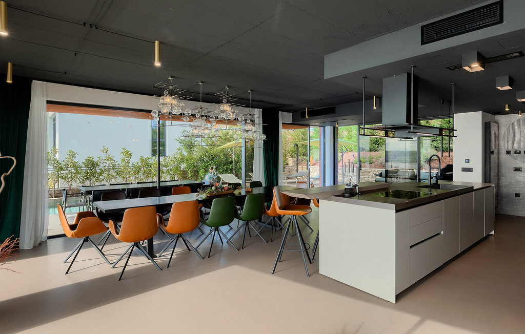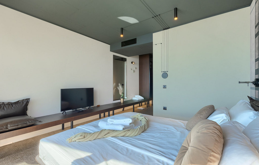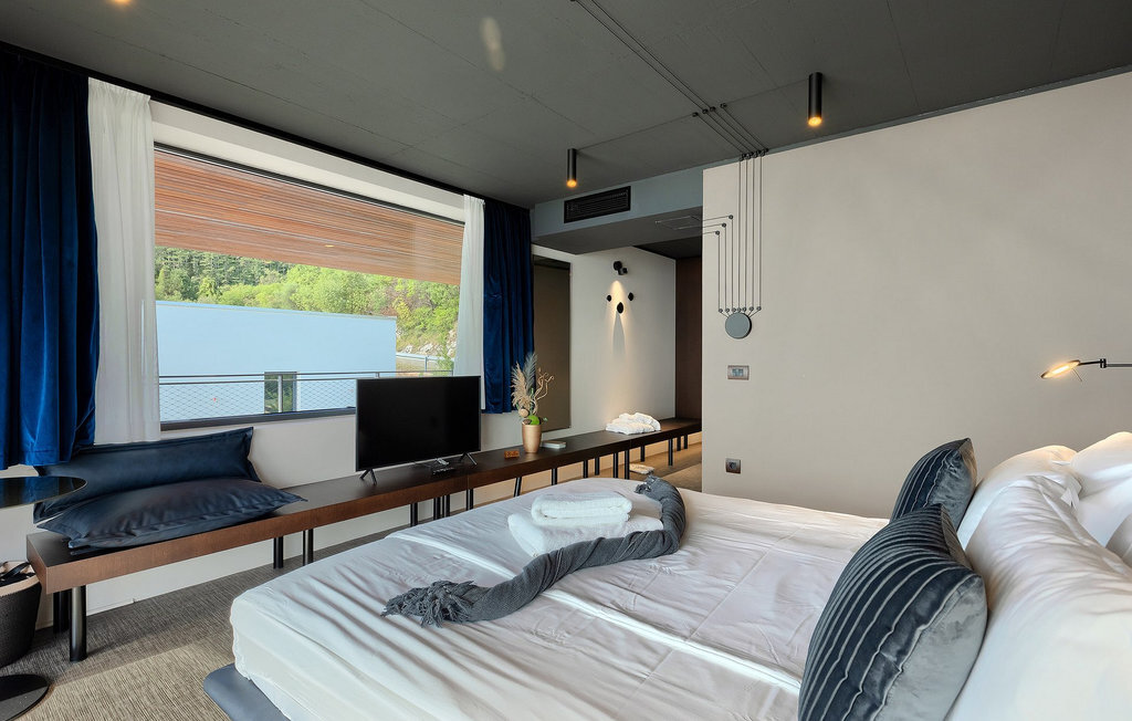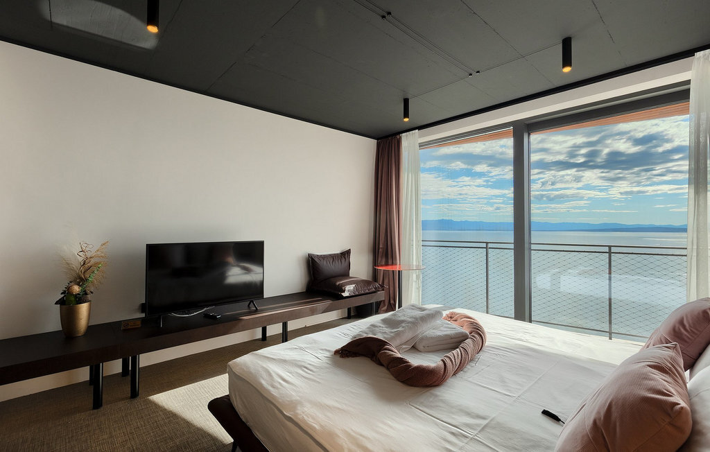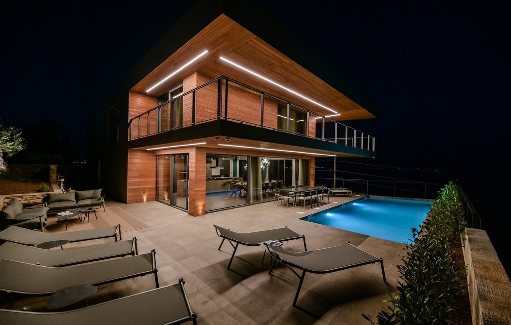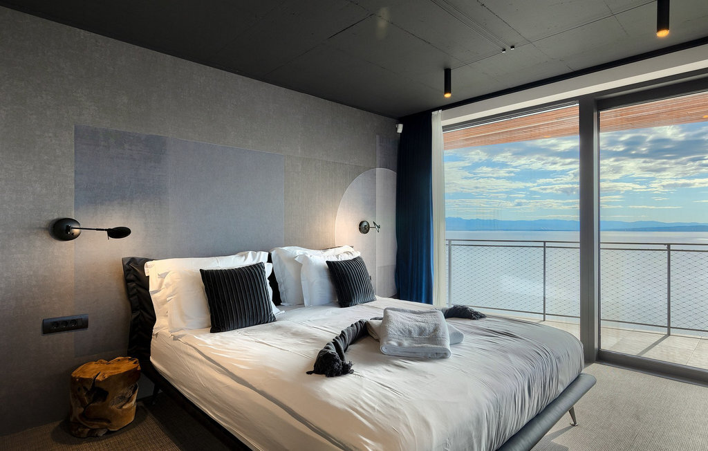 La villa de luxe Vista Hills vous offre des vacances inoubliables avec un traitement et un confort royaux. La villa dispose d'une vue à couper le souffle sur la baie de Kvarner et est conçue pour impressionner votre séjour avec calme et dans une atmosphère positive. La villa dispose de cinq chambres à coucher pour dix hôtes, avec la possibilité d'accueillir jusqu'à deux hôtes supplémentaires sur des lits d'appoint. Chaque chambre est climatisée et dispose d'une salle de bain privée, d'une télévision et d'un accès au balcon. Au premier étage se trouvent trois chambres modernes et luxueuses. Deux autres chambres se trouvent au troisième étage. Au deuxième étage de la villa se trouve un salon spacieux avec des meubles italiens de haute qualité ainsi qu'un coin repas et une cuisine entièrement équipée, conçue selon les instructions d'un cuisinier professionnel. Le rez-de-chaussée de la villa offre une taverne avec cuisine, un lieu idéal pour la convivialité. De même, à cet étage se trouve une salle de bien-être avec sauna, jacuzzi et table de massage, où vous pourrez recharger votre corps et votre esprit. La villa dispose également d'une salle de jeux avec jouets et Playstation, d'une salle de fitness entièrement équipée et d'un grand bureau. Les oliviers créent une atmosphère méditerranéenne authentique et une piscine chauffée avec des chaises longues et un espace salon invite à la détente. La terrasse, avec sa table à manger et son barbecue, est accessible depuis la salle à manger intérieure et constitue un lieu idéal pour passer du temps en famille ou entre amis avec une vue panoramique magnifique. Outre l'hébergement dans la villa, divers services supplémentaires sont disponibles sur demande et moyennant un supplément : entraîneur privé, cuisinier professionnel préparant de délicieuses spécialités, visite d'un sommelier renommé, soins de beauté et massages, location de yachts, vélos électriques, instructeur de plongée et bien d'autres choses encore. La villa de luxe Vista Hills, située dans le petit village de Moenice, se trouve à deux pas d'Opatija, la perle de l'Adriatique, et offre des places de parking pour 5 véhicules, dont 2 dans le garage. La localité voisine de Moenika Draga est connue pour sa belle plage de galets ipar de 2 km de long et son port de plaisance. Rijeka, la plus grande ville de la région de Kvarner, est à seulement 20 km de la villa. Vous pourrez y visiter de nombreux monuments culturels et historiques et découvrir l'histoire, la culture et les traditions locales intéressantes. La plus grande et la plus célèbre manifestation dans cette région est le carnaval de Rijeka, aujourd'hui l'un des plus grands défilés de carnaval en Europe et dans le monde. En 2020, Rijeka a été capitale européenne de la culture.
