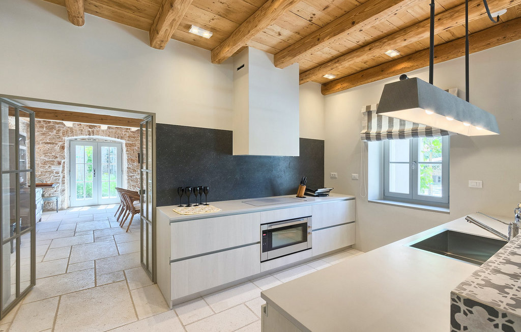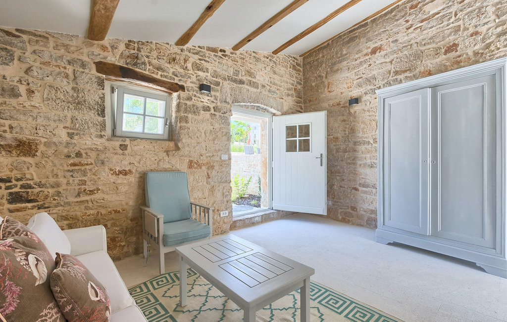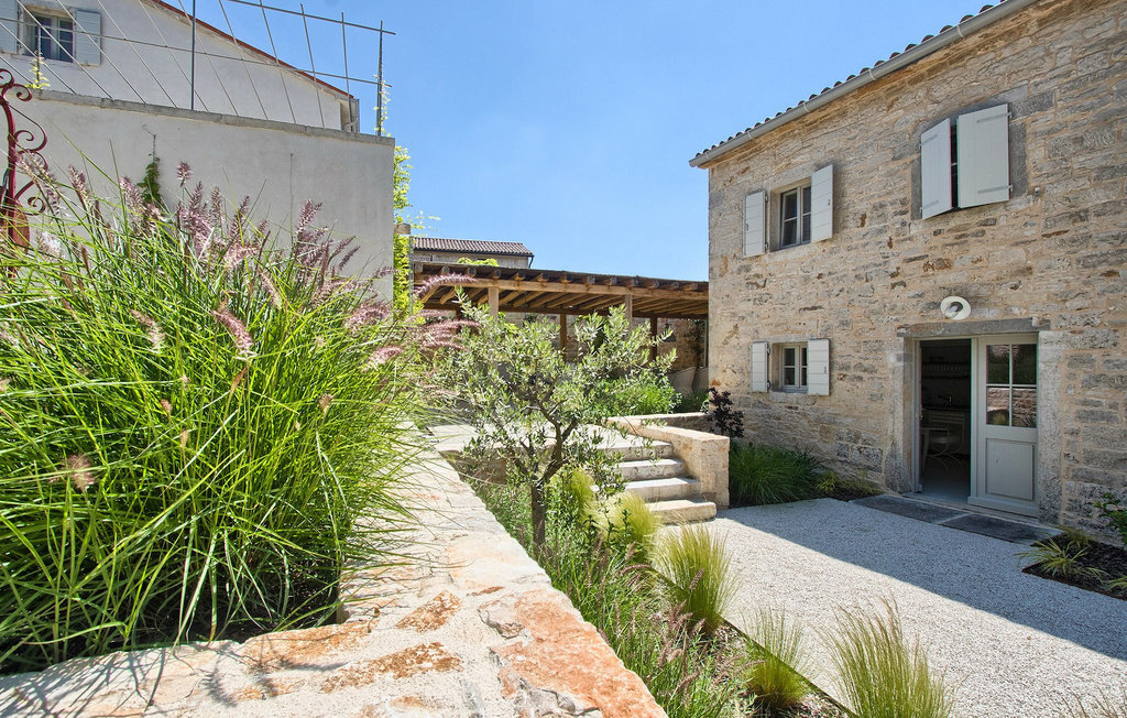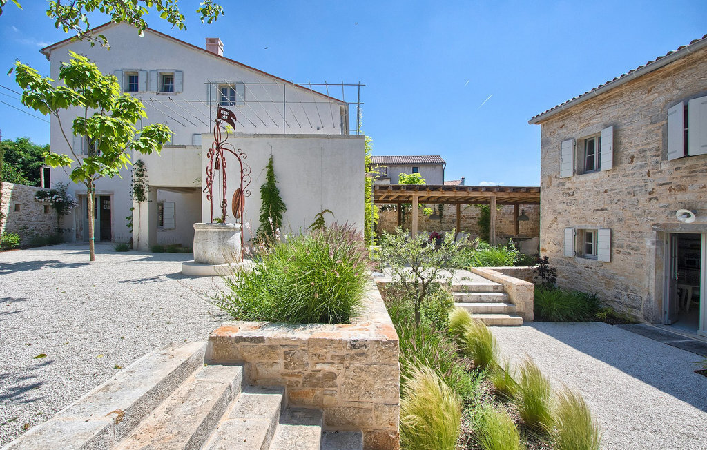 La Villa Charlotta est définitivement l'endroit pour des vacances d'un genre particulier. Il s'agit d'une ancienne ferme luxueusement rénovée, située dans l'environnement calme et rêveur de l'Istrie centrale, au milieu d'un petit hameau. Le mur de pierre traditionnel d'Istrie qui entoure la propriété garantit l'isolement et l'intimité. La propriété a été rénovée avec un savoir-faire artisanal et une attention particulière aux détails, en utilisant uniquement des matériaux de haute qualité afin de s'assurer que le style architectural traditionnel d'origine des maisons n'a pas été altéré. Les intérieurs ont été aménagés avec beaucoup de style, comme une fusion entre le style vintage et les détails modernes.Villa Charlotta se compose de 3 unités d'habitation uniques et d'un pool house, qui forment une unité entièrement fermée. La propriété peut accueillir un maximum de 13 personnes dans 7 chambres meublées avec goût.