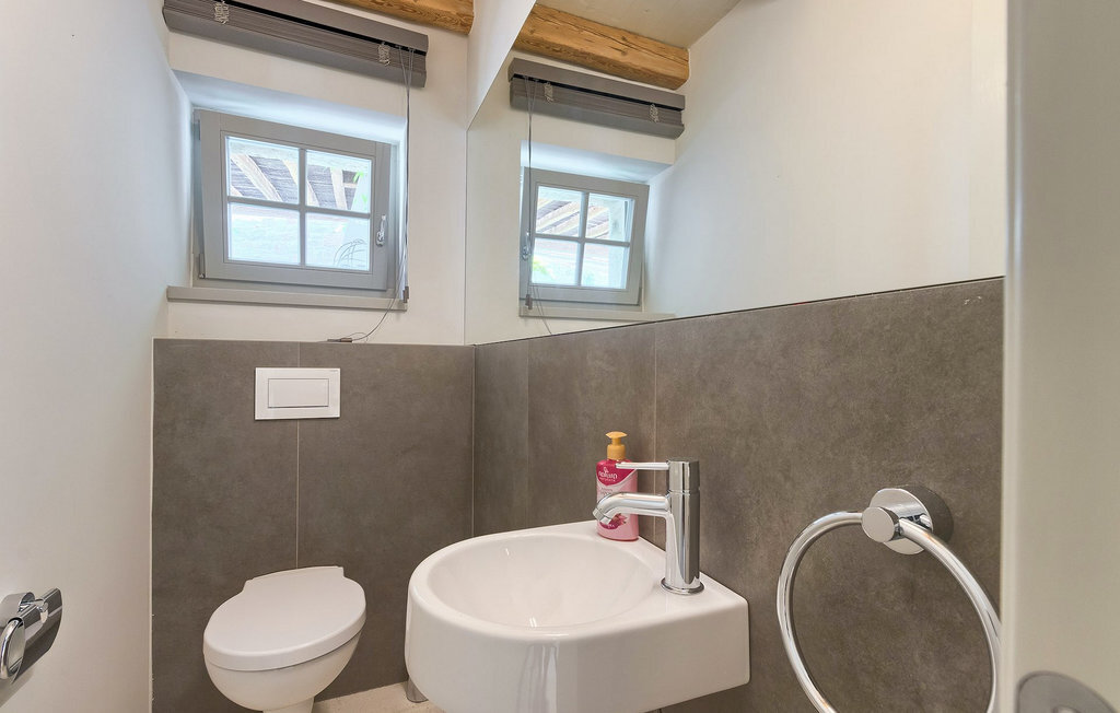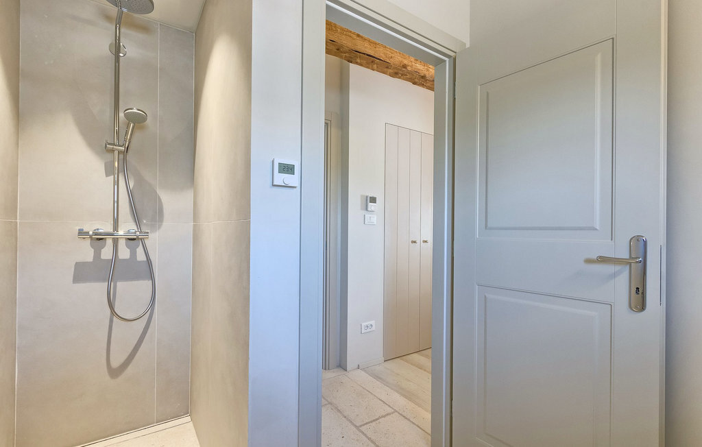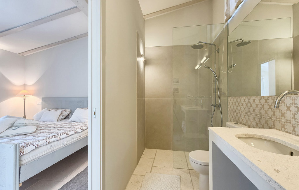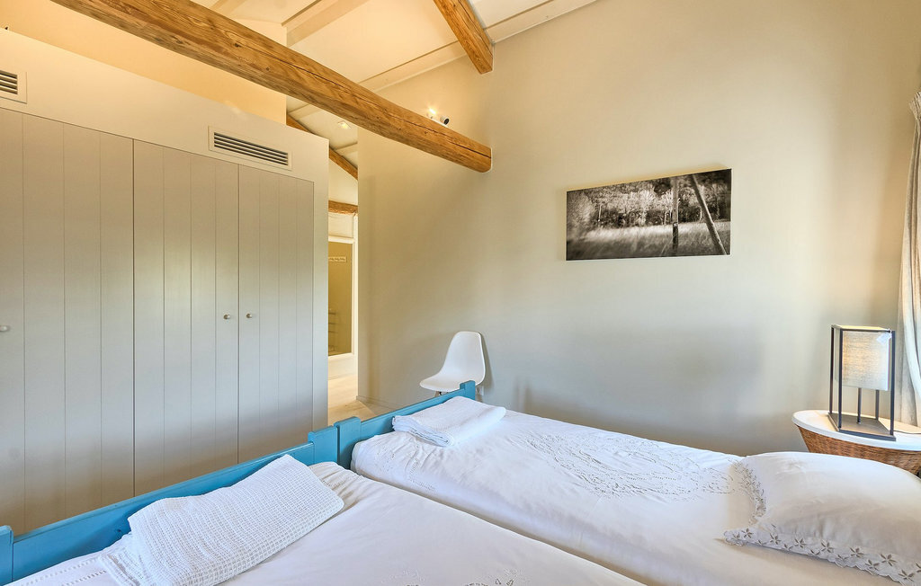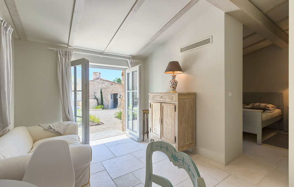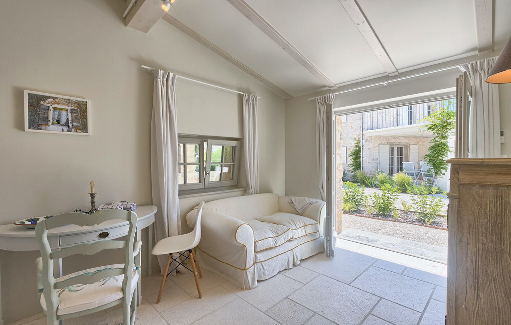 La maison n° 4 est le pool house - également magnifiquement rénové. Elle offre un canapé-lit pour un invité, des toilettes et une sortie directe sur la piscine.