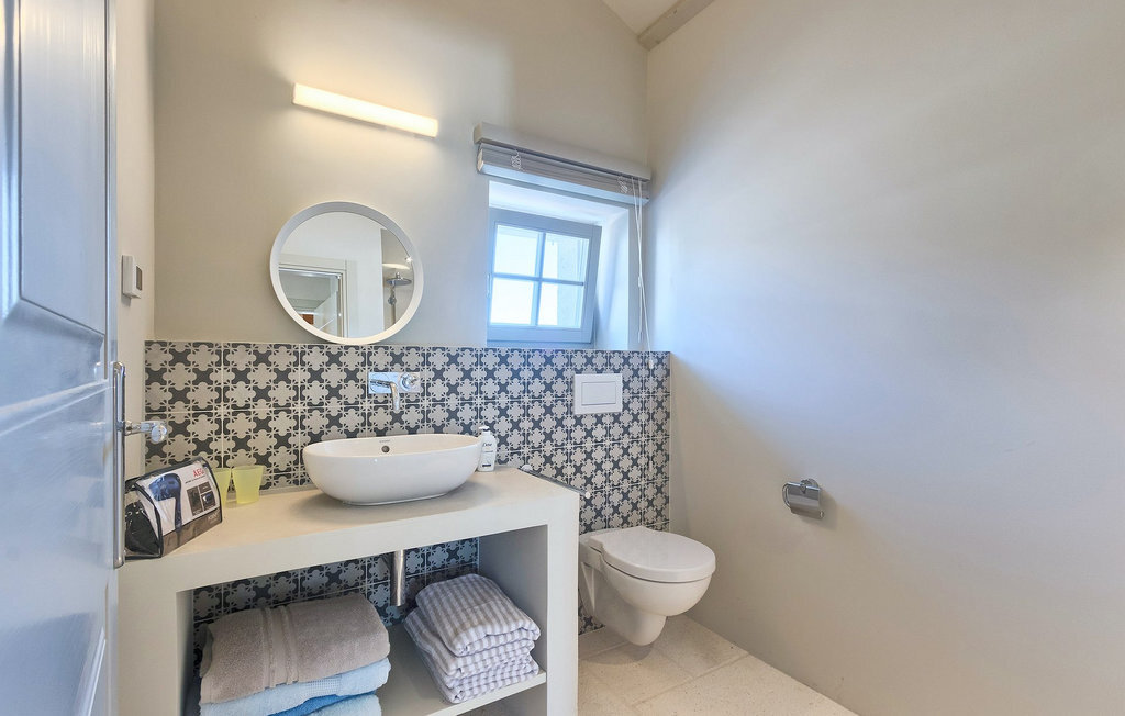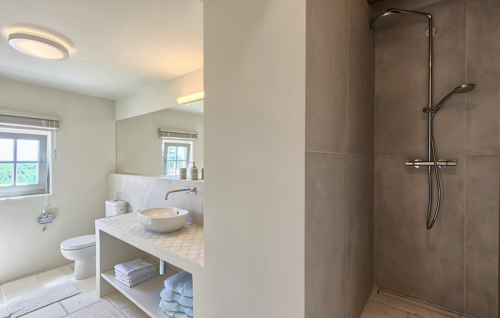 La maison principale (maison n°1) s'étend sur deux étages. Le rez-de-chaussée vous accueille avec une grande cuisine moderne entièrement équipée avec toutes les commodités nécessaires et une belle salle à manger où vous pourrez déguster vos repas. Les deux beaux salons avec des ensembles de salon confortables et élégants et la télévision par satellite vous attendent au premier étage. L'un d'entre eux offre une cheminée ouverte pour des soirées agréables, tandis que l'autre vous donne un accès direct à l'une des terrasses où vous pourrez savourer tranquillement votre café matinal. La maison dispose de 3 chambres à coucher doubles (1 au 1er étage et 2 au 2e étage) ainsi que d'une chambre individuelle (2e étage). Au rez-de-chaussée, il y a des toilettes supplémentaires pour les invités. Cette unité peut accueillir jusqu'à sept hôtes.