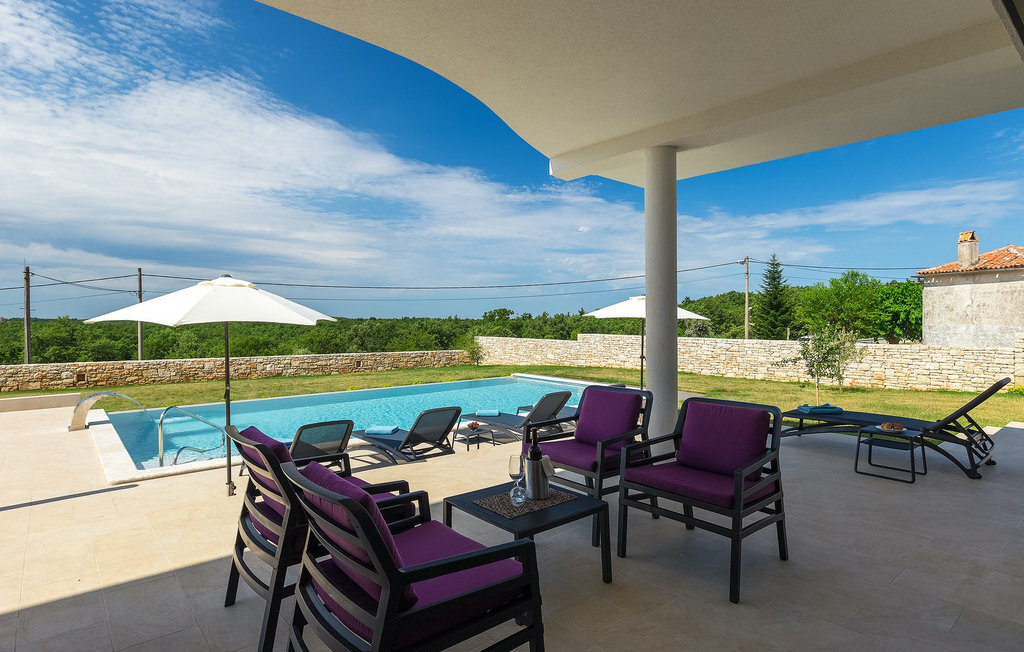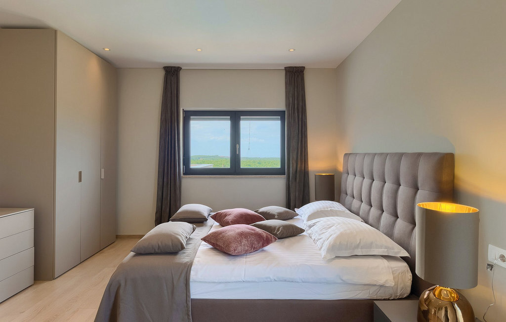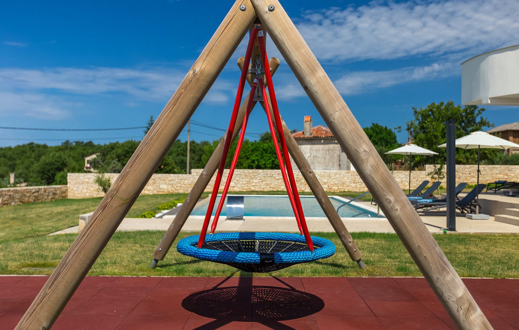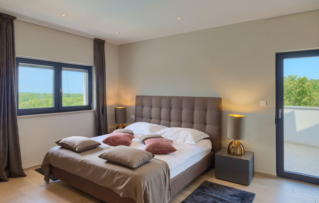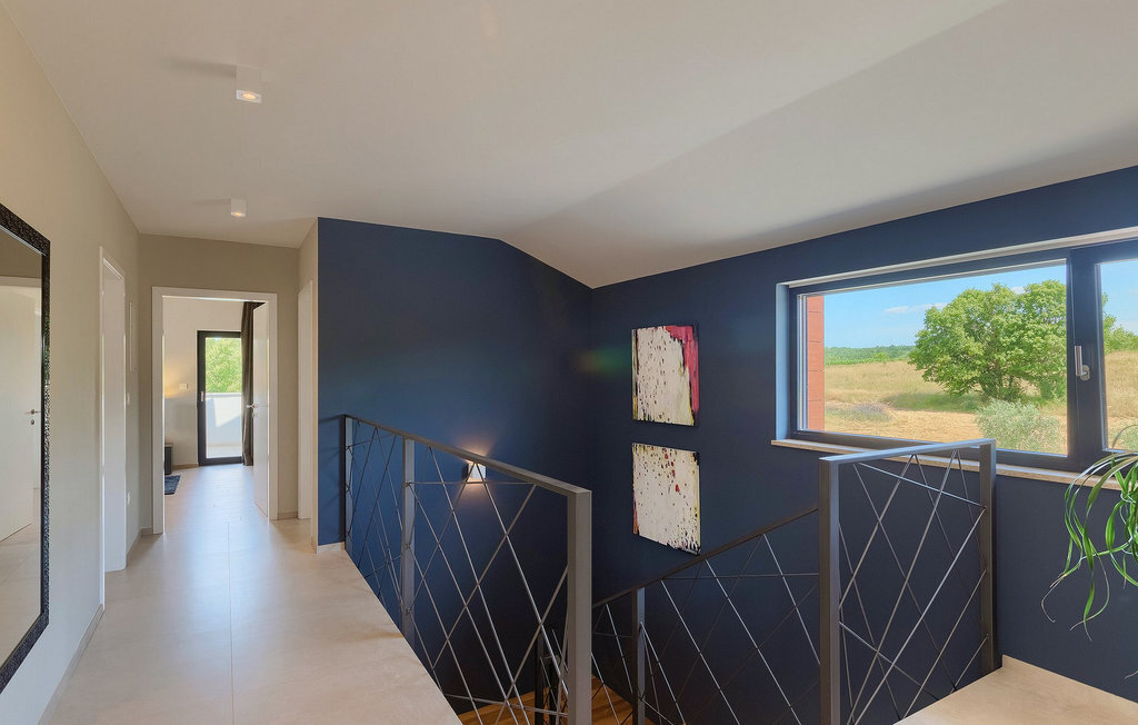 Entrez dans un coin de tranquillité dans un petit village calme au centre de l'Istrie. La Villa Eleonora offre un environnement calme et détendu avec une touche de modernité et de nombreuses possibilités de profiter - de la grande piscine privée (50 m2) dans le beau jardin verdoyant et un sauna. Lorsque vous entrez dans la villa, vous ressentez l'harmonie des couleurs inscrites dans l'intérieur moderne et minimaliste. Au rez-de-chaussée se trouve également une chambre à coucher avec un lit double, un sauna et une salle de bain en suite. Passez du temps avec vos amis et votre famille dans le salon relié à la salle à manger et à la cuisine contemporaine, le tout dans un concept ouvert. De là, vous avez une belle vue sur le jardin et la piscine. De nombreux tableaux modernes sont accrochés aux murs et donnent vie à la villa. Au premier étage se trouvent 3 belles chambres avec salles de bains en suite et des balcons pour profiter de la vue. Si vous voyagez avec des enfants, il y a une petite aire de jeux pour les plus jeunes, afin que vous puissiez vous détendre à côté de la piscine pendant que les enfants jouent. Deux vélos sont également à votre disposition. Le jardin offre de la place pour manger vos délicieux plats en plein air à côté du barbecue. Toutes les commodités, comme les magasins et les restaurants, se trouvent à quelques pas. Si vous souhaitez aller à la plage, vous n'avez besoin que de 20 minutes en voiture pour profiter de vos vacances en Istrie!La Villa Eleonora est située dans un petit village tranquille dans la région centrale de l'Istrie, près de la charmante ville de Visnjan. Si vous souhaitez explorer l'Istrie, vous devez absolument visiter Motovun. Il s'agit d'un magnifique monument urbain médiéval avec un terrain de golf, des fontaines naturelles et un spa, de l'équitation et un festival international du film. Les premiers magasins, restaurants et bars se trouvent dans la petite mais belle ville de Visnjan, qui vous propose également une visite de l'observatoire et du centre d'astronomie. Cette région est connue pour ses caves à vin. La plage la plus proche se trouve à seulement 15 km de la villa et vous pourrez profiter de la vue sur la mer depuis votre balcon. Si vous souhaitez explorer d'autres belles villes à proximité, nous vous recommandons Porec (20 km) ou Rovinj (30-40 km).