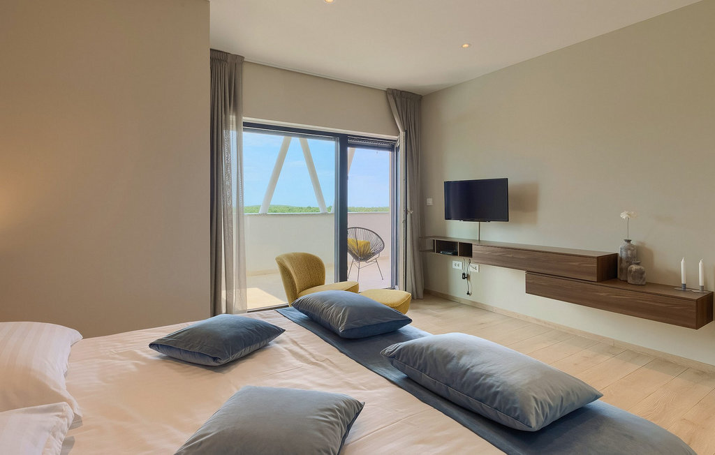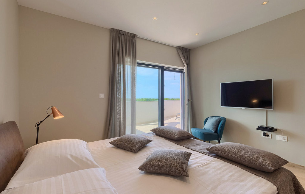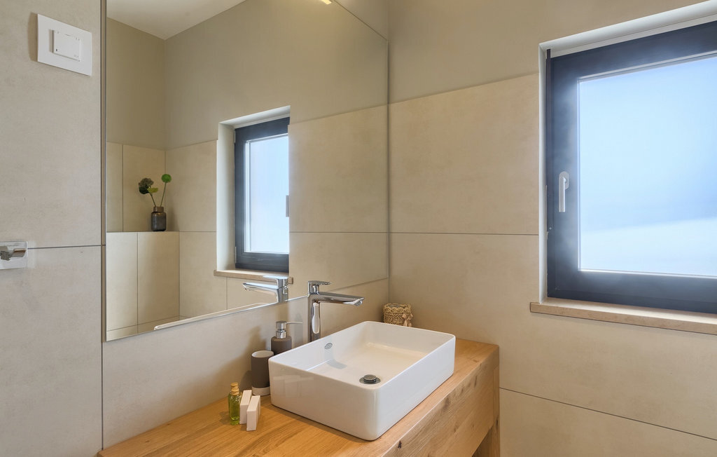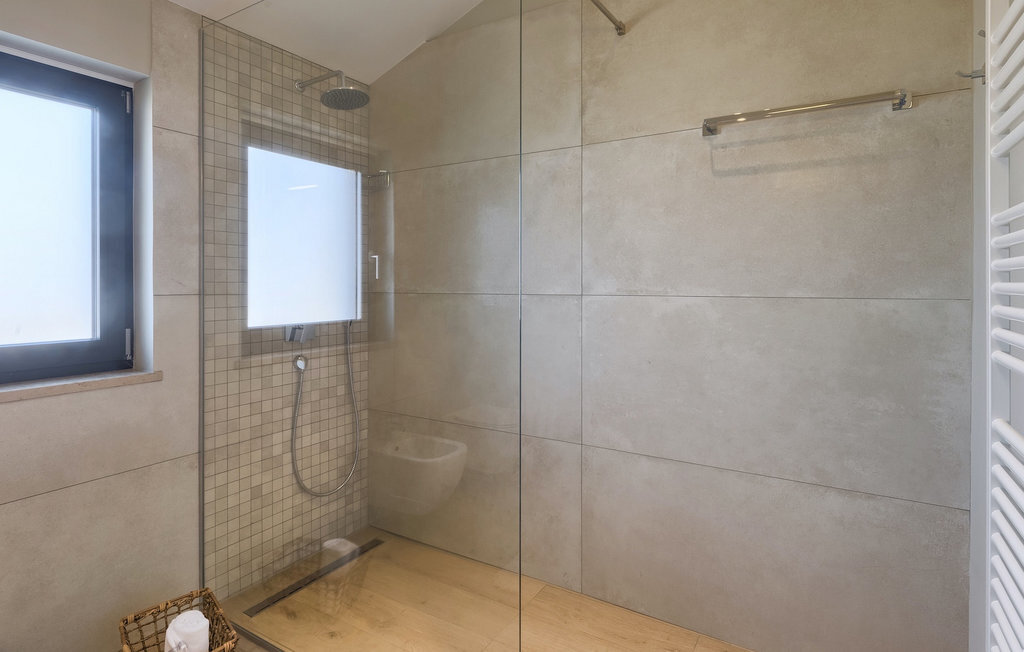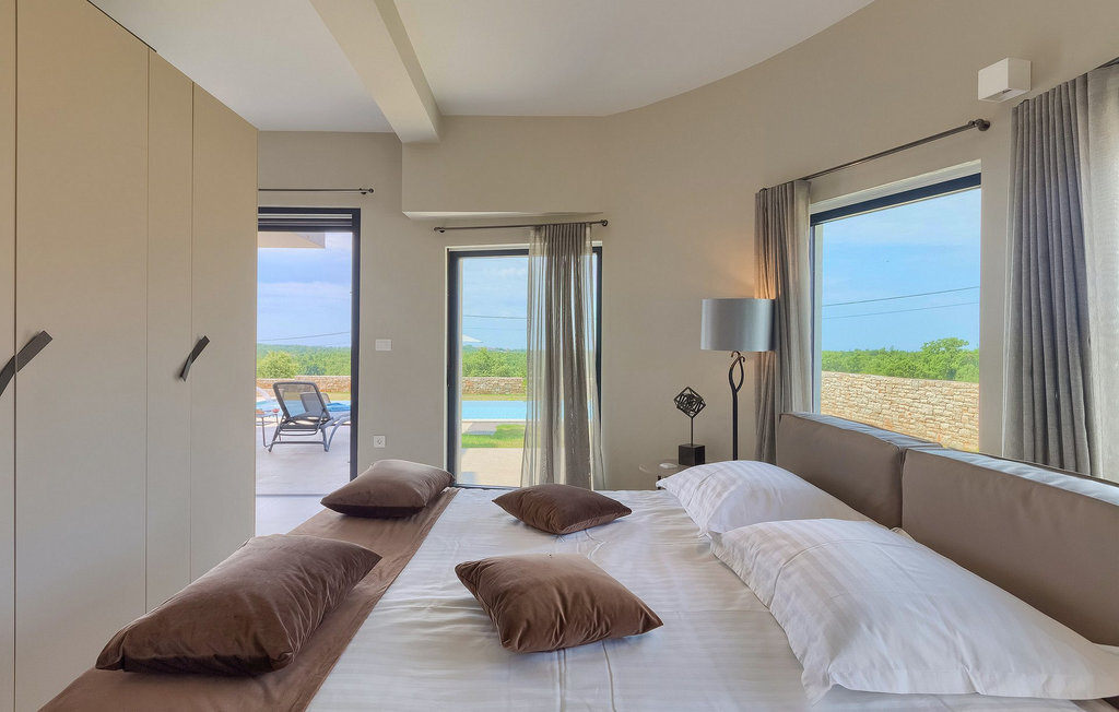 Entrez dans un coin de tranquillité dans un petit village calme au centre de l'Istrie. La Villa Eleonora offre un environnement calme et détendu avec une touche de modernité et de nombreuses possibilités de profiter - de la grande piscine privée (50 m2) dans le beau jardin verdoyant et un sauna. Lorsque vous entrez dans la villa, vous ressentez l'harmonie des couleurs inscrites dans l'intérieur moderne et minimaliste. Au rez-de-chaussée se trouve également une chambre à coucher avec un lit double, un sauna et une salle de bain en suite. Passez du temps avec vos amis et votre famille dans le salon relié à la salle à manger et à la cuisine contemporaine, le tout dans un concept ouvert. De là, vous avez une belle vue sur le jardin et la piscine. De nombreux tableaux modernes sont accrochés aux murs et donnent vie à la villa. Au premier étage se trouvent 3 belles chambres avec salles de bains en suite et des balcons pour profiter de la vue. Si vous voyagez avec des enfants, il y a une petite aire de jeux pour les plus jeunes, afin que vous puissiez vous détendre à côté de la piscine pendant que les enfants jouent. Deux vélos sont également à votre disposition. Le jardin offre de la place pour manger vos délicieux plats en plein air à côté du barbecue. Toutes les commodités, comme les magasins et les restaurants, se trouvent à quelques pas. Si vous souhaitez aller à la plage, vous n'avez besoin que de 20 minutes en voiture pour profiter de vos vacances en Istrie!La Villa Eleonora est située dans un petit village tranquille dans la région centrale de l'Istrie, près de la charmante ville de Visnjan. Si vous souhaitez explorer l'Istrie, vous devez absolument visiter Motovun. Il s'agit d'un magnifique monument urbain médiéval avec un terrain de golf, des fontaines naturelles et un spa, de l'équitation et un festival international du film. Les premiers magasins, restaurants et bars se trouvent dans la petite mais belle ville de Visnjan, qui vous propose également une visite de l'observatoire et du centre d'astronomie. Cette région est connue pour ses caves à vin. La plage la plus proche se trouve à seulement 15 km de la villa et vous pourrez profiter de la vue sur la mer depuis votre balcon. Si vous souhaitez explorer d'autres belles villes à proximité, nous vous recommandons Porec (20 km) ou Rovinj (30-40 km).