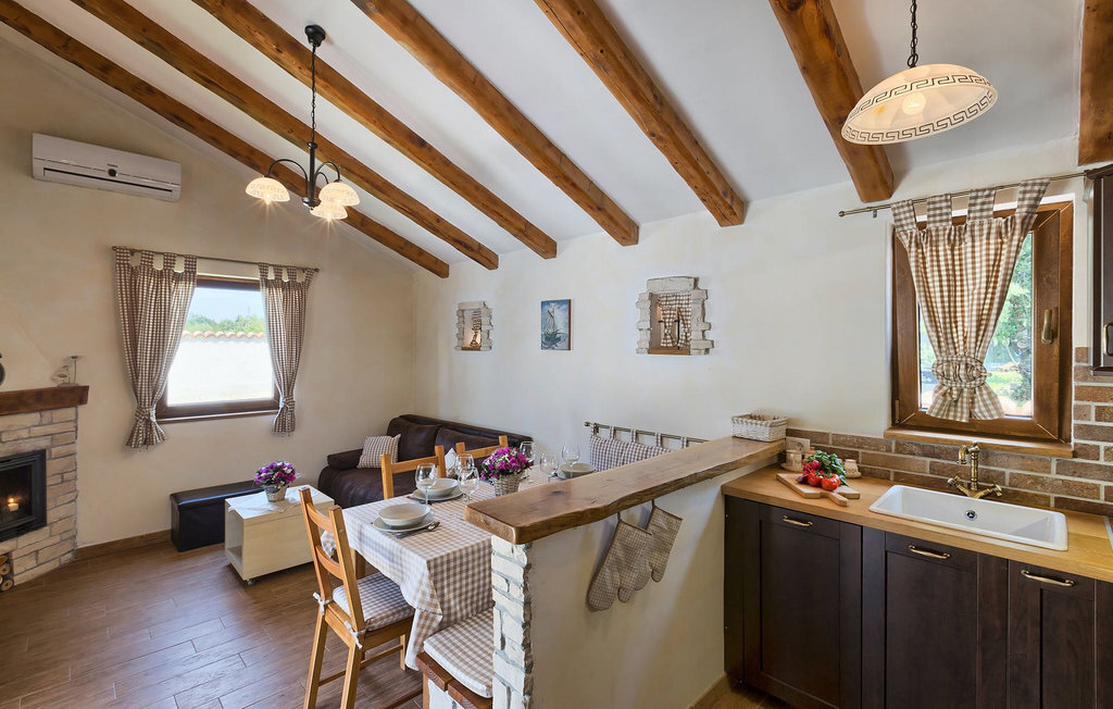 La Villa Bilen est une délicieuse villa pour 6 personnes, nichée dans un paysage paisible à proximité de Medulin et de Pula, tout en étant proche de la magnifique mer Adriatique. Cette propriété est idéale pour passer des vacances relaxantes en famille, loin de l'agitation de la ville. L'extérieur de la villa dispose d'une piscine privée, de chaises longues confortables pour profiter tranquillement des rayons du soleil et de beaucoup d'espace pour que les enfants puissent jouer. Une terrasse couverte avec une table à manger est également à la disposition des hôtes pour passer de belles soirées d'été, profiter d'une ambiance romantique en famille ou entre amis et manger des spécialités locales au barbecue au charbon de bois. Des balançoires et des vélos sont proposés aux plus jeunes membres de la famille. L'intérieur de la villa est rempli de détails soignés, ce qui en fait une agréable villa de vacances istrienne. La villa Bilen se compose d'un salon avec une magnifique cheminée, d'une salle à manger et d'une cuisine traditionnelle, ainsi que de deux chambres doubles confortables et de deux salles de bain avec douche. En outre, la Villa Bilen offre une connexion WLAN, un parking privé et tout ce dont vous avez besoin pour passer des vacances confortables. Ainsi, en réservant la Villa Bilen, vous pourrez passer de fantastiques vacances en famille en Istrie!La Villa Bilen se trouve à Medulin, près de Pula. Ancien village de pêcheurs, Medulin est aujourd'hui une destination touristique populaire, largement connue pour sa variété de plages de rochers, de galets et de sable. C'est un endroit idéal pour les amoureux de la nature, ainsi que pour ceux qui souhaitent se détendre loin de l'agitation de la vie quotidienne, tout en étant à proximité du centre de divertissement.