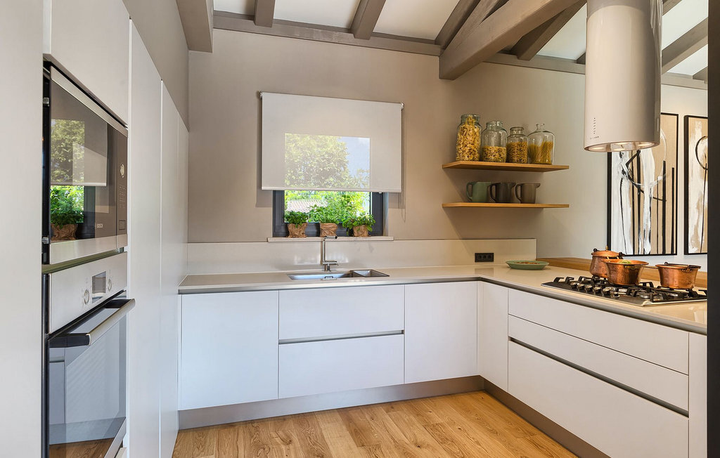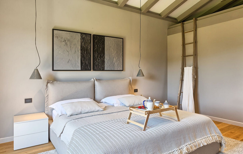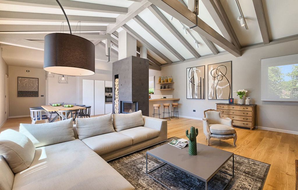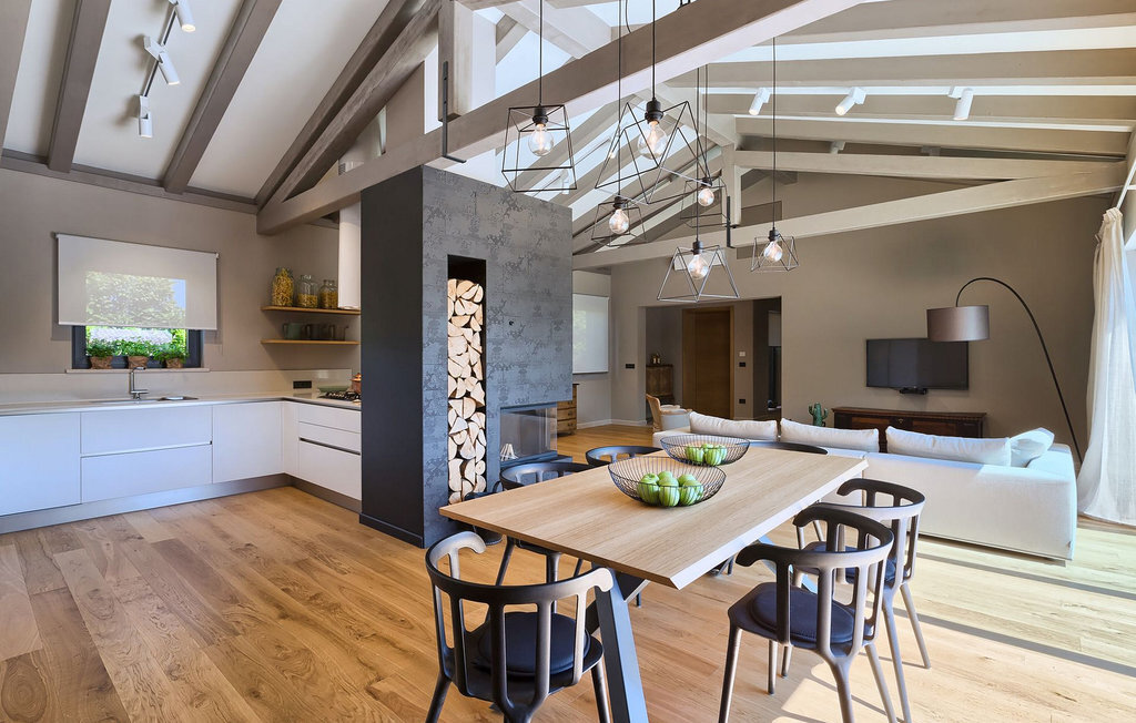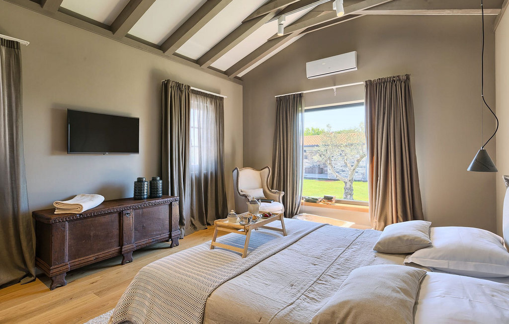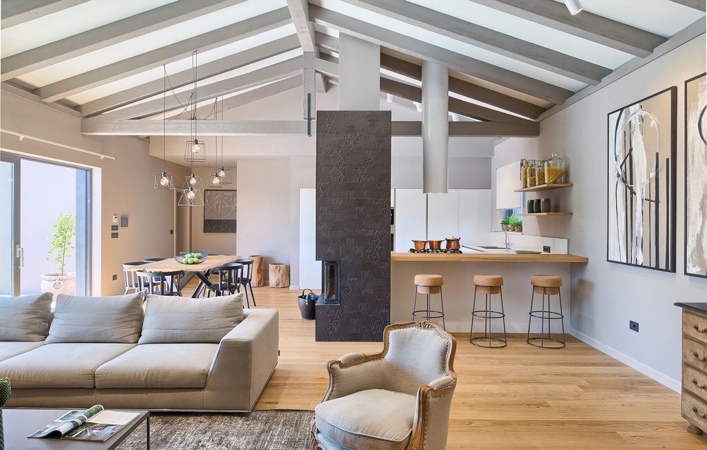 L'intérieur spacieux et aéré de la villa combine des détails rustiques avec des meubles élégants et un équipement moderne (WiFi, A/C).