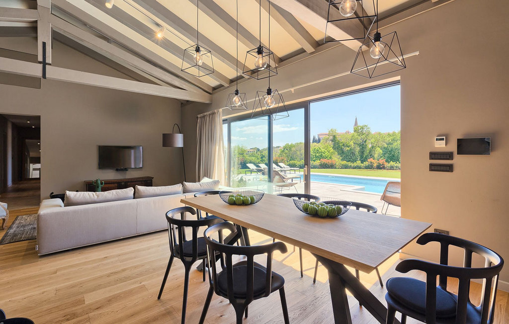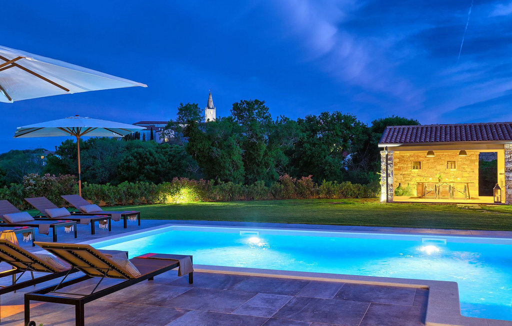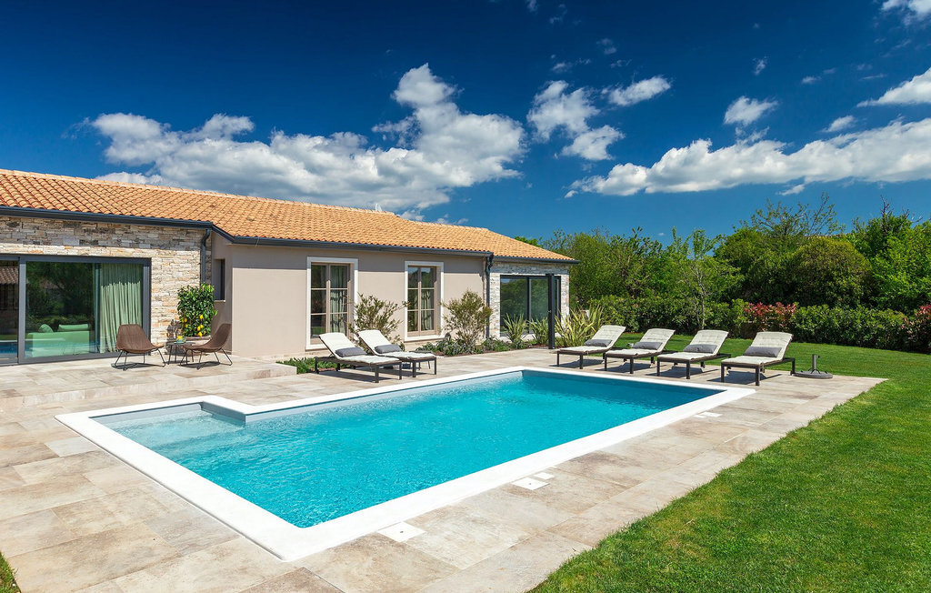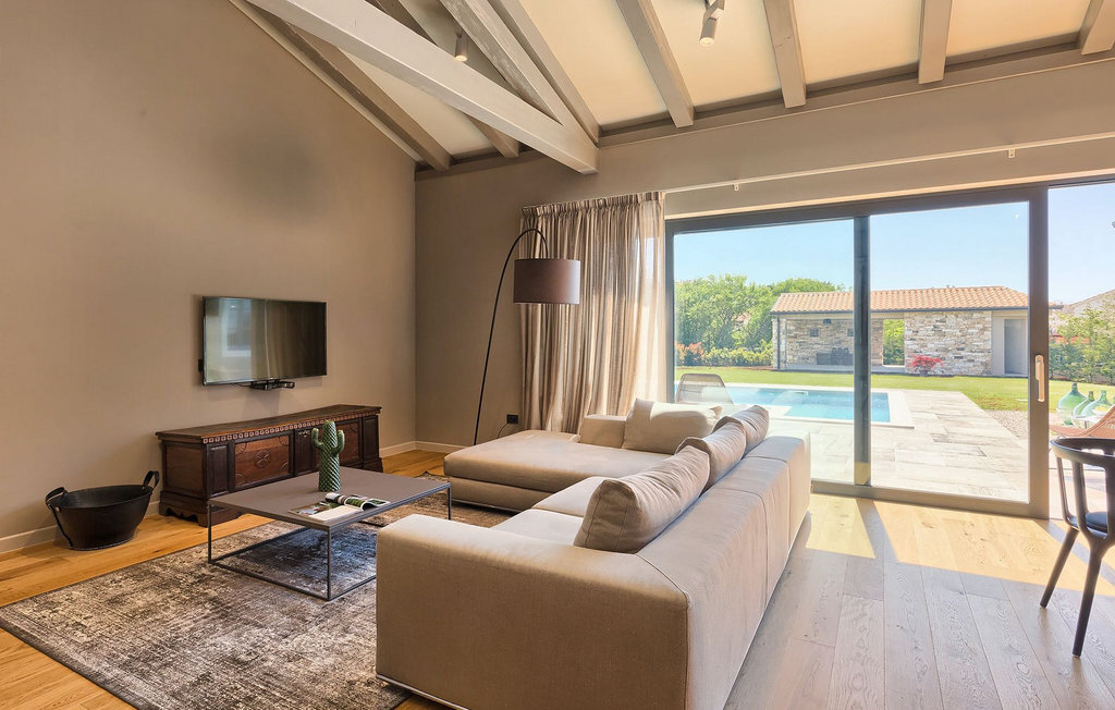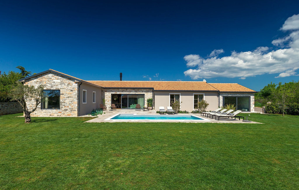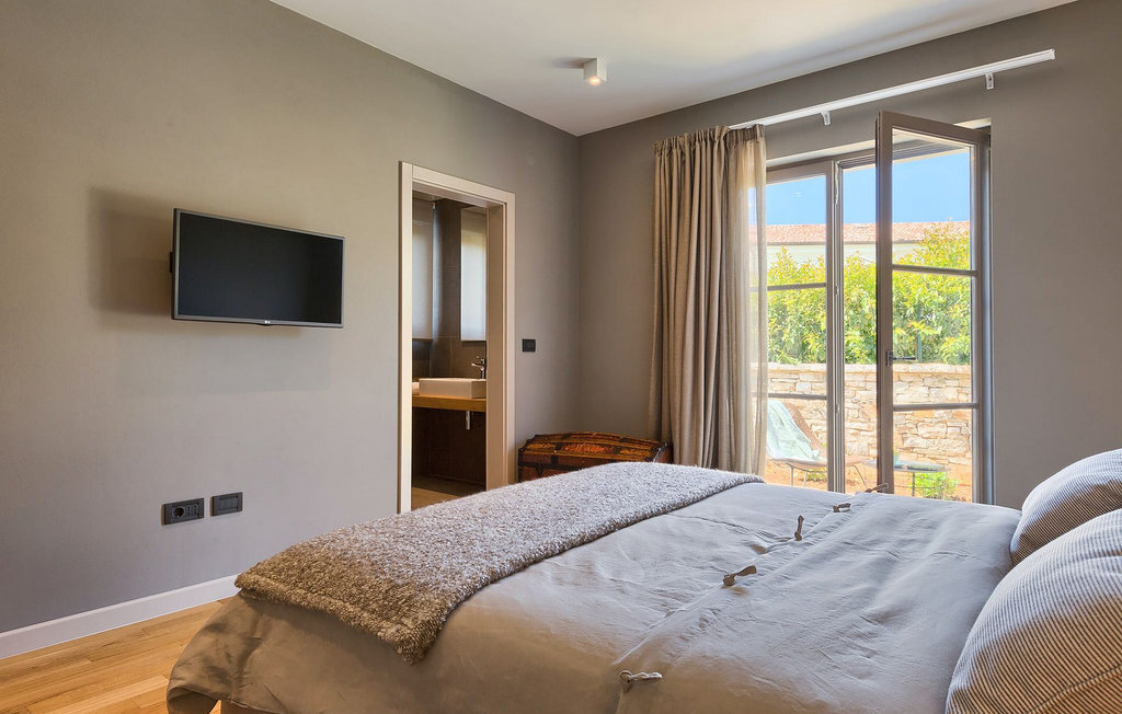 Vous serez séduit par le salon et la salle à manger ouverts, avec des plafonds aux poutres apparentes et une cheminée qui crée une atmosphère chaleureuse. La cuisine entièrement équipée de la villa et les 4 grandes chambres à coucher avec des fenêtres en forme de galerie ne sont pas moins impressionnantes. Le rez-de-chaussée de la villa Grotte donne accès à l'espace piscine, où vous pourrez passer vos journées à profiter du chaud soleil d'Istrie ou à nager dans l'accueillante piscine, tout en profitant de la vue sur une petite ville d'Istrie au charme néanmoins époustouflant.