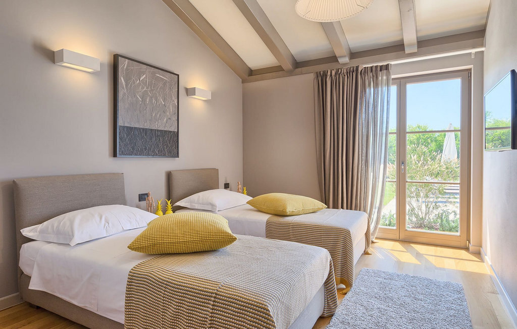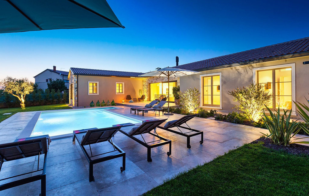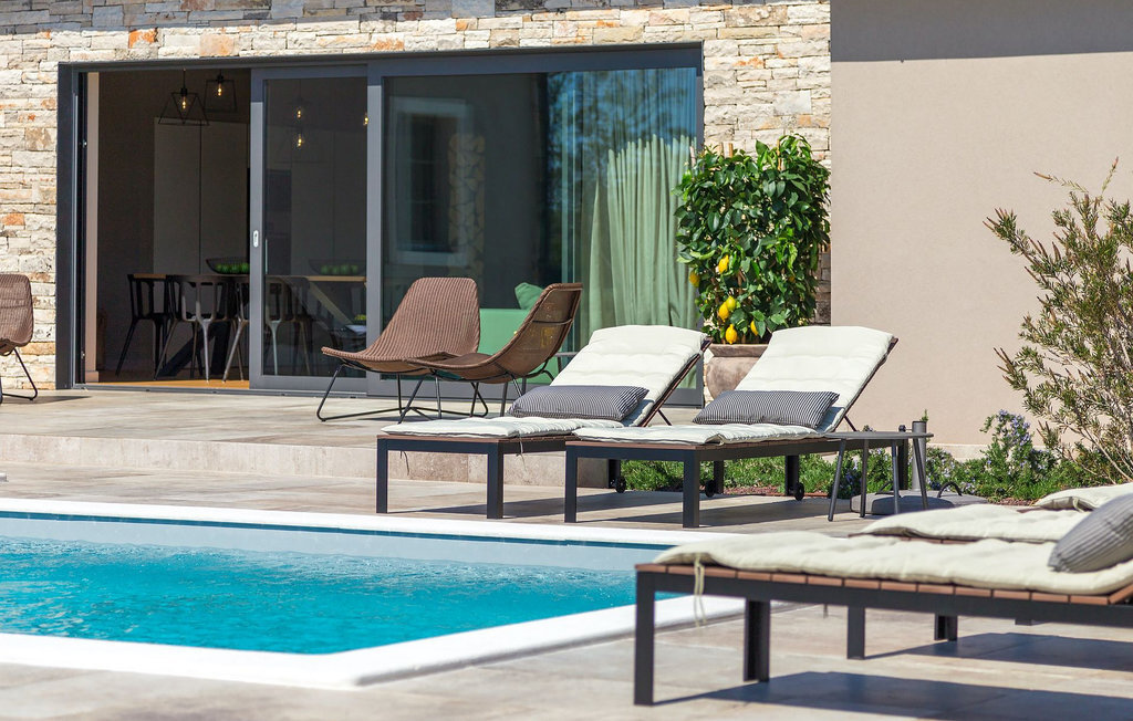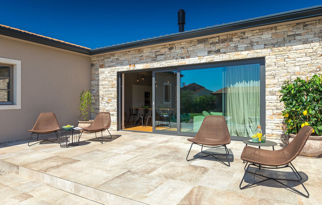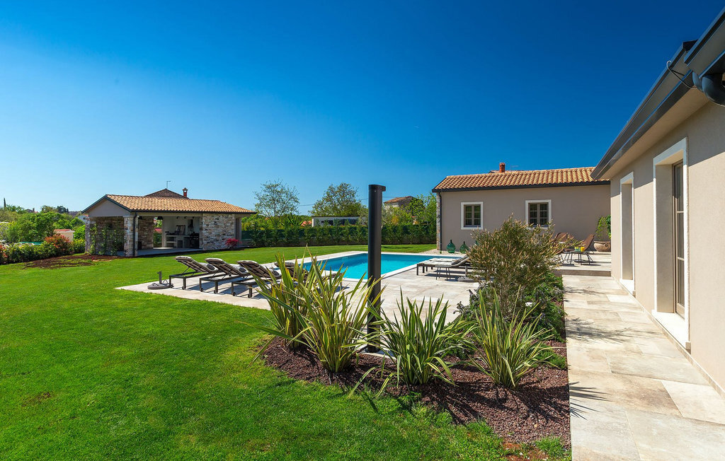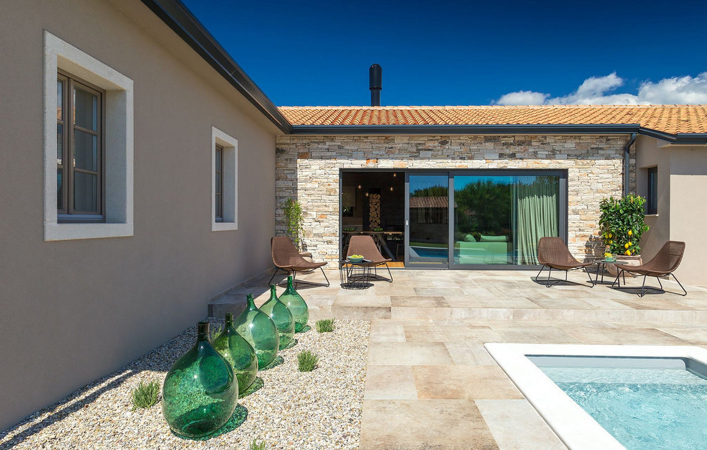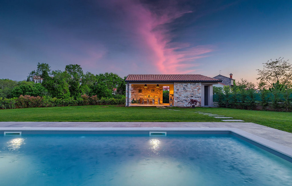 Vous serez séduit par le salon et la salle à manger ouverts, avec des plafonds aux poutres apparentes et une cheminée qui crée une atmosphère chaleureuse. La cuisine entièrement équipée de la villa et les 4 grandes chambres à coucher avec des fenêtres en forme de galerie ne sont pas moins impressionnantes. Le rez-de-chaussée de la villa Grotte donne accès à l'espace piscine, où vous pourrez passer vos journées à profiter du chaud soleil d'Istrie ou à nager dans l'accueillante piscine, tout en profitant de la vue sur une petite ville d'Istrie au charme néanmoins époustouflant.