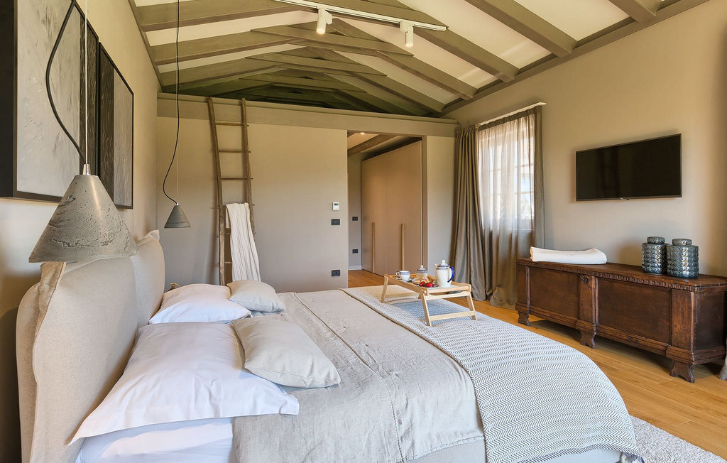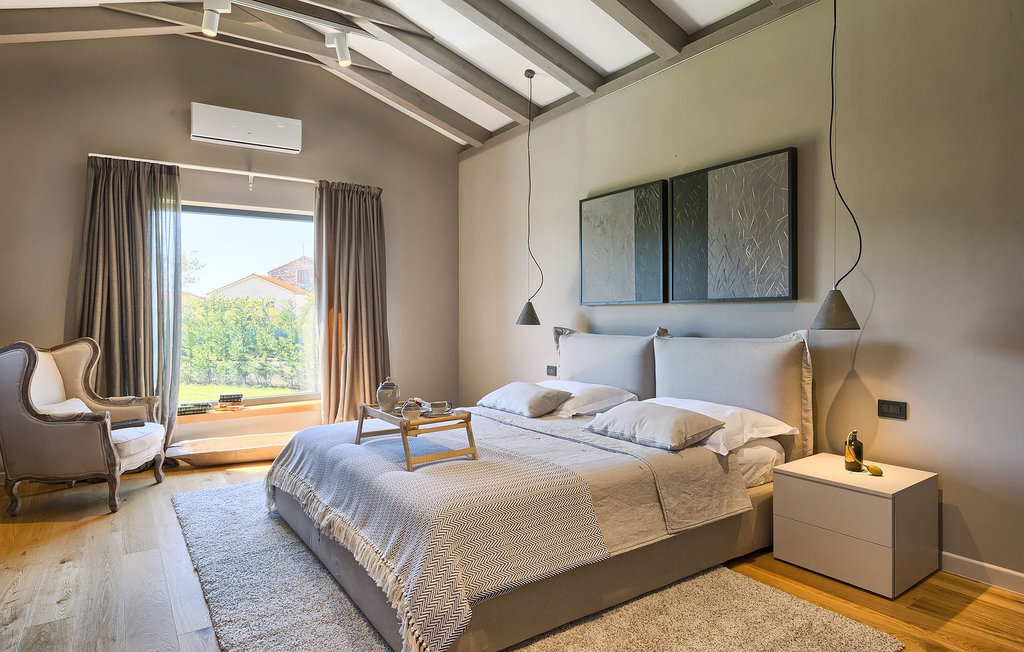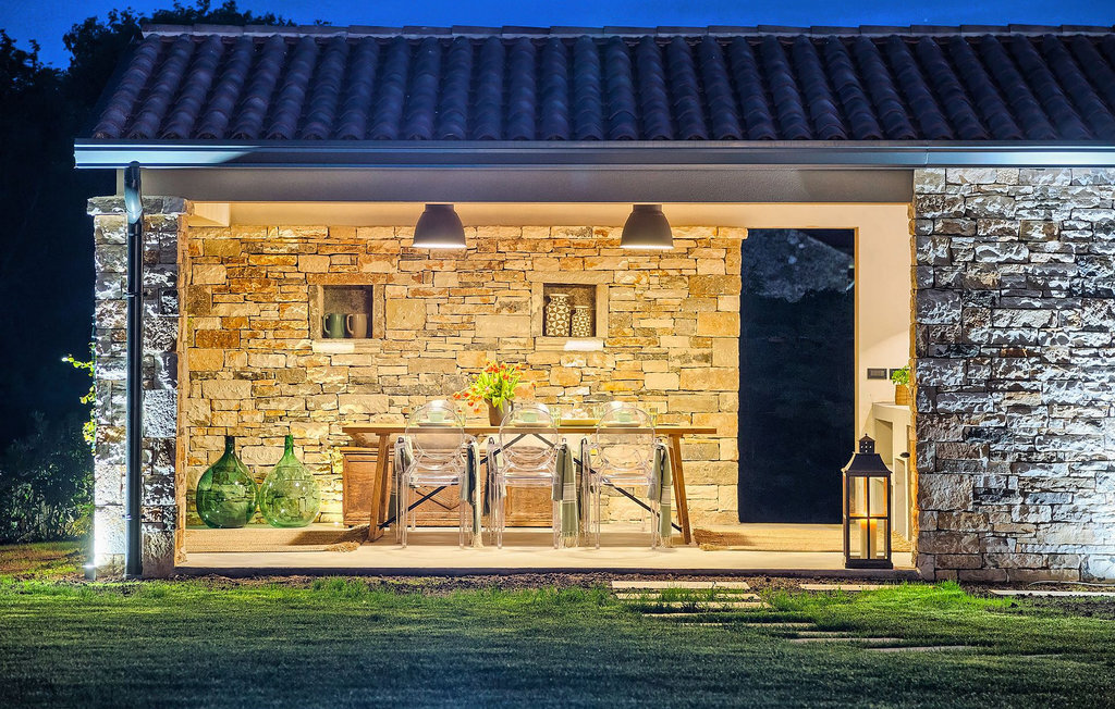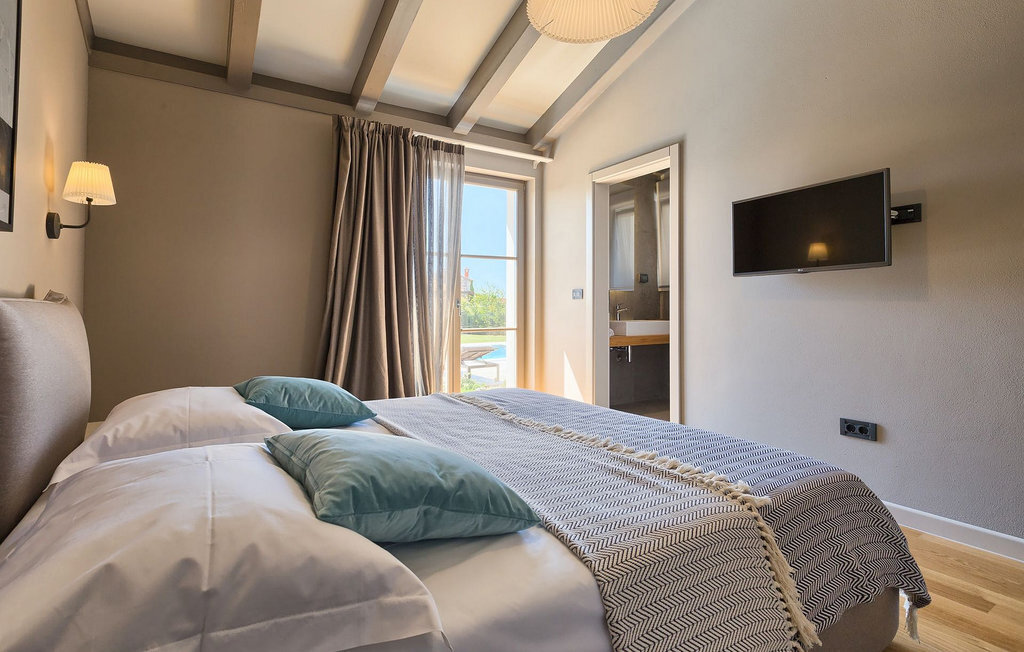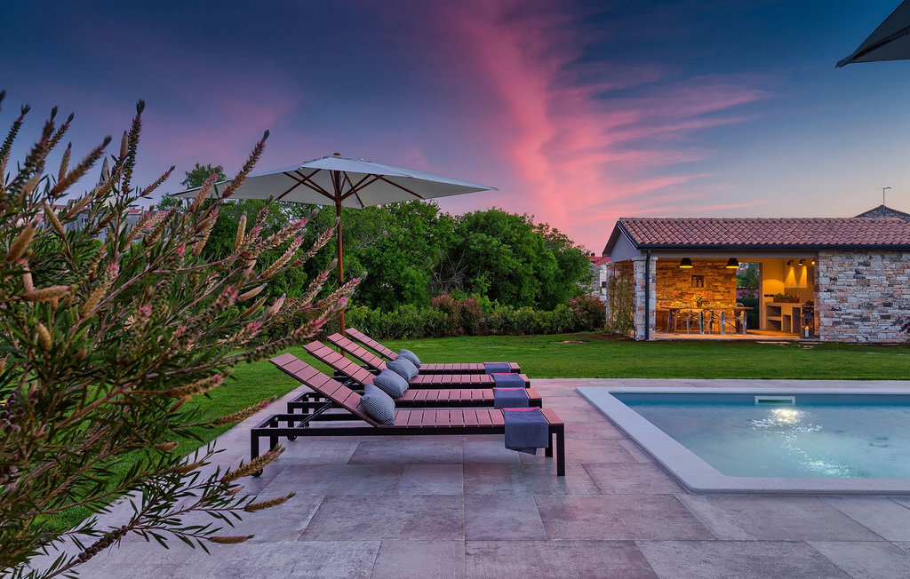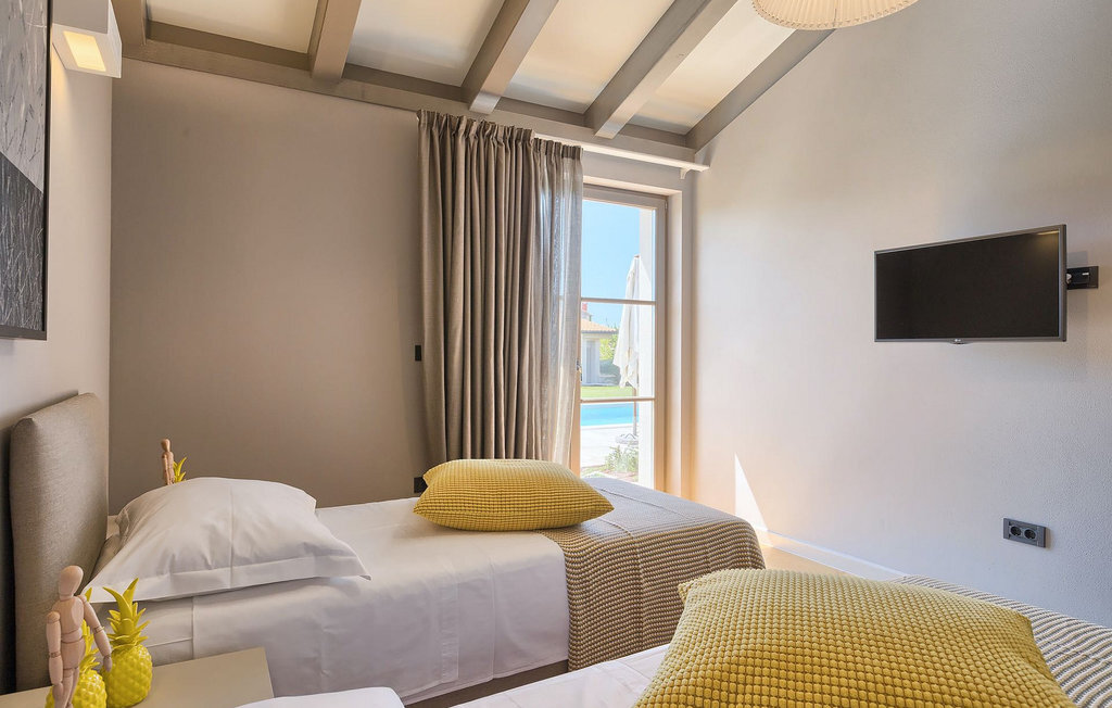 Vous serez séduit par le salon et la salle à manger ouverts, avec des plafonds aux poutres apparentes et une cheminée qui crée une atmosphère chaleureuse. La cuisine entièrement équipée de la villa et les 4 grandes chambres à coucher avec des fenêtres en forme de galerie ne sont pas moins impressionnantes. Le rez-de-chaussée de la villa Grotte donne accès à l'espace piscine, où vous pourrez passer vos journées à profiter du chaud soleil d'Istrie ou à nager dans l'accueillante piscine, tout en profitant de la vue sur une petite ville d'Istrie au charme néanmoins époustouflant.