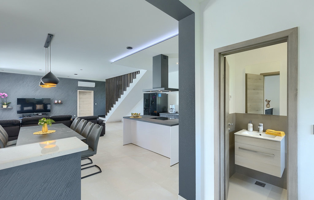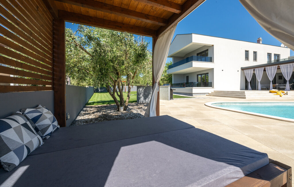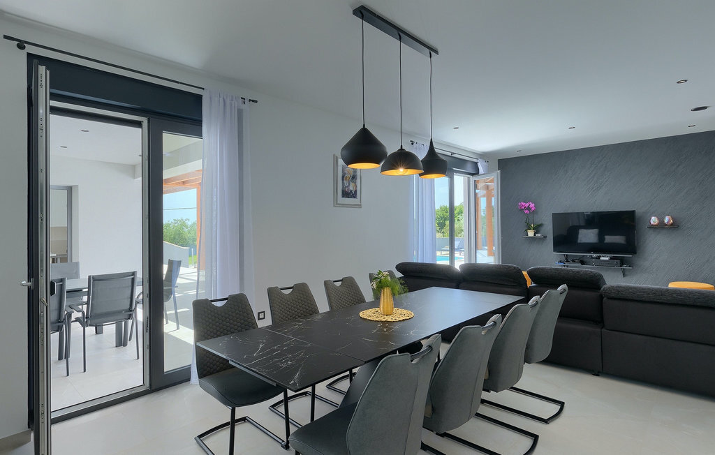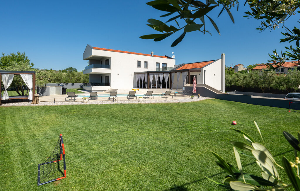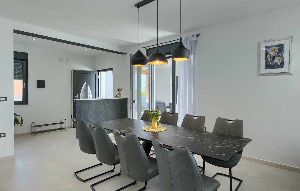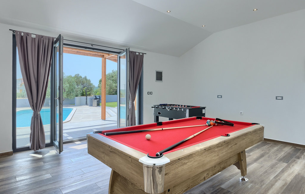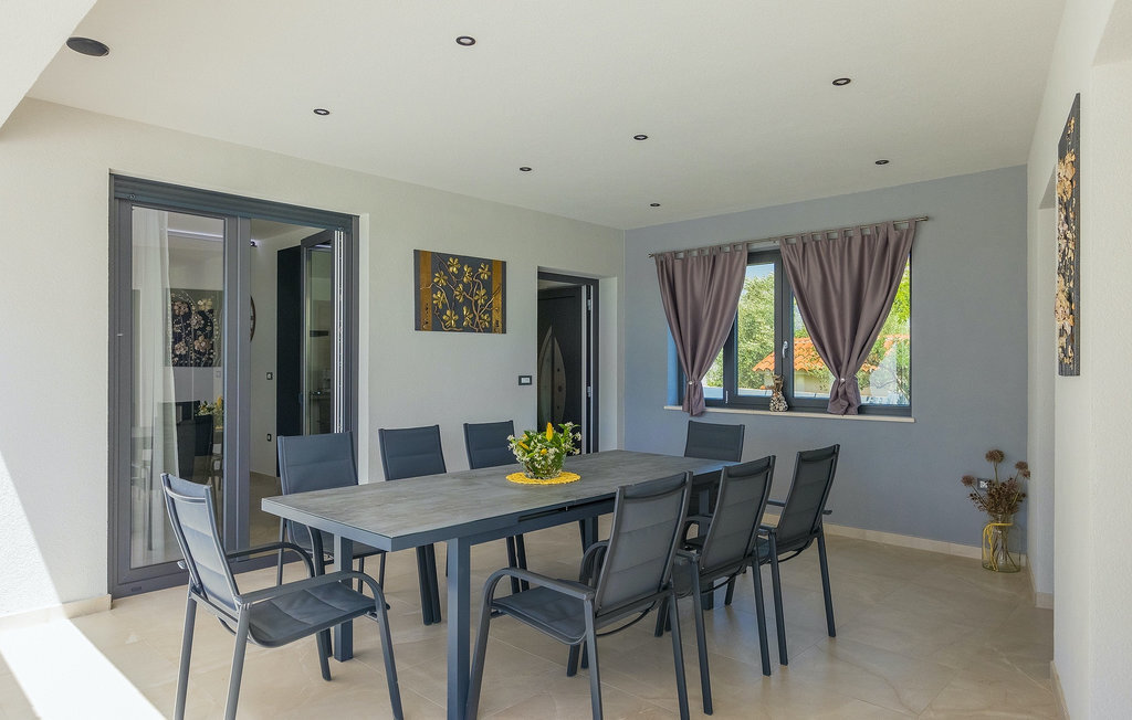 La Villa Posidonia est l'endroit idéal pour passer des vacances inoubliables ! Elle se trouve dans un petit village d'Istrie et jouit d'une excellente situation à proximité de la mer - idéale pour découvrir les magnifiques plages d'Istrie. La villa peut accueillir jusqu'à neuf personnes et offre tout ce dont vous avez besoin pour des vacances reposantes avec vos proches. Vous avez à votre disposition une piscine privée et une douche extérieure qui vous invite à vous rafraîchir lors des chaudes journées d'été ainsi que des chaises longues sur lesquelles vous pouvez vous détendre et vous relaxer. Un barbecue et un coin repas en plein air sont à votre disposition. À l'extérieur, vous trouverez des buts pour le football, le badminton et une aire de jeux pour les enfants. Le terrain est entièrement clôturé et dispose d'un parking privé pouvant accueillir jusqu'à cinq voitures. L'intérieur de la villa est aménagé avec style et goût, jusque dans les moindres détails. Au rez-de-chaussée se trouvent une cuisine entièrement équipée avec un coin repas, un salon, des toilettes séparées, une chambre à coucher avec un lit double, un balcon avec vue sur la mer et sur la piscine, une télévision et une salle de bains en-suite ainsi qu'une buanderie et une salle de jeux avec billard, baby-foot et fléchettes. Au premier étage se trouvent trois autres chambres à coucher confortables. Deux avec un lit double, une avec deux lits simples, un balcon avec vue sur la mer, une télévision et une salle de bain en-suite. La villa est entièrement climatisée et offre un accès à Internet.La villa Posidonia se trouve à proximité de Pula. Pula est le centre touristique de l'Istrie en termes de culture, de tradition et de belle nature. Elle a connu son apogée à l'époque romaine. Les Romains ont laissé de nombreuses traces, notamment le bel amphithéâtre. Explorez les rues de la ville et savourez les spécialités istriennes proposées dans les restaurants. À une courte distance en voiture se trouve le cap de Kamenjak, un magnifique exemple de nature intacte. Une mer cristalline et des plages à l'ombre naturelle couperont le souffle aux plus exigeants. De nombreuses commodités attrayantes se trouvent à quelques minutes en voiture. Certaines d'entre elles sont le parc national des îles Brijuni avec un terrain de golf unique et un parc safari, ainsi que de nombreuses autres attractions culturelles et touristiques. Pour les amateurs de sport, diverses activités sont proposées, comme le football, l'équitation, le tennis, la voile, le minigolf, l'aviation, le bowling, le volley-ball sur le sable, la plongée dans le silence du monde sous-marin et plusieurs autres sports et activités nautiques.