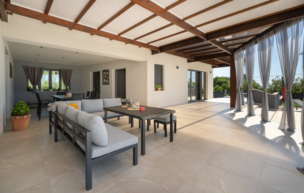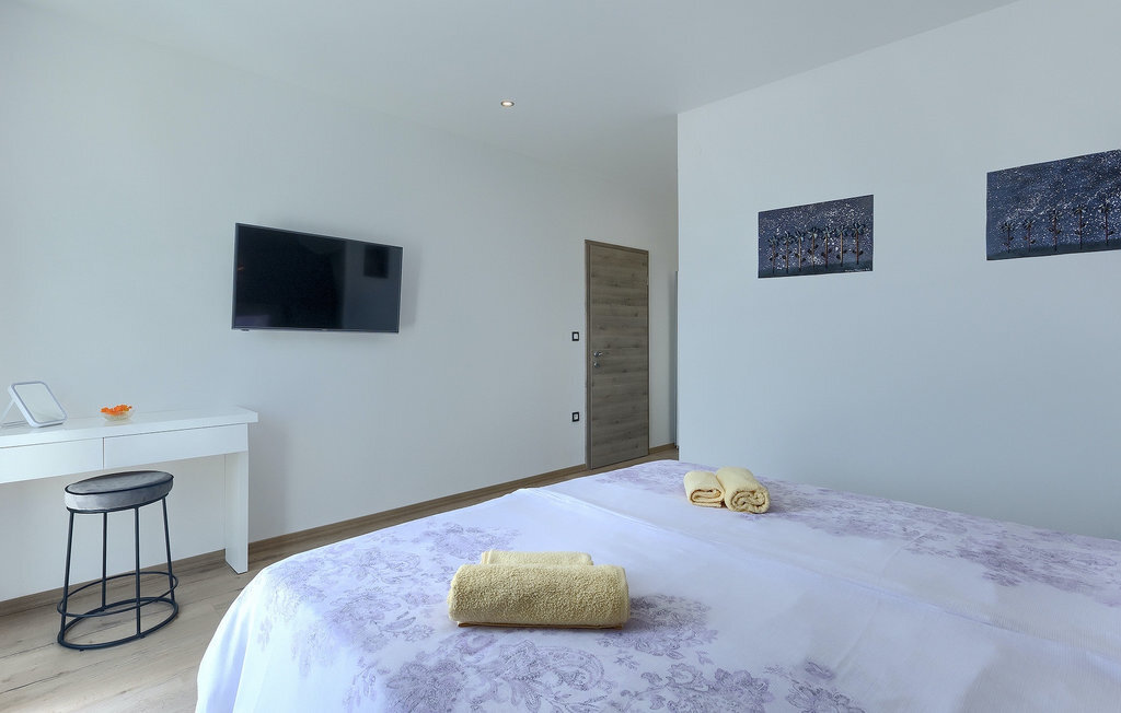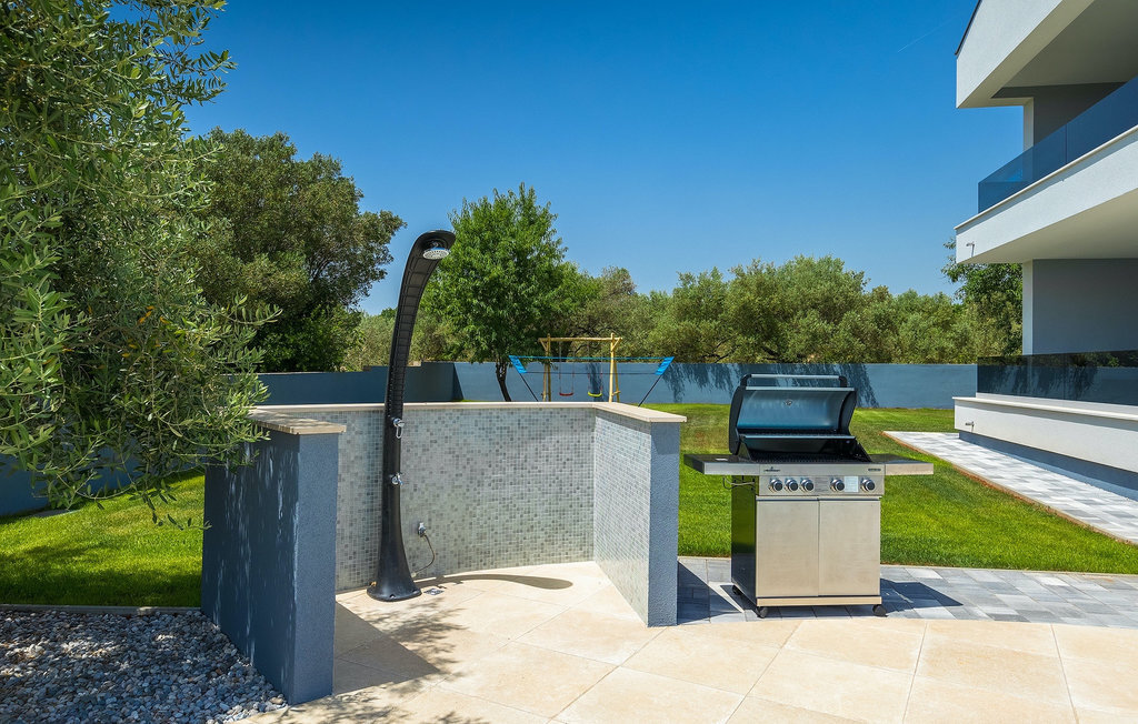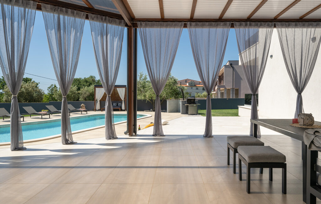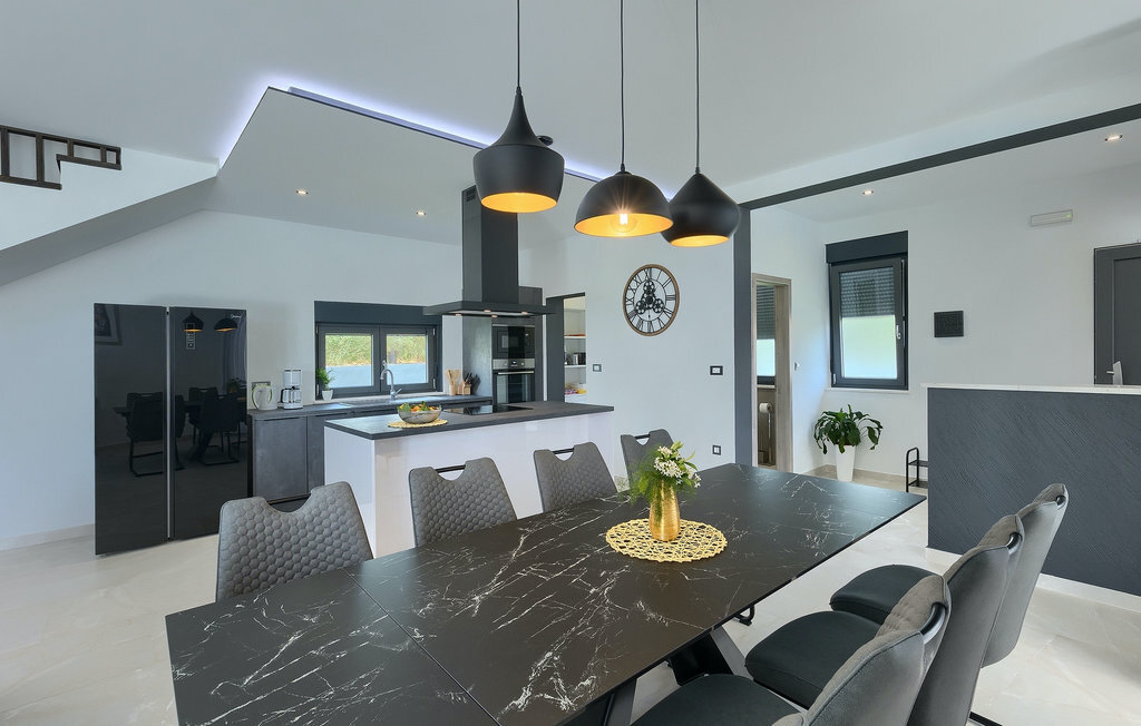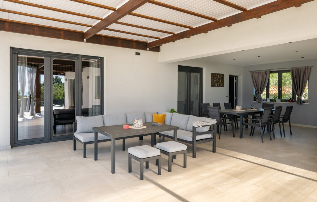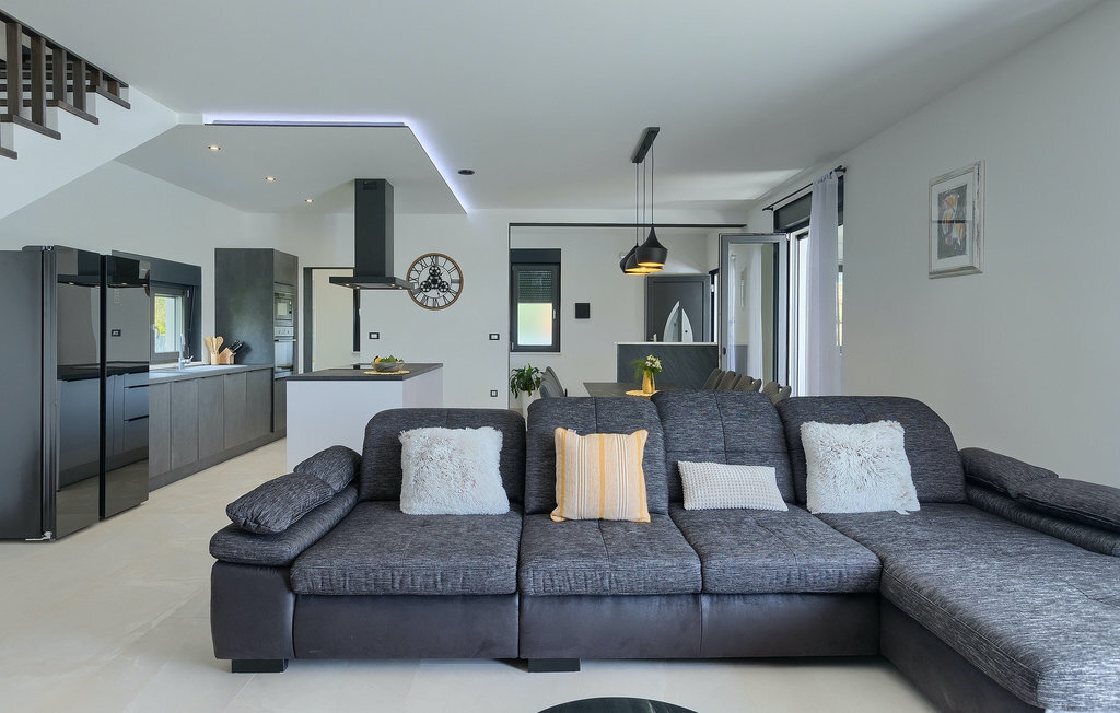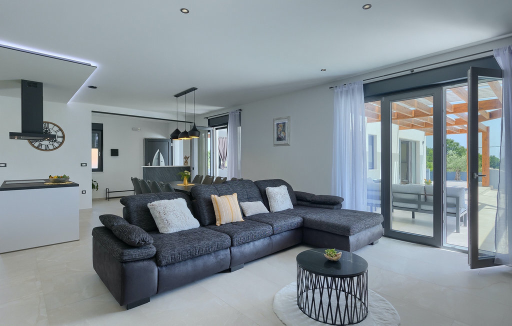 La Villa Posidonia est l'endroit idéal pour passer des vacances inoubliables ! Elle se trouve dans un petit village d'Istrie et jouit d'une excellente situation à proximité de la mer - idéale pour découvrir les magnifiques plages d'Istrie. La villa peut accueillir jusqu'à neuf personnes et offre tout ce dont vous avez besoin pour des vacances reposantes avec vos proches. Vous avez à votre disposition une piscine privée et une douche extérieure qui vous invite à vous rafraîchir lors des chaudes journées d'été ainsi que des chaises longues sur lesquelles vous pouvez vous détendre et vous relaxer. Un barbecue et un coin repas en plein air sont à votre disposition. À l'extérieur, vous trouverez des buts pour le football, le badminton et une aire de jeux pour les enfants. Le terrain est entièrement clôturé et dispose d'un parking privé pouvant accueillir jusqu'à cinq voitures. L'intérieur de la villa est aménagé avec style et goût, jusque dans les moindres détails. Au rez-de-chaussée se trouvent une cuisine entièrement équipée avec un coin repas, un salon, des toilettes séparées, une chambre à coucher avec un lit double, un balcon avec vue sur la mer et sur la piscine, une télévision et une salle de bains en-suite ainsi qu'une buanderie et une salle de jeux avec billard, baby-foot et fléchettes. Au premier étage se trouvent trois autres chambres à coucher confortables. Deux avec un lit double, une avec deux lits simples, un balcon avec vue sur la mer, une télévision et une salle de bain en-suite. La villa est entièrement climatisée et offre un accès à Internet.La villa Posidonia se trouve à proximité de Pula. Pula est le centre touristique de l'Istrie en termes de culture, de tradition et de belle nature. Elle a connu son apogée à l'époque romaine. Les Romains ont laissé de nombreuses traces, notamment le bel amphithéâtre. Explorez les rues de la ville et savourez les spécialités istriennes proposées dans les restaurants. À une courte distance en voiture se trouve le cap de Kamenjak, un magnifique exemple de nature intacte. Une mer cristalline et des plages à l'ombre naturelle couperont le souffle aux plus exigeants. De nombreuses commodités attrayantes se trouvent à quelques minutes en voiture. Certaines d'entre elles sont le parc national des îles Brijuni avec un terrain de golf unique et un parc safari, ainsi que de nombreuses autres attractions culturelles et touristiques. Pour les amateurs de sport, diverses activités sont proposées, comme le football, l'équitation, le tennis, la voile, le minigolf, l'aviation, le bowling, le volley-ball sur le sable, la plongée dans le silence du monde sous-marin et plusieurs autres sports et activités nautiques.