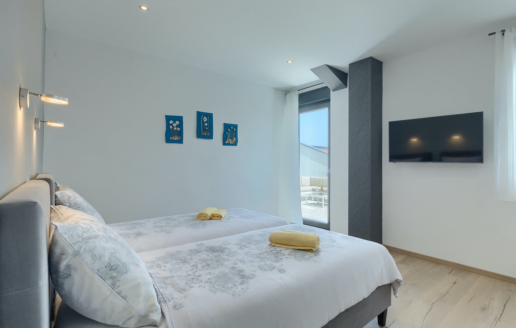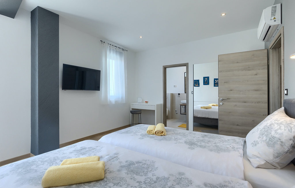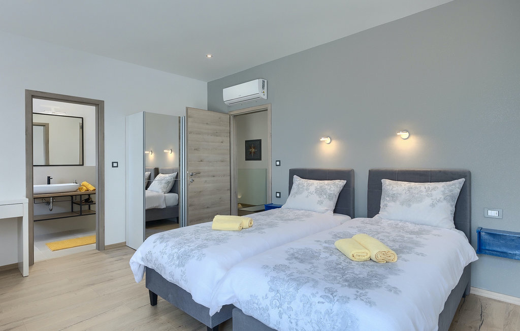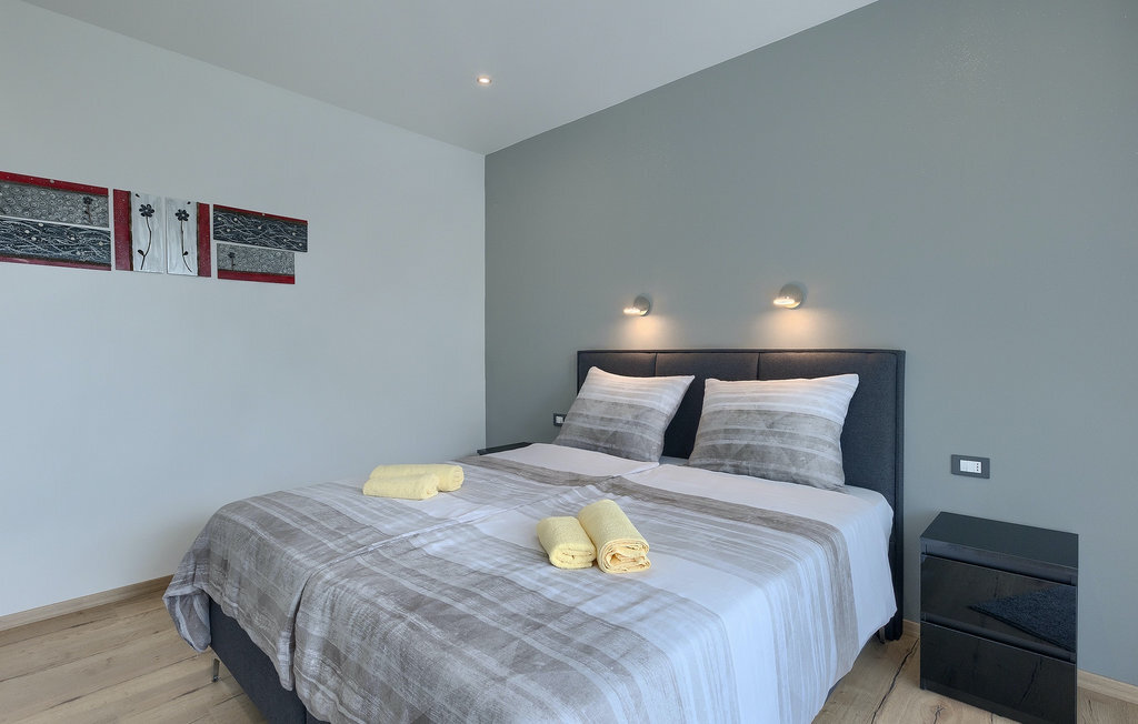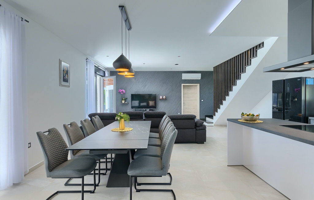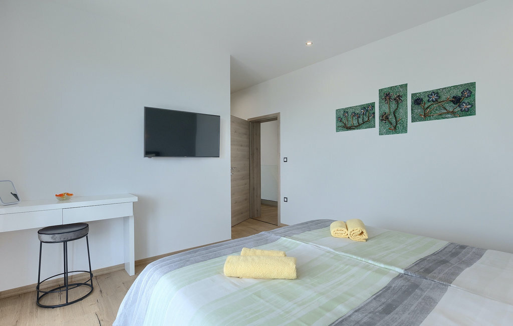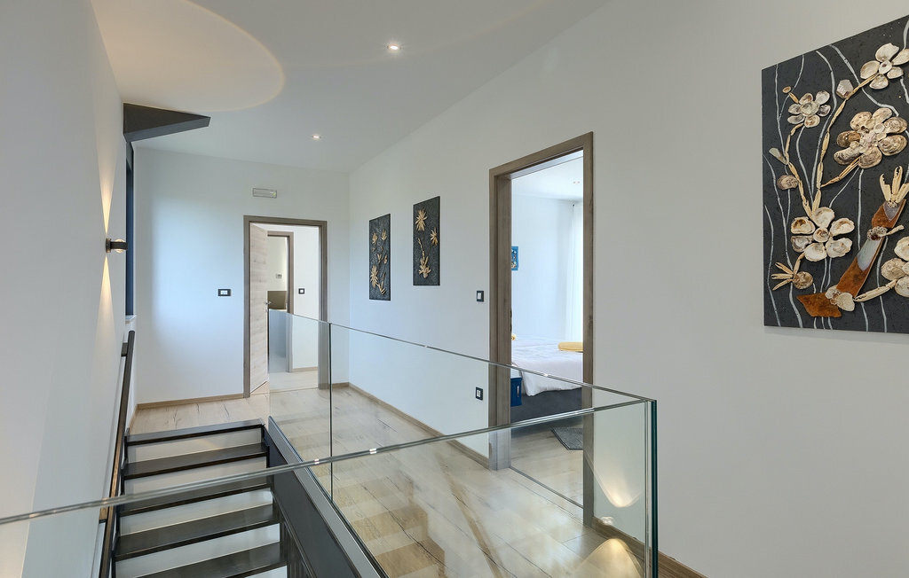 La Villa Posidonia est l'endroit idéal pour passer des vacances inoubliables ! Elle se trouve dans un petit village d'Istrie et jouit d'une excellente situation à proximité de la mer - idéale pour découvrir les magnifiques plages d'Istrie. La villa peut accueillir jusqu'à neuf personnes et offre tout ce dont vous avez besoin pour des vacances reposantes avec vos proches. Vous avez à votre disposition une piscine privée et une douche extérieure qui vous invite à vous rafraîchir lors des chaudes journées d'été ainsi que des chaises longues sur lesquelles vous pouvez vous détendre et vous relaxer. Un barbecue et un coin repas en plein air sont à votre disposition. À l'extérieur, vous trouverez des buts pour le football, le badminton et une aire de jeux pour les enfants. Le terrain est entièrement clôturé et dispose d'un parking privé pouvant accueillir jusqu'à cinq voitures. L'intérieur de la villa est aménagé avec style et goût, jusque dans les moindres détails. Au rez-de-chaussée se trouvent une cuisine entièrement équipée avec un coin repas, un salon, des toilettes séparées, une chambre à coucher avec un lit double, un balcon avec vue sur la mer et sur la piscine, une télévision et une salle de bains en-suite ainsi qu'une buanderie et une salle de jeux avec billard, baby-foot et fléchettes. Au premier étage se trouvent trois autres chambres à coucher confortables. Deux avec un lit double, une avec deux lits simples, un balcon avec vue sur la mer, une télévision et une salle de bain en-suite. La villa est entièrement climatisée et offre un accès à Internet.La villa Posidonia se trouve à proximité de Pula. Pula est le centre touristique de l'Istrie en termes de culture, de tradition et de belle nature. Elle a connu son apogée à l'époque romaine. Les Romains ont laissé de nombreuses traces, notamment le bel amphithéâtre. Explorez les rues de la ville et savourez les spécialités istriennes proposées dans les restaurants. À une courte distance en voiture se trouve le cap de Kamenjak, un magnifique exemple de nature intacte. Une mer cristalline et des plages à l'ombre naturelle couperont le souffle aux plus exigeants. De nombreuses commodités attrayantes se trouvent à quelques minutes en voiture. Certaines d'entre elles sont le parc national des îles Brijuni avec un terrain de golf unique et un parc safari, ainsi que de nombreuses autres attractions culturelles et touristiques. Pour les amateurs de sport, diverses activités sont proposées, comme le football, l'équitation, le tennis, la voile, le minigolf, l'aviation, le bowling, le volley-ball sur le sable, la plongée dans le silence du monde sous-marin et plusieurs autres sports et activités nautiques.