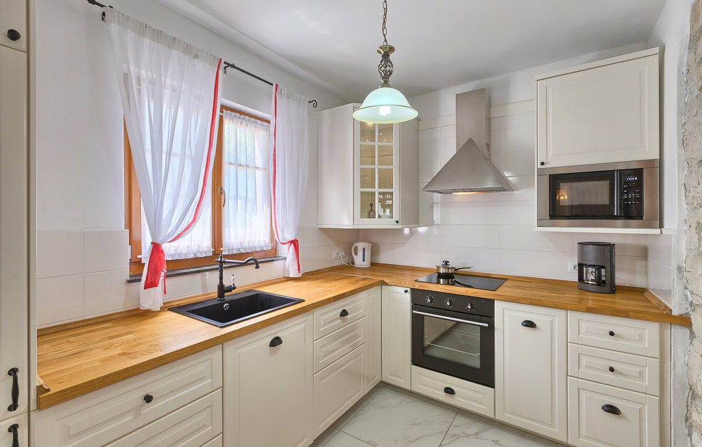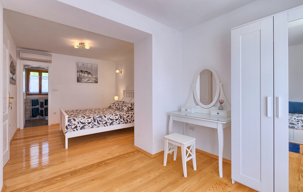 A côté de la piscine se trouve une terrasse avec un coin repas en plein air et un barbecue au charbon de bois, idéal pour préparer des spécialités en famille ou entre amis. La villa Taki est climatisée, dispose d'un accès Internet sans fil et offre tout ce qu'il faut pour des vacances agréables à proximité de la mer, que l'on peut voir depuis la terrasse supérieure.La villa est située dans un petit village proche de Rovinjsko Selo, à une courte distance en voiture de l'une des plus belles villes d'Istrie, Rovinj. Ressentez la magie de la ville dans ses étroites ruelles médiévales et son environnement méditerranéen chaleureux. Dans l'église principale de Sainte Euphémie, l'un des plus beaux bâtiments baroques d'Istrie, sont conservées des reliques de la sainte. De l'église, on jouit d'une vue magnifique sur la mer ouverte et les nombreux îlots au loin. Une visite au musée municipal de Rovinj et aux nombreuses galeries de la ville complètera votre expérience culturelle. L'ensemble du littoral, qui comprend vingt-deux îles au total, est une zone naturelle protégée. Les environs offrent de nombreuses possibilités de loisirs : Vélo, équitation, jogging... Grâce à la mer et à tout ce qu'elle a à offrir ? de la voile à la découverte du monde sous-marin, Rovinj est aujourd'hui une destination pour les visiteurs du monde entier. La spectaculaire réserve naturelle de la baie de Lim, avec ses plages sauvages et sa diversité de flore et de faune, est même plus proche.