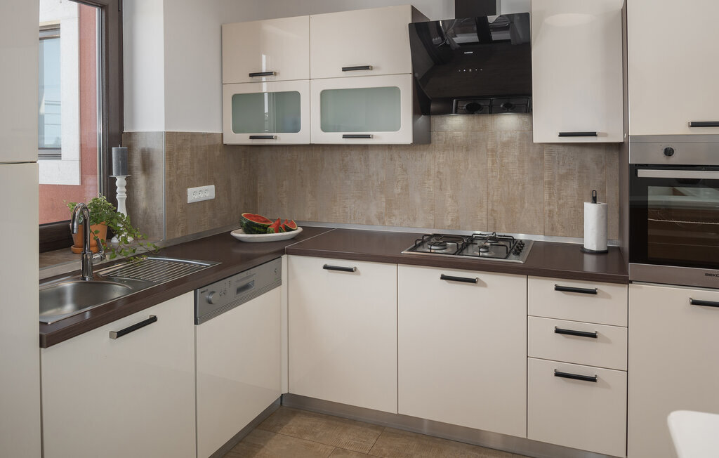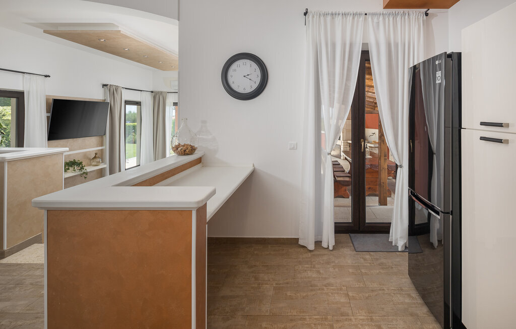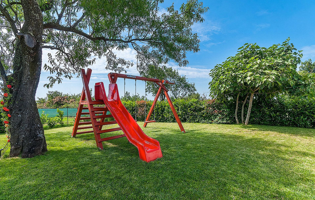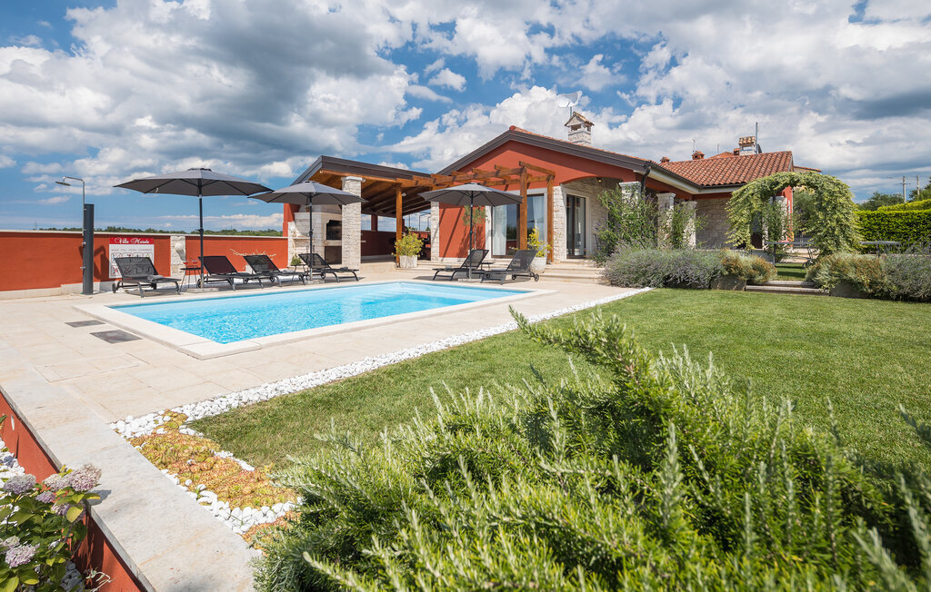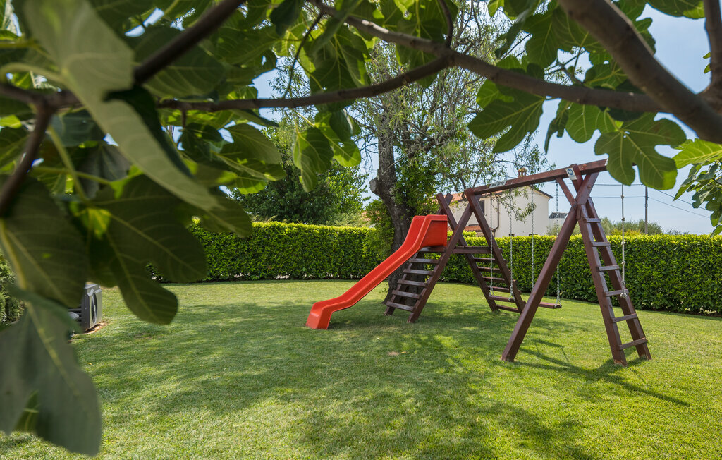 Passez vos vacances à la Villa Marula, qui garantit beaucoup de plaisir pour toutes les générations. Pendant que les enfants s'amusent sur l'aire de jeux, vous pouvez choisir entre le ping-pong et le baby-foot. Bien entendu, la piscine privée est également à votre disposition pour vous détendre. La villa est une charmante maison de campagne avec un plan ouvert qui la rend encore plus accueillante et confortable. La villa compte 4 chambres et 3 salles de bains. Comme la Villa Marula est destinée aux familles, elle peut accueillir jusqu'à 8 personnes. Directement depuis le salon, on a accès à deux terrasses couvertes, idéales pour se détendre à l'ombre. L'une des terrasses est également équipée d'un barbecue en pierre et de meubles de jardin en bois massif. Visitez l'Istrie, l'une des plus belles régions de Croatie, et profitez du temps ensoleillé, tandis que l'air sent la lavande et que l'on n'entend rien d'autre que le chant des oiseaux.