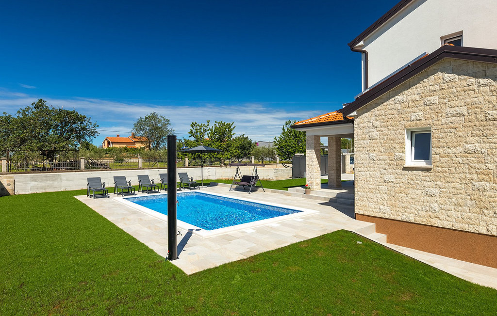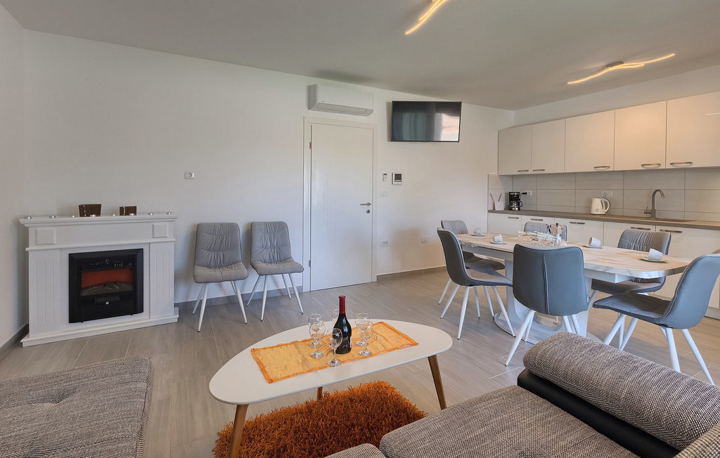 La belle villa Zirdum est le choix idéal pour des vacances relaxantes en famille. Avec 3 chambres à coucher, la villa peut accueillir jusqu'à 6 personnes (+ 1 petit enfant jusqu'à 7 ans sur demande). Le rez-de-chaussée est ouvert - vous y trouverez un salon confortable avec une cheminée ainsi qu'une cuisine entièrement équipée avec un coin repas. Au rez-de-chaussée se trouve également une des chambres à coucher, équipée d'un lit double, ainsi que 2 salles de bains. Au premier étage, vous trouverez 2 autres chambres à coucher, toutes deux avec leur propre salle de bain, afin de rendre votre séjour le plus confortable possible. La villa est claire et lumineuse, mais si vous préférez passer vos vacances à l'extérieur, vous serez ravi de votre propre piscine accueillante. Profitez du soleil et de la tranquillité qu'un petit village d'Istrie peut offrir. Un barbecue au charbon de bois est à votre disposition - parfait pour s'amuser en plein air et faire des grillades. Les repas peuvent être pris en plein air, sur la terrasse ! La villa a le WiFi et A / C. Réservez la Villa Zirdum et passez de merveilleuses vacances en Istrie !