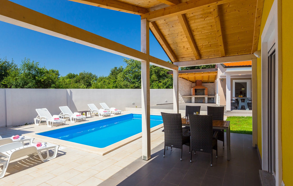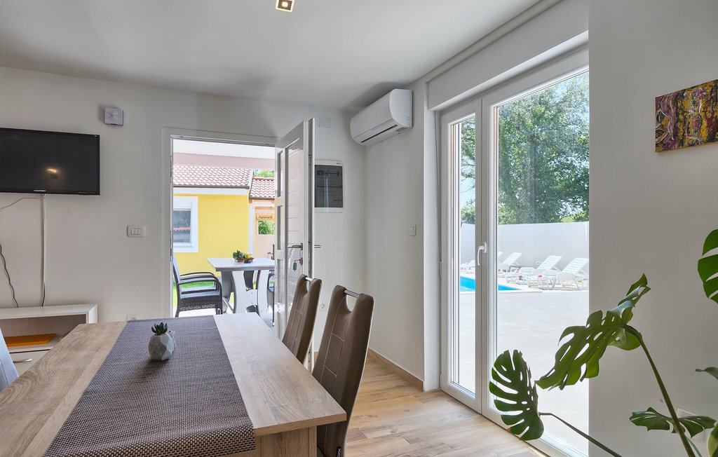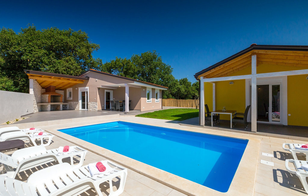 Villa Trusina n'est pas une, mais deux maisons, parfaites pour une expérience de vacances géniale pour deux familles ou deux groupes d'amis qui souhaitent passer leurs vacances ensemble, mais qui recherchent toujours un peu d'intimité. La plus grande maison rose a deux chambres et deux salles de bain, tandis que la plus petite a une chambre et une salle de bain. Les deux maisons ont leur propre salon et leur propre cuisine. Si vous souhaitez passer du temps ensemble, l'espace piscine est le choix idéal. Le barbecue et les chaises longues vous offrent l'endroit parfait pour passer du temps ensemble et commenter les merveilleux moments que vous avez passés en Istrie. Wifi, climatisation et parking sont bien sûr également disponibles.REMARQUE : Villa Trusina n'est pas une maison de fête et les jeunes groupes de visiteurs ne sont pas autorisés.Le petit village pittoresque de Valtura est connu pour son riche patrimoine culturel et historique datant de l'époque romaine. Le site archéologique le plus important, Nezakcij, se trouve à seulement 2 km de Valtura et est une destination populaire pour les archéologues. C'est un endroit idéal pour les amoureux de la nature et pour ceux qui souhaitent se détendre loin de l'agitation de la vie quotidienne.