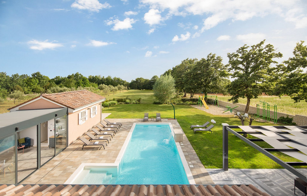 Située dans le village idyllique de Klarici en Istrie centrale et entourée d'une nature magnifique et intacte, la Villa Green Frame porte bien son nom. Tous les hôtes à la recherche d'une maison de vacances unique pour passer des vacances inoubliables avec leurs proches trouveront leur bonheur dans cette villa de luxe moderne.