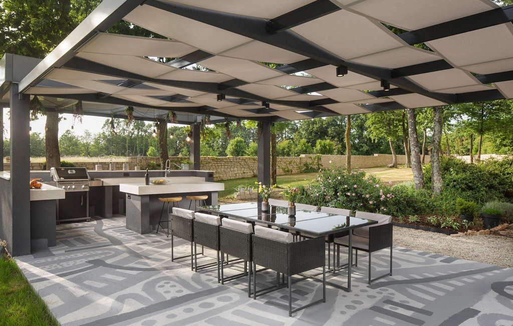 Il suffit de jeter un coup d'œil à la grande piscine turquoise au milieu du jardin vert bien entretenu pour se sentir accueilli dès l'arrivée. À l'extérieur, une cuisine extérieure et une salle à manger extérieure couverte sont à votre disposition - parfaites pour préparer de délicieux repas et les déguster ensemble sous le ciel étoilé. Les enfants passeront certainement beaucoup de temps à l'extérieur, car il y a une petite aire de jeux dans le jardin. Les adultes peuvent participer à l'amusement en plein air et se défouler dans l'espace fitness.