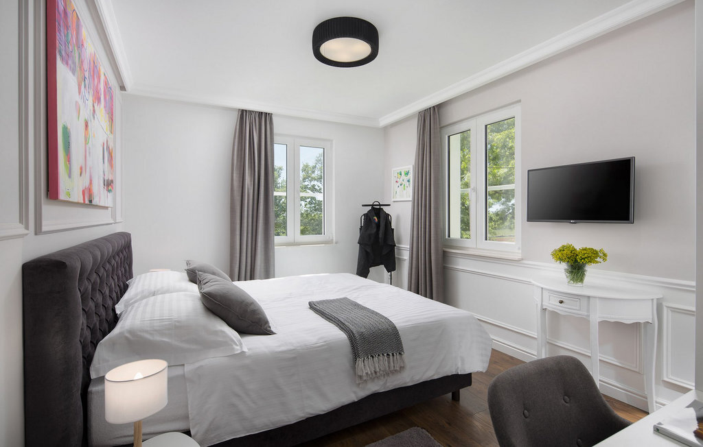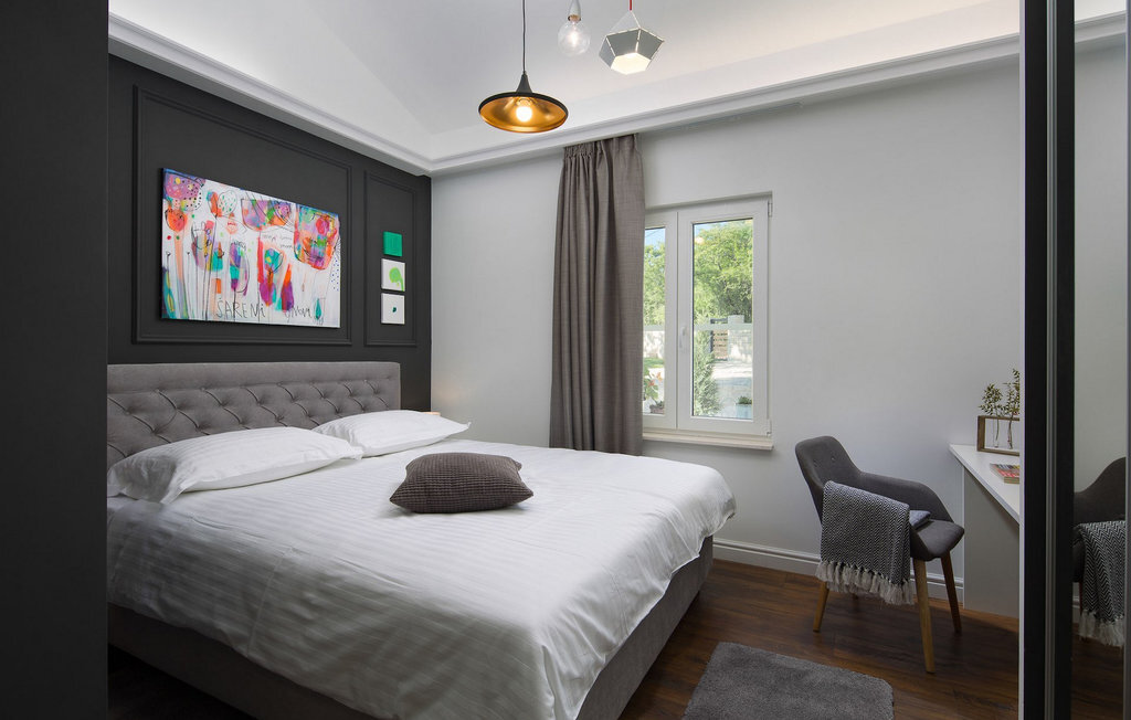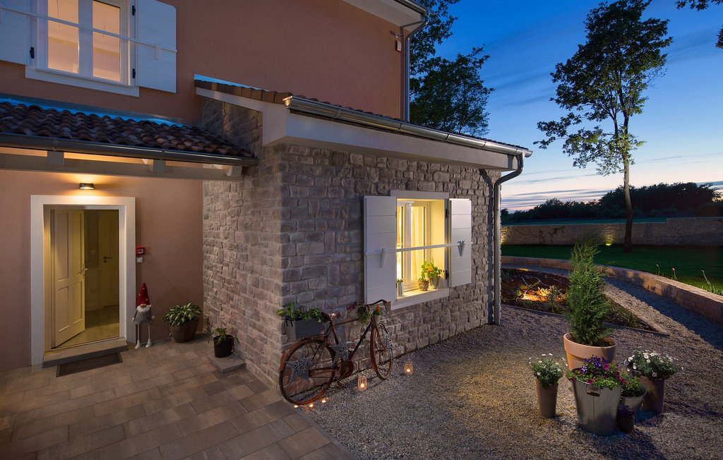 L'intérieur est tout aussi charmant que l'extérieur. C'est pourquoi la maison a été récompensée par un prix pour son design exceptionnel. Au rez-de-chaussée, aménagé avec style, vous trouverez une cuisine entièrement équipée avec coin repas, un salon lumineux avec accès direct à la terrasse ensoleillée, des toilettes séparées, un spa ainsi qu'une chambre à coucher avec lit double et salle de bain en suite. La villa dispose d'un réfrigérateur à vin - détendez-vous dans le confortable salon et profitez de couchers de soleil à couper le souffle avec une des meilleures boissons d'Istrie à la main, que vous pouvez obtenir au bar à un bon prix.