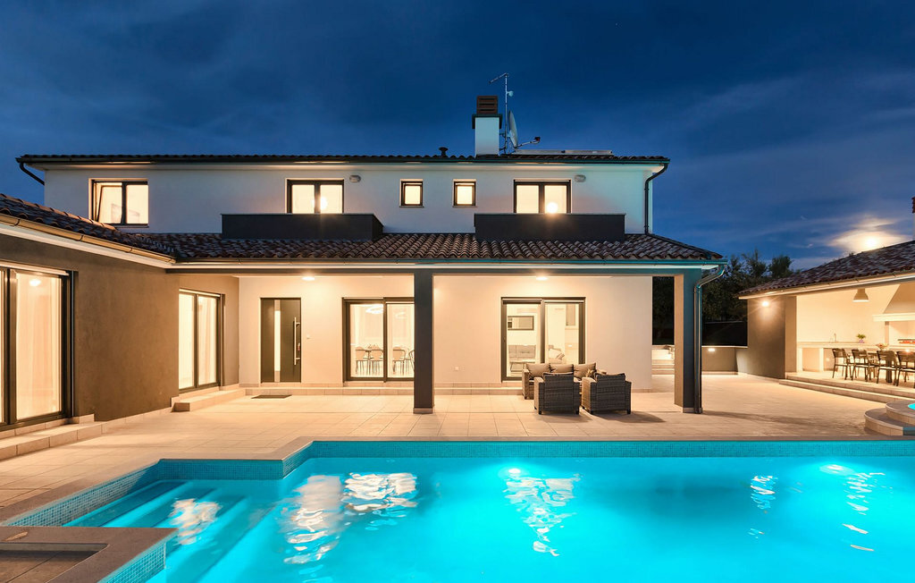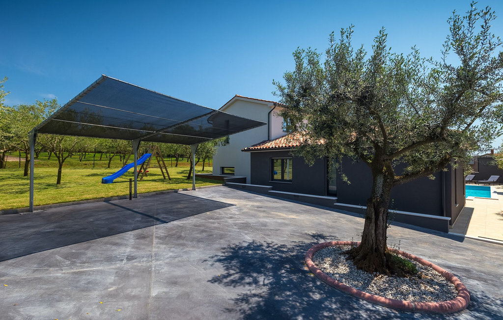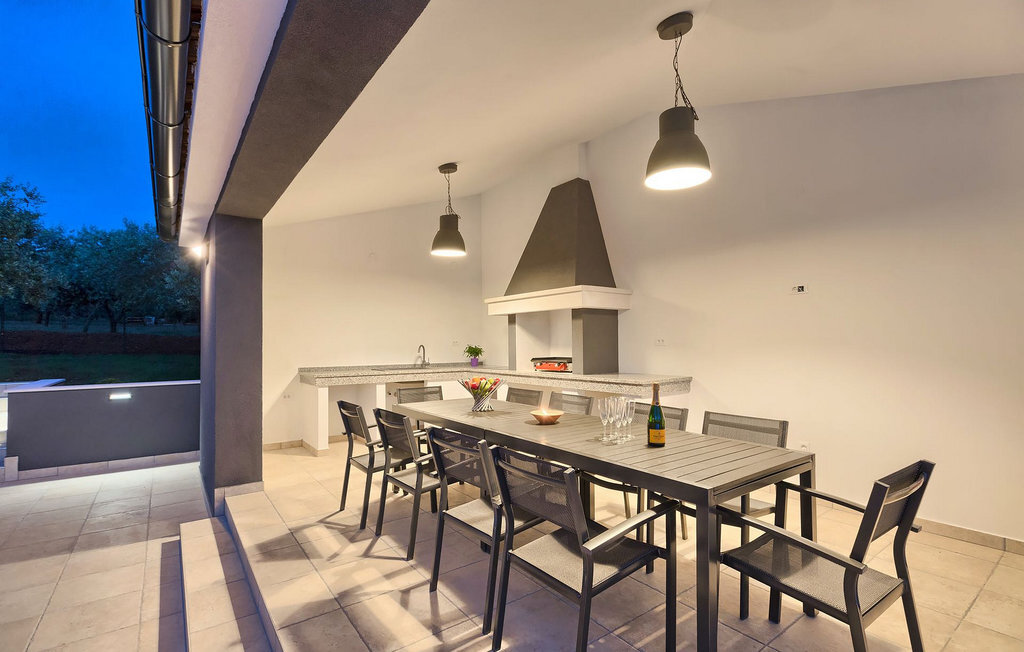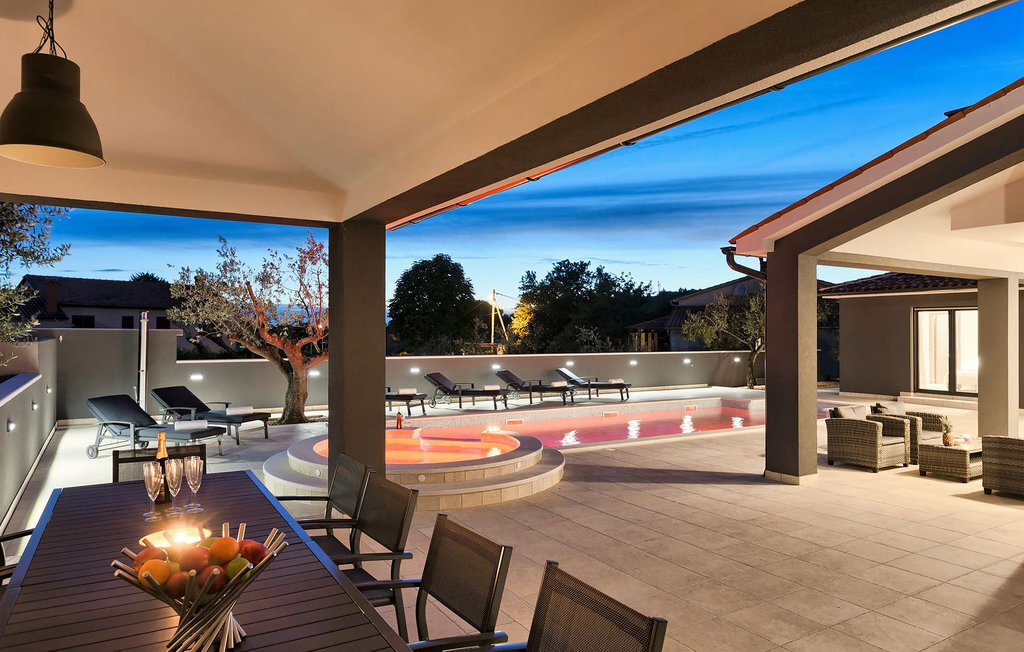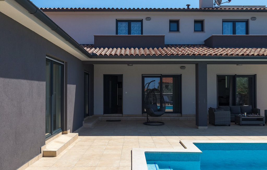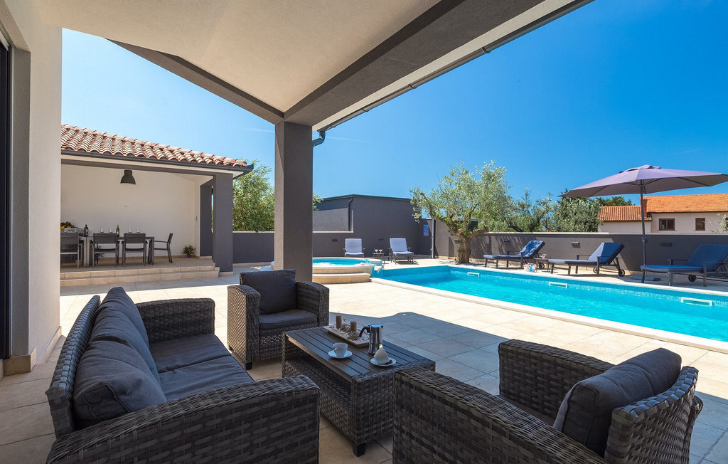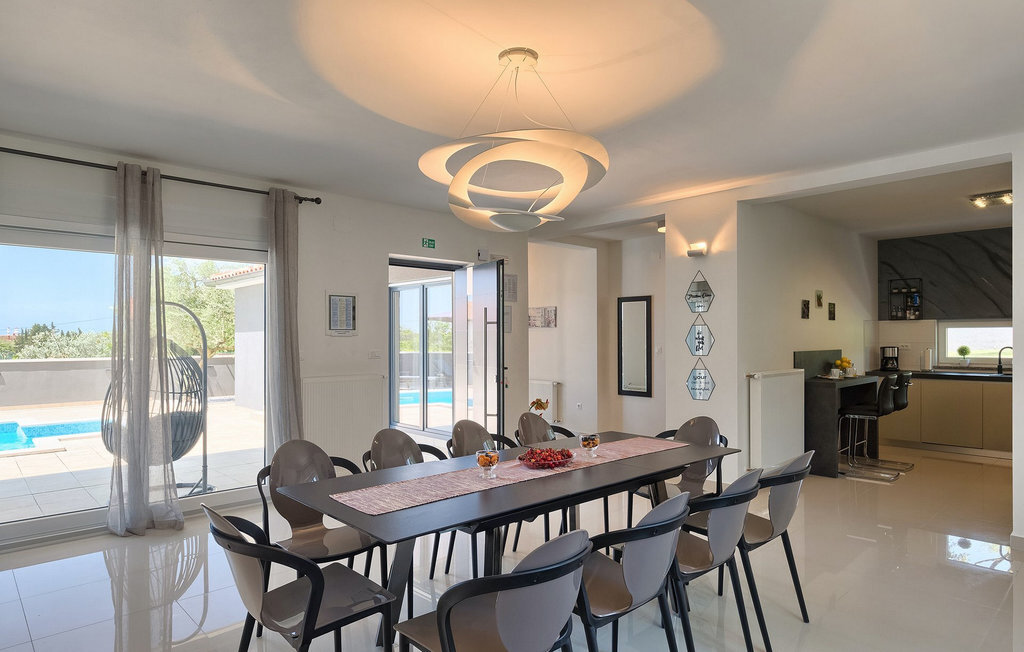 La Villa San Demich est une ravissante villa moderne qui vous offrira une expérience de vacances parfaite. La villa est située à Pula, à proximité de toutes les attractions historiques, des bars, des restaurants, etc. Elle est entourée d'un assez grand terrain - environ 1600 m2 - avec un grand jardin, une salle à manger en plein air, un jacuzzi extérieur et une piscine de 60m2. L'espace extérieur est assez grand pour accueillir 10 personnes. La villa dispose de 5 chambres, chacune avec de grands lits doubles, TV, climatisation et salle de bain en suite. Il y a également une sixième salle de bain. L'espace de vie comprend une cuisine moderne entièrement équipée, une salle à manger élégante et un salon confortable. Dans le salon se trouve un canapé-lit qui peut être utilisé comme couchage pour deux personnes. Depuis le salon, vous avez un accès direct à la piscine et au jardin, où vous pourrez passer des journées d'été inoubliables - soit dans la piscine, où vous pourrez vous rafraîchir du soleil, soit sur l'aire de jeux pour enfants, où vous pourrez passer de bons moments avec vos enfants, ou tout simplement à l'ombre de la cuisine extérieure, en lisant votre roman d'été préféré ou en savourant un délicieux repas. C'est à vous de choisir !