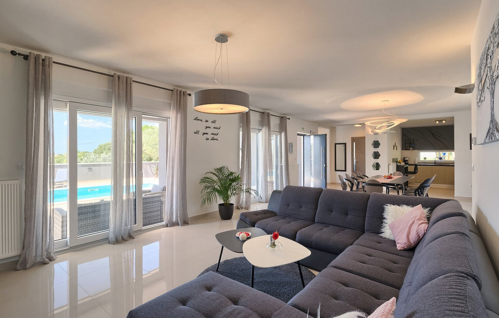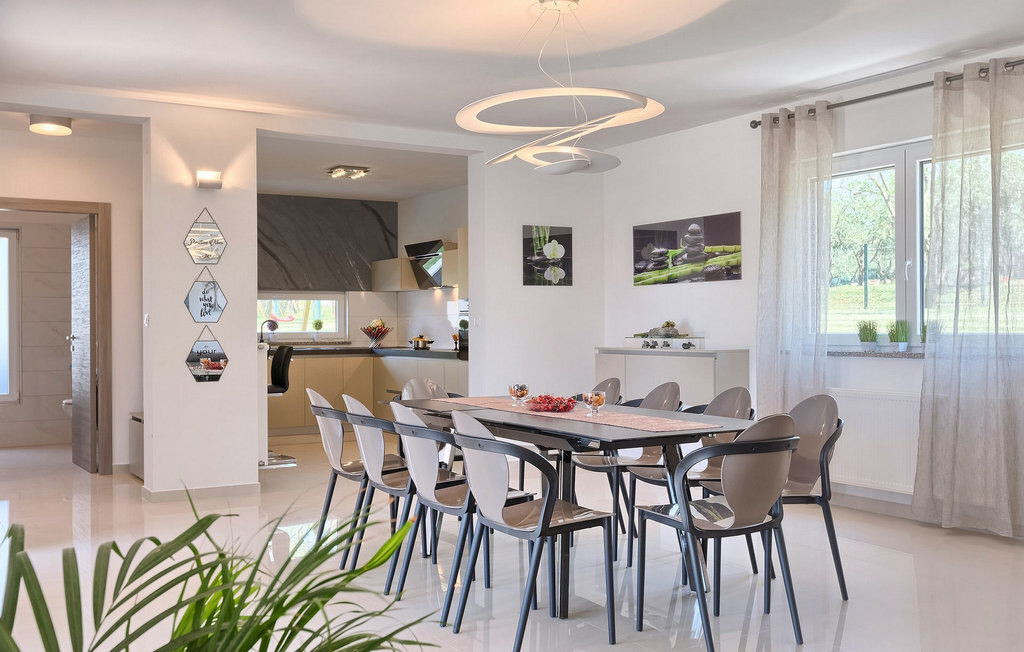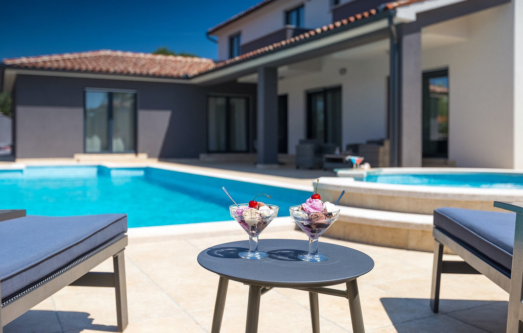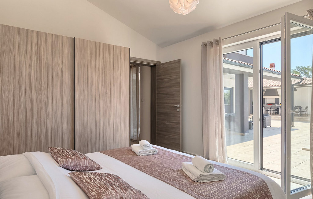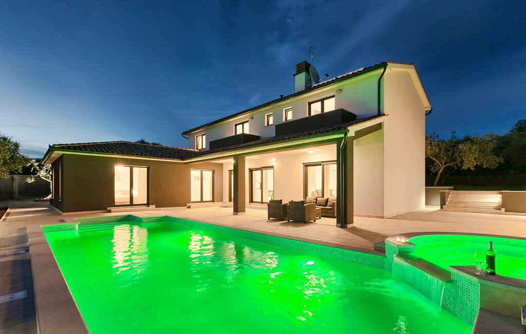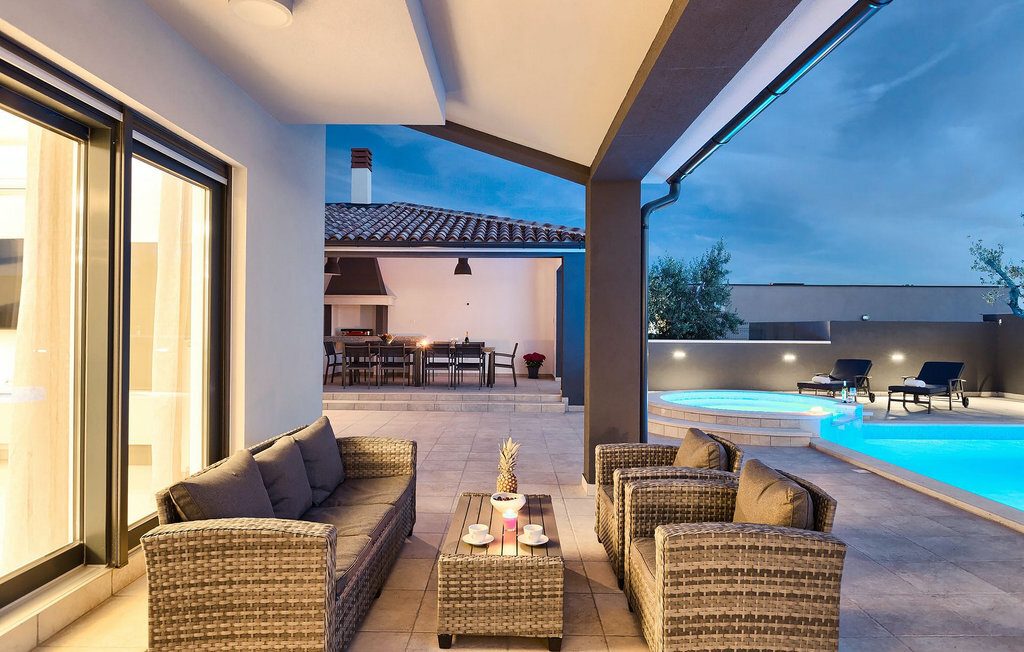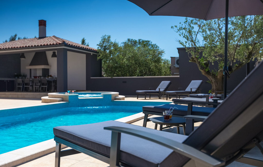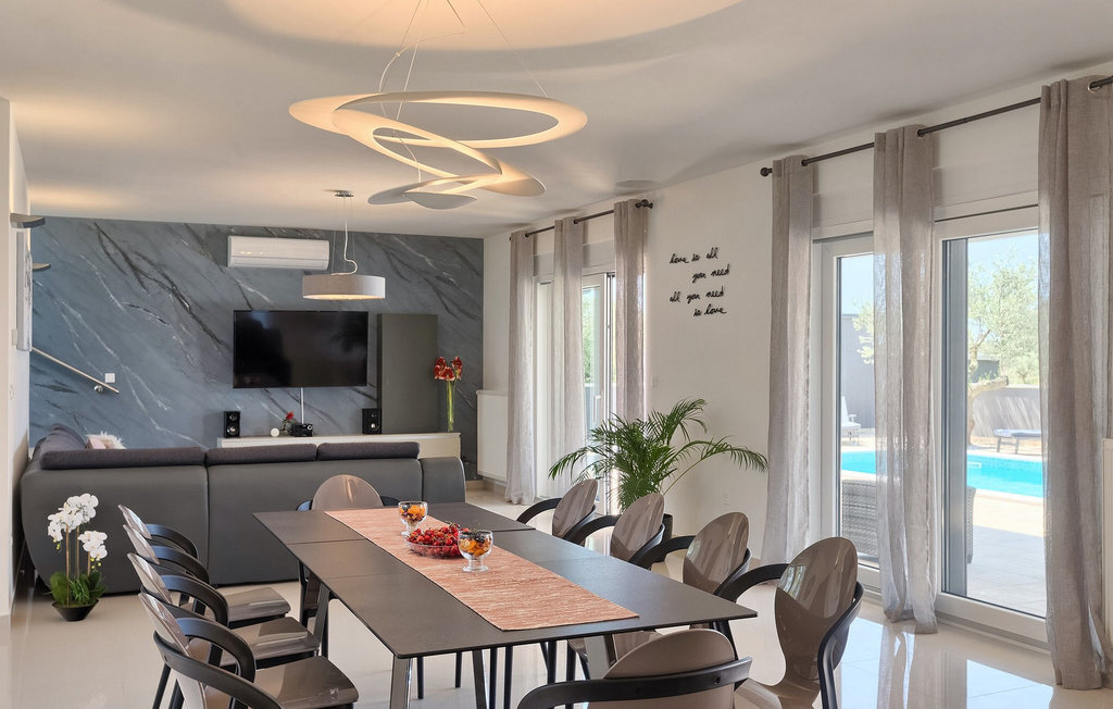 La Villa San Demich est une ravissante villa moderne qui vous offrira une expérience de vacances parfaite. La villa est située à Pula, à proximité de toutes les attractions historiques, des bars, des restaurants, etc. Elle est entourée d'un assez grand terrain - environ 1600 m2 - avec un grand jardin, une salle à manger en plein air, un jacuzzi extérieur et une piscine de 60m2. L'espace extérieur est assez grand pour accueillir 10 personnes. La villa dispose de 5 chambres, chacune avec de grands lits doubles, TV, climatisation et salle de bain en suite. Il y a également une sixième salle de bain. L'espace de vie comprend une cuisine moderne entièrement équipée, une salle à manger élégante et un salon confortable. Dans le salon se trouve un canapé-lit qui peut être utilisé comme couchage pour deux personnes. Depuis le salon, vous avez un accès direct à la piscine et au jardin, où vous pourrez passer des journées d'été inoubliables - soit dans la piscine, où vous pourrez vous rafraîchir du soleil, soit sur l'aire de jeux pour enfants, où vous pourrez passer de bons moments avec vos enfants, ou tout simplement à l'ombre de la cuisine extérieure, en lisant votre roman d'été préféré ou en savourant un délicieux repas. C'est à vous de choisir !