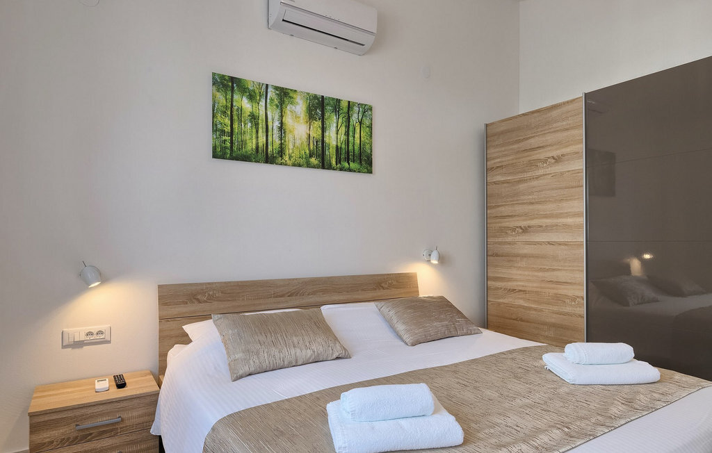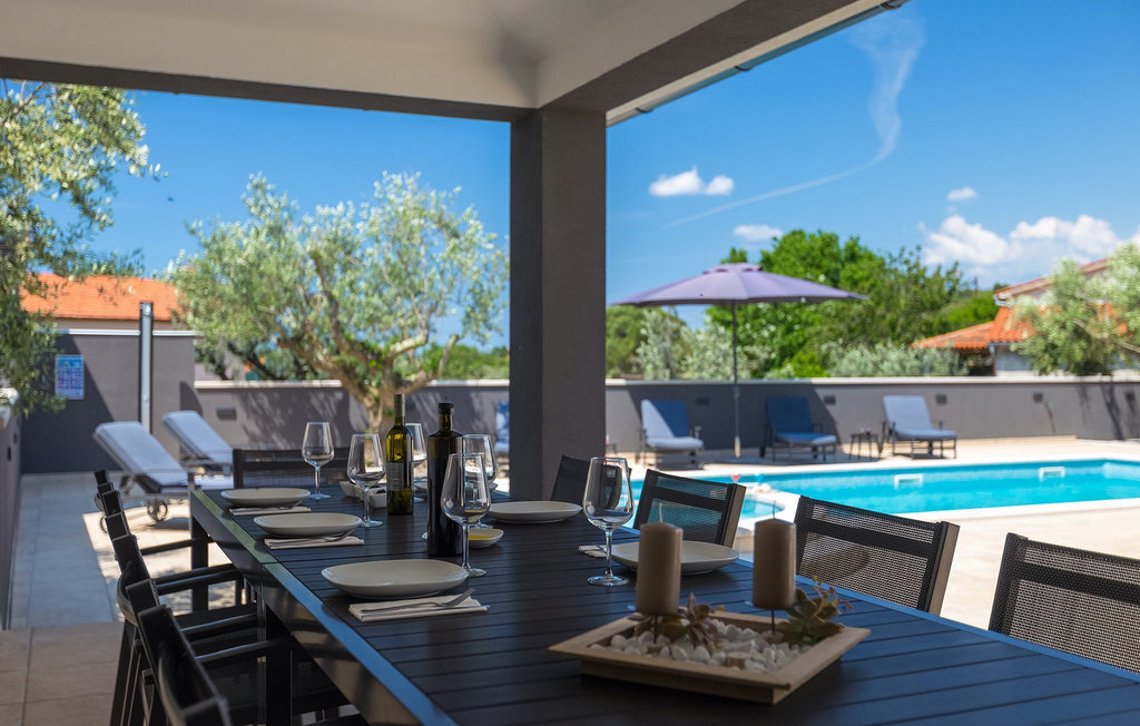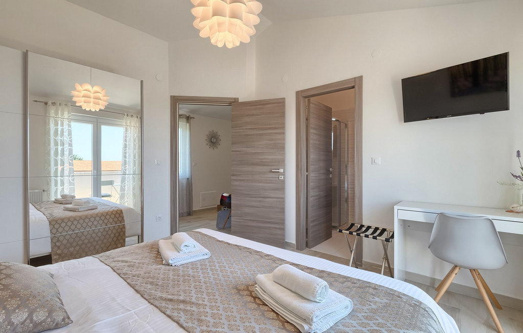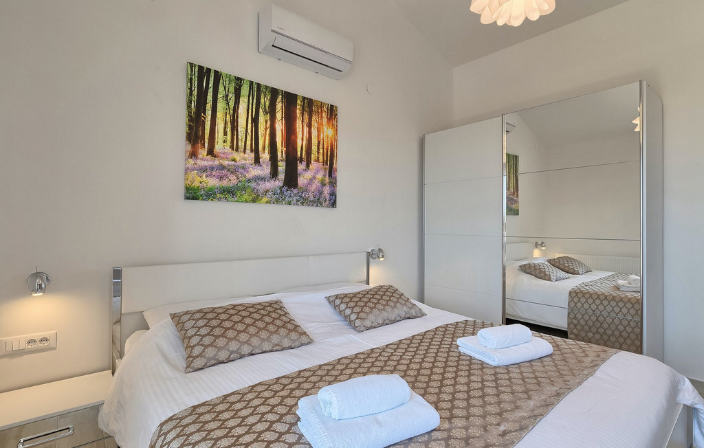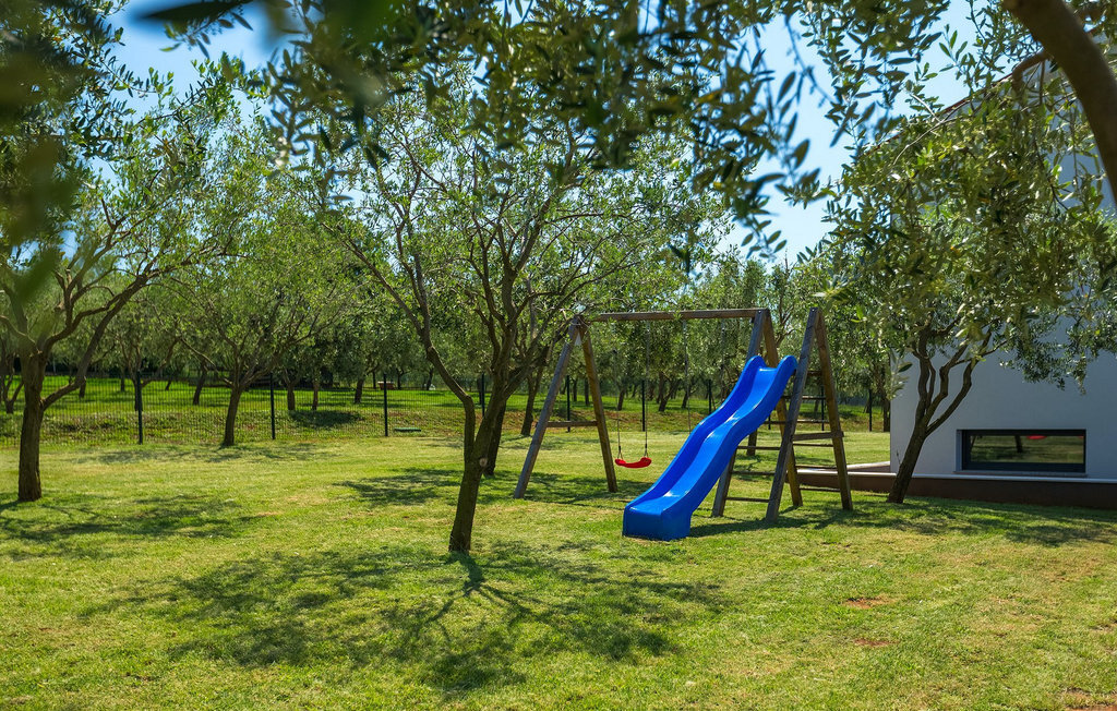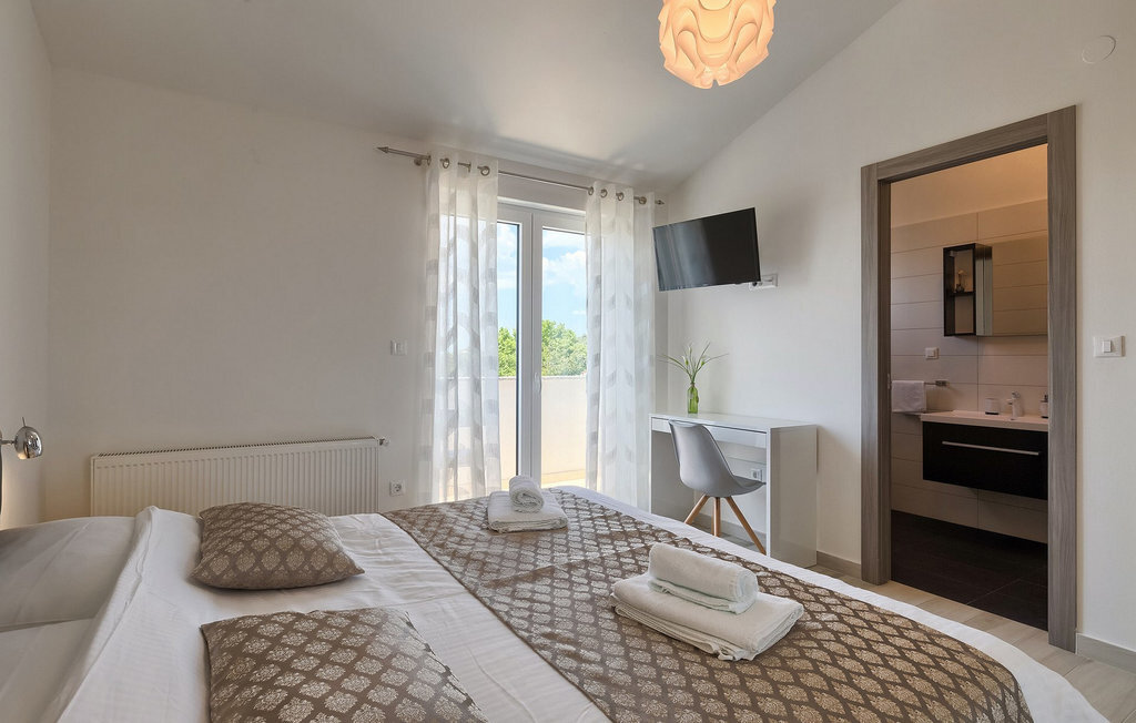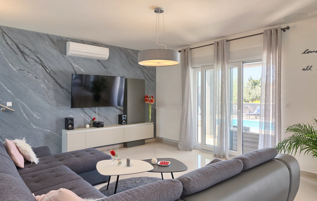La Villa San Demich est une ravissante villa moderne qui vous offrira une expérience de vacances parfaite. La villa est située à Pula, à proximité de toutes les attractions historiques, des bars, des restaurants, etc. Elle est entourée d'un assez grand terrain - environ 1600 m2 - avec un grand jardin, une salle à manger en plein air, un jacuzzi extérieur et une piscine de 60m2. L'espace extérieur est assez grand pour accueillir 10 personnes. La villa dispose de 5 chambres, chacune avec de grands lits doubles, TV, climatisation et salle de bain en suite. Il y a également une sixième salle de bain. L'espace de vie comprend une cuisine moderne entièrement équipée, une salle à manger élégante et un salon confortable. Dans le salon se trouve un canapé-lit qui peut être utilisé comme couchage pour deux personnes. Depuis le salon, vous avez un accès direct à la piscine et au jardin, où vous pourrez passer des journées d'été inoubliables - soit dans la piscine, où vous pourrez vous rafraîchir du soleil, soit sur l'aire de jeux pour enfants, où vous pourrez passer de bons moments avec vos enfants, ou tout simplement à l'ombre de la cuisine extérieure, en lisant votre roman d'été préféré ou en savourant un délicieux repas. C'est à vous de choisir !