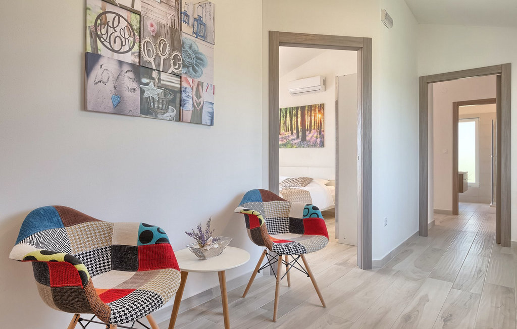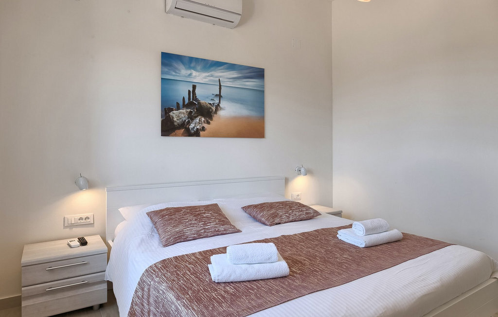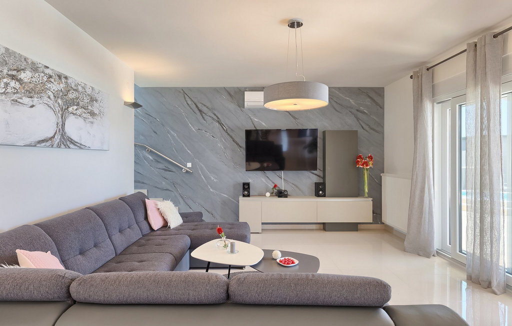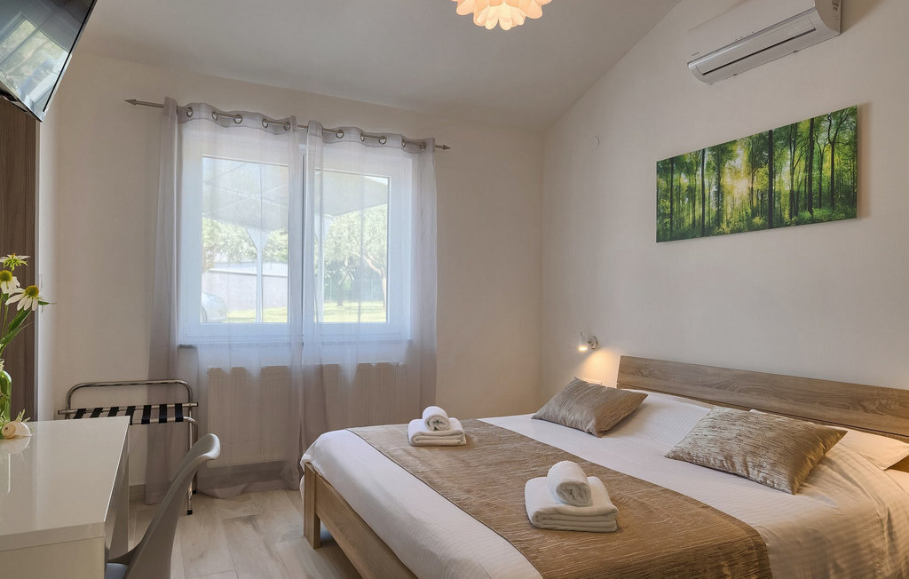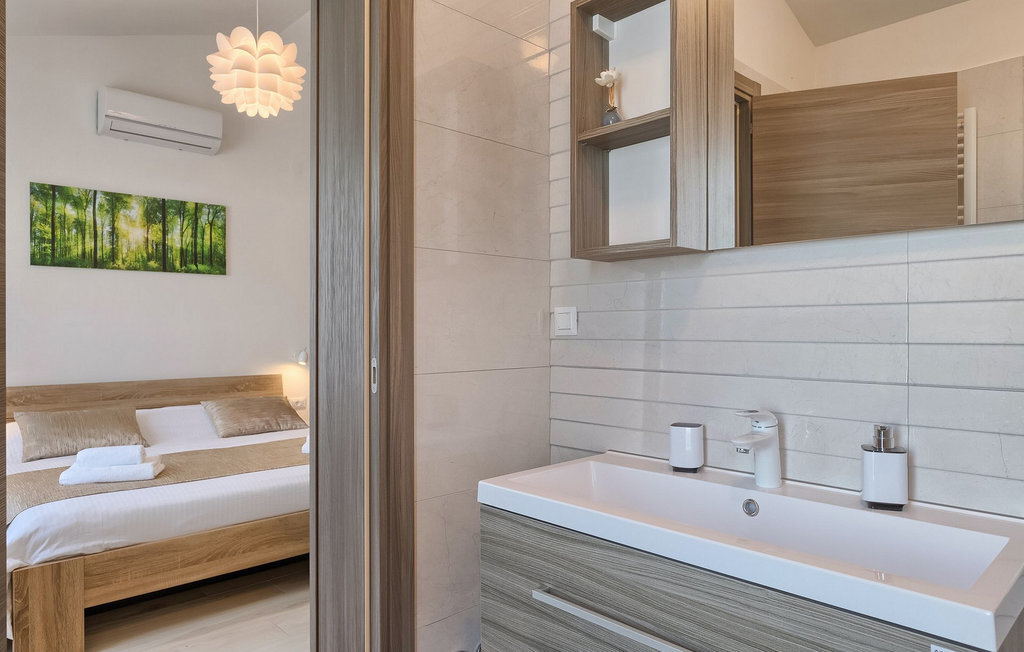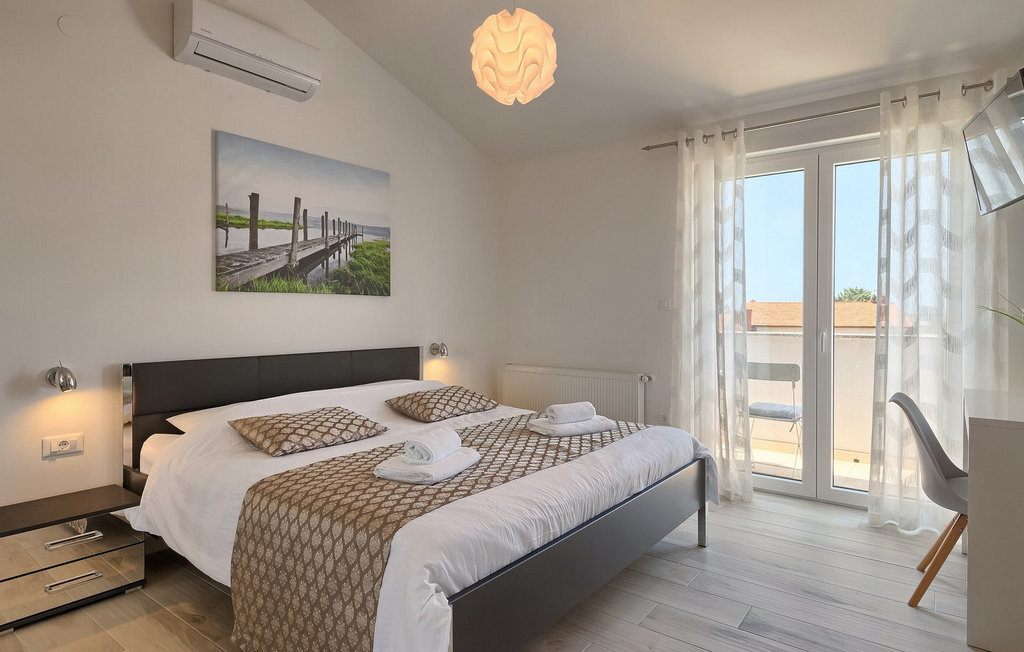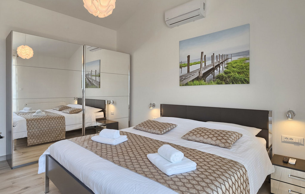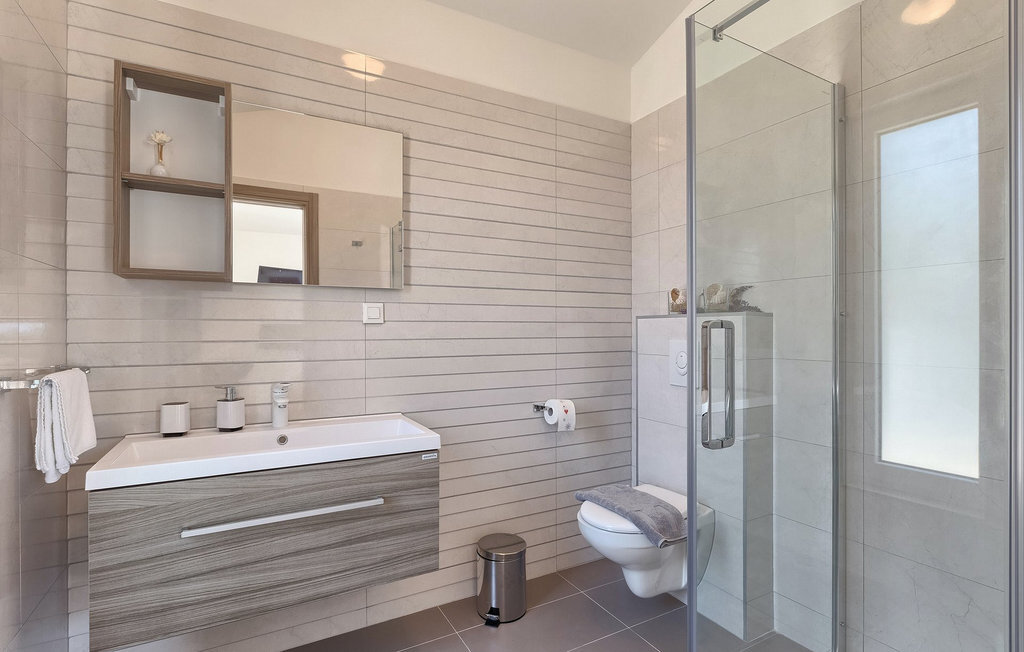 La Villa San Demich est une ravissante villa moderne qui vous offrira une expérience de vacances parfaite. La villa est située à Pula, à proximité de toutes les attractions historiques, des bars, des restaurants, etc. Elle est entourée d'un assez grand terrain - environ 1600 m2 - avec un grand jardin, une salle à manger en plein air, un jacuzzi extérieur et une piscine de 60m2. L'espace extérieur est assez grand pour accueillir 10 personnes. La villa dispose de 5 chambres, chacune avec de grands lits doubles, TV, climatisation et salle de bain en suite. Il y a également une sixième salle de bain. L'espace de vie comprend une cuisine moderne entièrement équipée, une salle à manger élégante et un salon confortable. Dans le salon se trouve un canapé-lit qui peut être utilisé comme couchage pour deux personnes. Depuis le salon, vous avez un accès direct à la piscine et au jardin, où vous pourrez passer des journées d'été inoubliables - soit dans la piscine, où vous pourrez vous rafraîchir du soleil, soit sur l'aire de jeux pour enfants, où vous pourrez passer de bons moments avec vos enfants, ou tout simplement à l'ombre de la cuisine extérieure, en lisant votre roman d'été préféré ou en savourant un délicieux repas. C'est à vous de choisir !