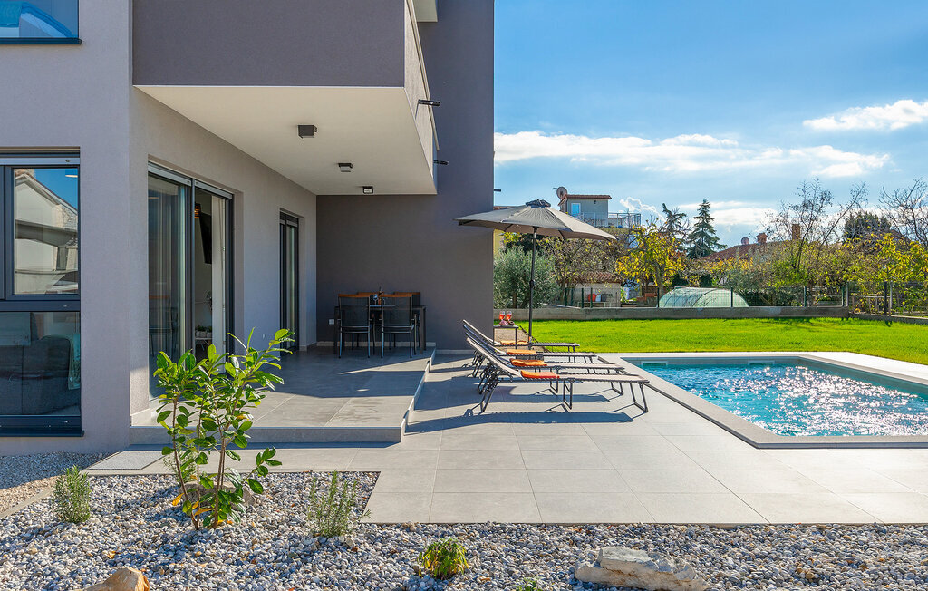 Le point fort de la villa est la terrasse du premier étage, qui offre une vue imprenable sur le paysage environnant. Imaginez que vous vous réveillez avec un lever de soleil à couper le souffle. Ce cadre idyllique crée des souvenirs durables et vous permet de profiter de la tranquillité de la région d'Istrie. La villa dispose d'une piscine privée qui vous invite à une baignade rafraîchissante tout au long de la journée.