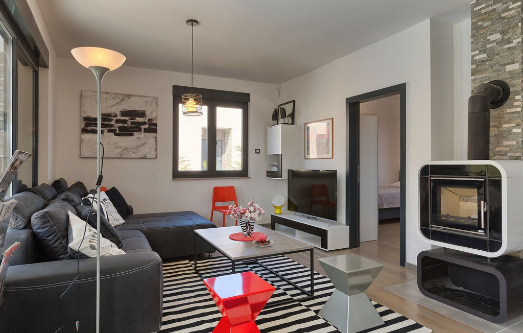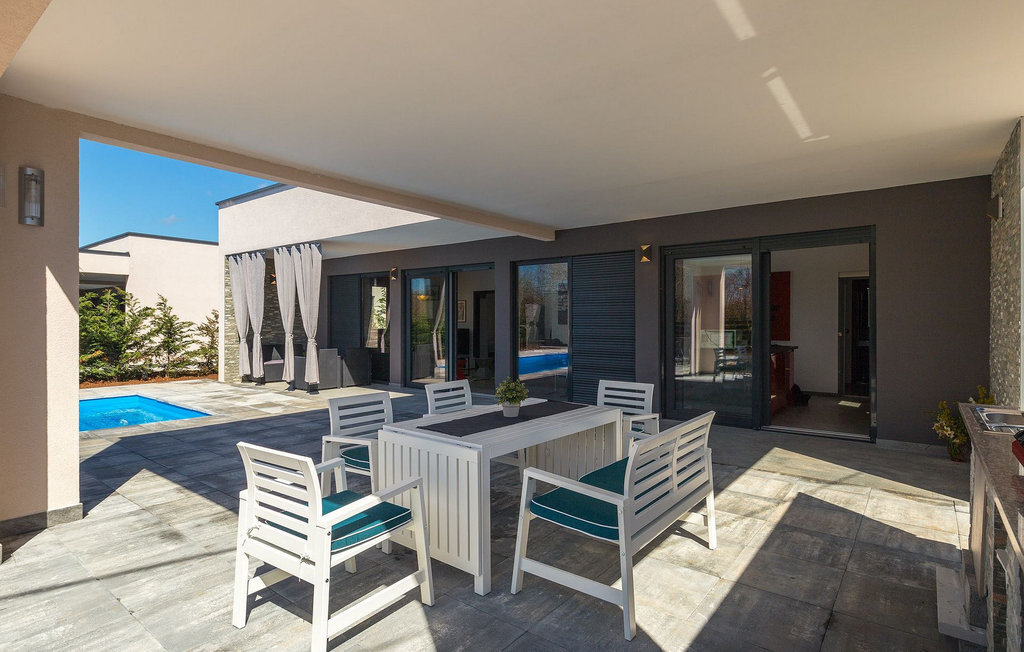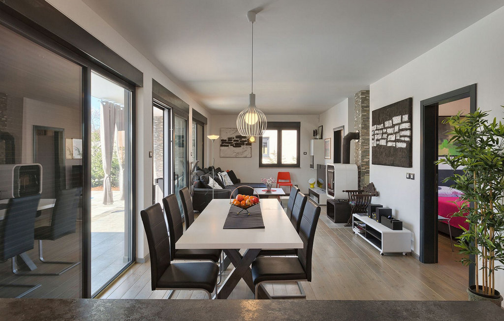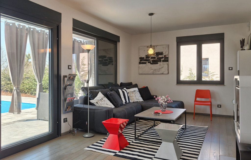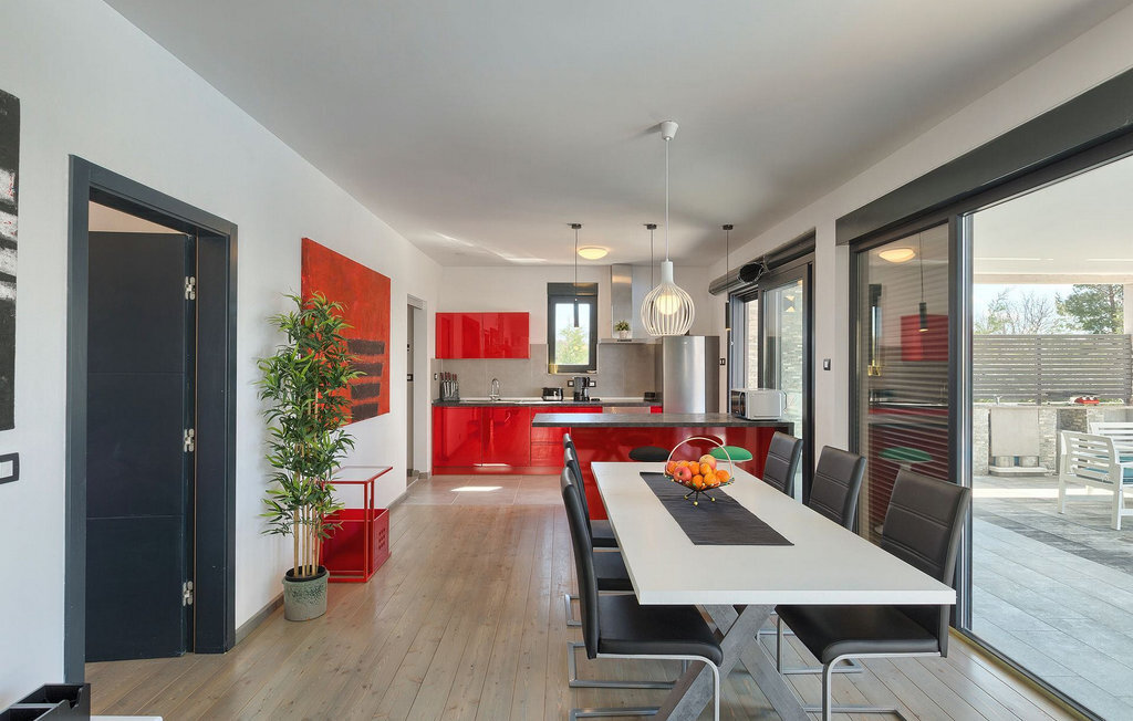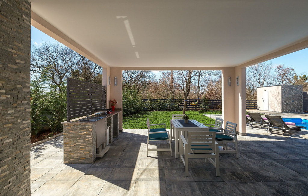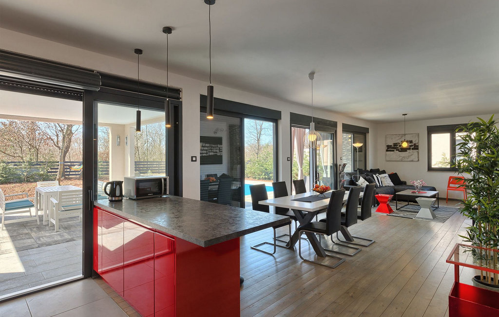 La villa Sorella 2 est située dans un village tranquille d'Istrie et est un logement idéal pour 4 personnes dans 90 mètres carrés. La villa est meublée simplement mais avec style et se compose de 2 chambres à coucher et de 2 salles de bains. Une chambre à coucher dispose d'un lit double et d'une salle de bain privée. La deuxième chambre a deux lits simples. Le grand canapé-lit dans le salon permet d'accueillir encore 2 personnes supplémentaires. Le salon est inondé de lumière grâce à la grande surface vitrée et a également un accès direct à la piscine dans le jardin de la villa. Le salon est relié à la salle à manger et à la cuisine entièrement équipée. La cuisine n'est toutefois pas le seul endroit où vous pouvez préparer vos repas ; un barbecue électrique ainsi qu'un évier et de la vaisselle sont à votre disposition sur la spacieuse terrasse couverte devant la villa. Un barbecue au charbon de bois est également à votre disposition. Si vous passez vos vacances avec des enfants, outre la piscine privée, ils pourront s'amuser au badminton ou sur le toboggan et la balançoire. Les deux villas, Sorella 1 et Sorella 2, sont situées dans un village tranquille d'Istrie, qui offre un mélange parfait de calme et de détente, loin de l'agitation de la ville. Pourtant, les destinations de vacances connues sur la côte, comme Pula et Rovinj, sont facilement accessibles. L'Istrie centrale est une région magnifique avec de nombreuses petites villes médiévales dotées de bons restaurants, de cafés, de vignobles et de boutiques. Svetvinenat et Vodnjan sont deux petites villes de ce type, situées à moins de 10 km de la villa. Pendant que vous passez vos vacances dans le calme de cette localité de l'Istrie centrale, vous pouvez profiter de l'occasion pour visiter Faana et les belles plages environnantes ou de la possibilité de vous rendre en bateau dans l'un des parcs nationaux de Croatie - Brijuni.