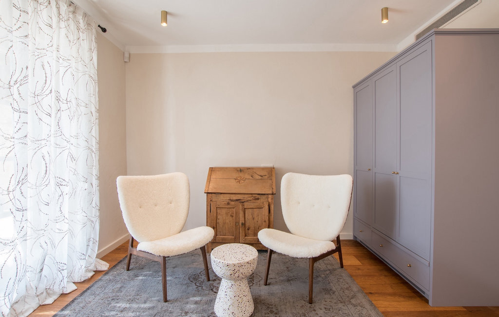 Dans la maison d'hôtes, qui peut accueillir jusqu'à 6 personnes, il y a encore 3 chambres et 3 salles de bains au rez-de-chaussée ainsi qu'un salon luxueusement aménagé, une salle à manger et une cuisine entièrement équipée au premier étage. Ici, vous trouverez encore deux terrasses qui offrent une vue magnifique sur les environs étonnants.