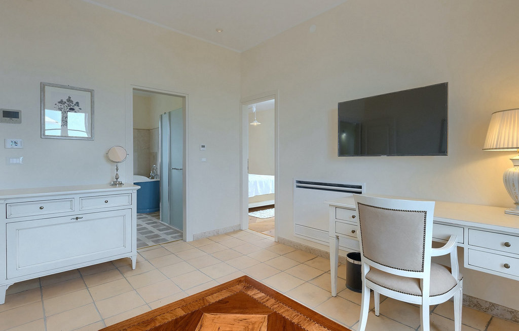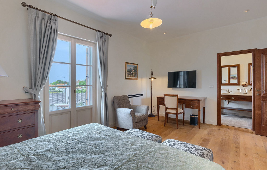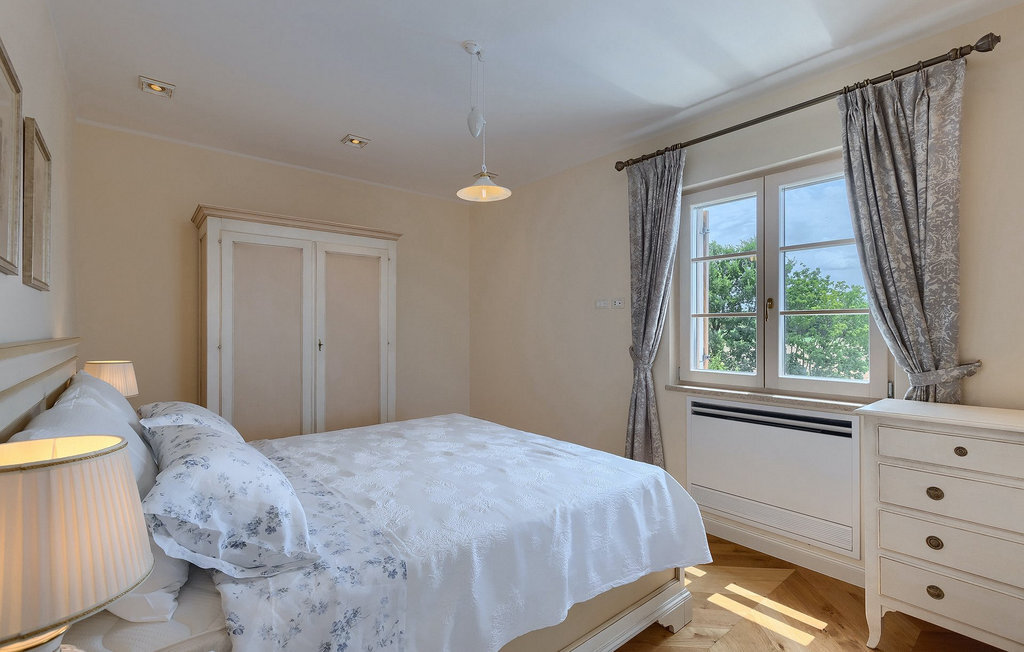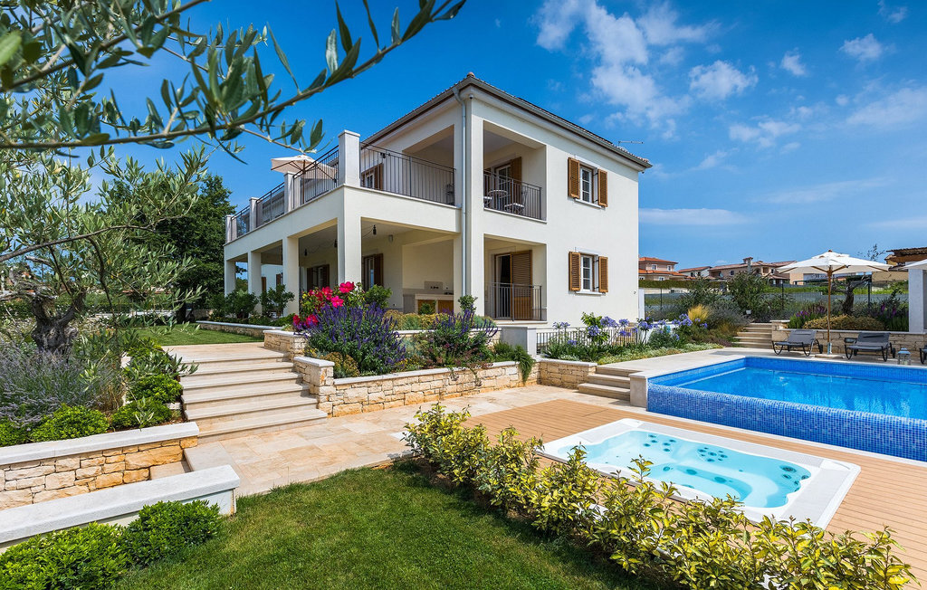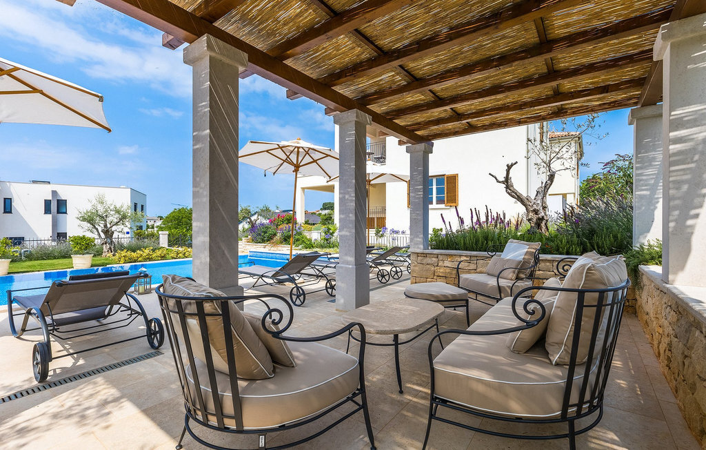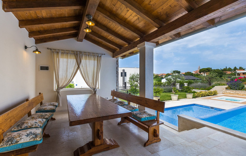 La belle villa Terrarossa Katelir est un bon choix pour des vacances reposantes en famille ou entre amis en Istrie. La villa est située dans un petit village, Kastelir, à seulement 10 kilomètres du joyau touristique qu'est Porec. Lorsque vous verrez cette imposante construction, vous ne resterez certainement pas indifférent. La villa est entourée d'un jardin de style méditerranéen soigneusement aménagé avec de la végétation locale. Outre la terrasse, il y a un jacuzzi extérieur et deux piscines. La plus grande fait 55 mètres carrés et la plus petite 12. Les chaises longues et les parasols près de la piscine sont un bon choix si vous avez besoin de calme et de détente ou si vous voulez simplement savourer une boisson fraîche avec votre livre préféré. À côté de la terrasse se trouve une salle à manger extérieure couverte. Il y a également une cuisine extérieure avec cheminée où vous pourrez préparer un délicieux repas. La villa elle-même est construite en matériaux naturels et peut accueillir un total de 10 hôtes dans quatre chambres. Au rez-de-chaussée de la villa se trouvent une chambre et une salle de bain en suite, des toilettes communes, un espace de vie ouvert avec une salle à manger. Au premier étage se trouvent les trois chambres restantes, chacune avec une salle de bain en suite. Dans chacune des deux suites juniors, il y a un canapé-lit. La terrasse du premier étage offre une vue magnifique sur les vignobles et les oliveraies qui font la renommée de ce petit village. Tous ceux qui veulent rester actifs même en vacances passeront certainement une partie de leur temps dans la cave. Il y a une salle de fitness et un sauna ainsi qu'une cuisine avec cheminée et table à manger. Lors de la décoration de la villa de luxe Terrasossa Katelir, une grande attention a été portée aux détails, aux matériaux naturels et au travail manuel. Choisir cette villa pour des vacances parfaites est la bonne décision et vous voudrez certainement y revenir!La villa Terrarossa Katelir se trouve dans la ville du même nom, Katelir, qui n'est qu'à 10 kilomètres de Porec. Kastelir se trouve sur la côte ouest de l'Istrie. Le petit village est entouré d'oliveraies et de vignobles, il n'est donc pas surprenant que vous puissiez y déguster, mais aussi acheter, de l'huile d'olive et du vin très savoureux et de grande qualité. De nombreux habitants travaillent dans l'agriculture, ce qui se répercute naturellement sur l'excellente offre gastronomique. Visitez l'un des restaurants locaux et choisissez l'un des plats traditionnels d'Istrie, nous sommes sûrs que vous vous régalerez !