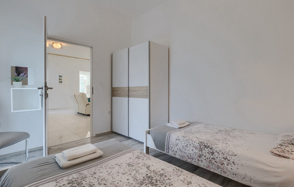 Au premier étage se trouvent les quatre autres chambres et trois salles de bains. Trois chambres sont équipées d'un lit double (dans deux d'entre elles, un lit supplémentaire est disponible), tandis que dans une chambre, il y a deux lits simples.
