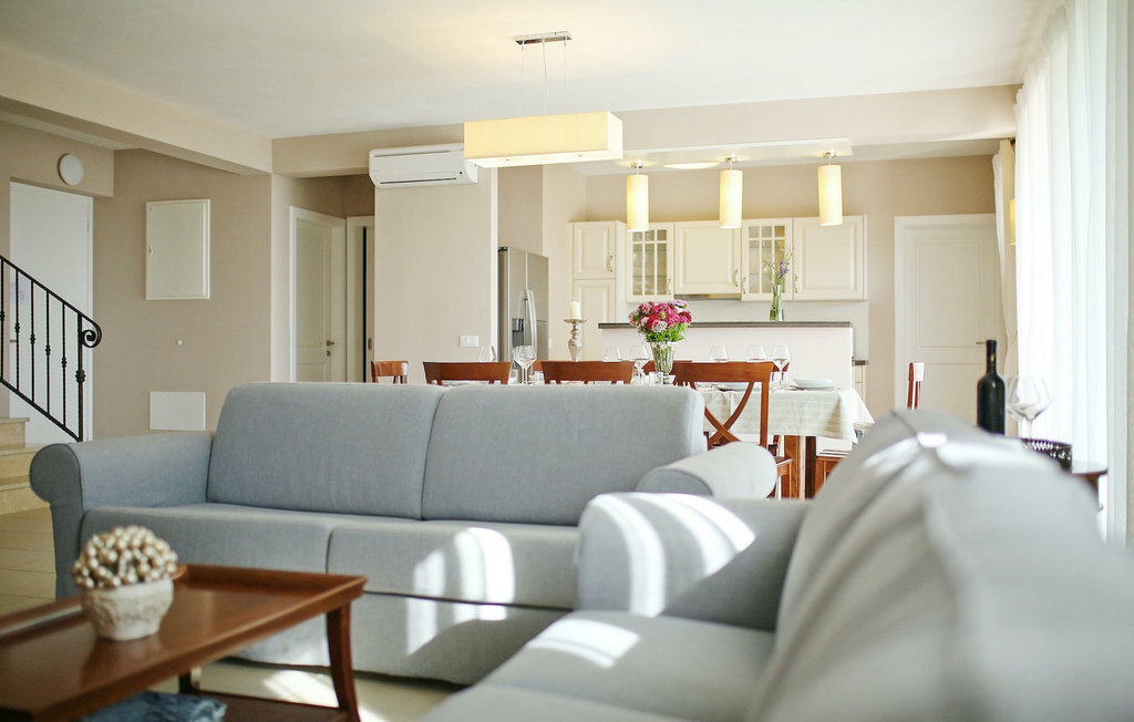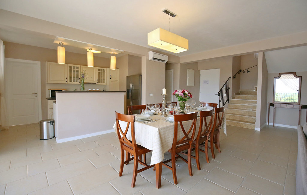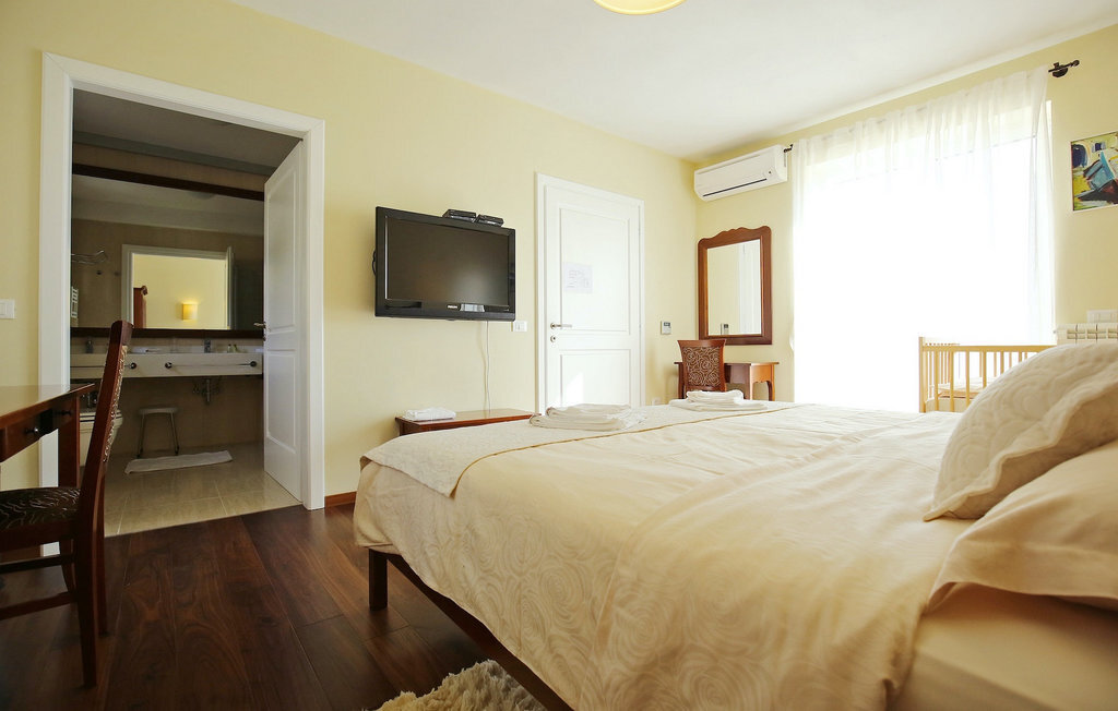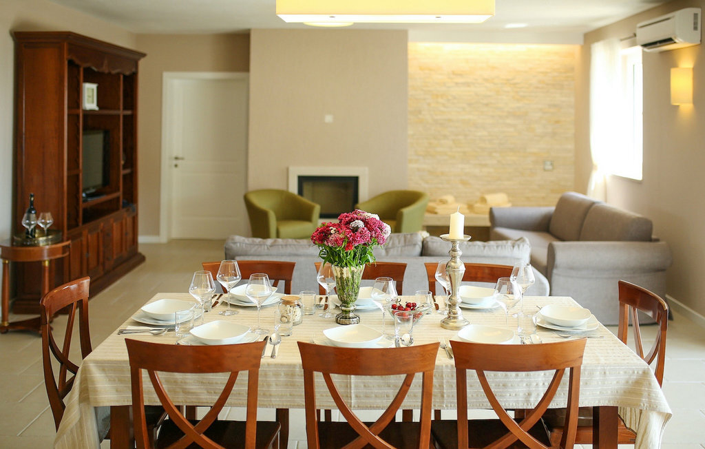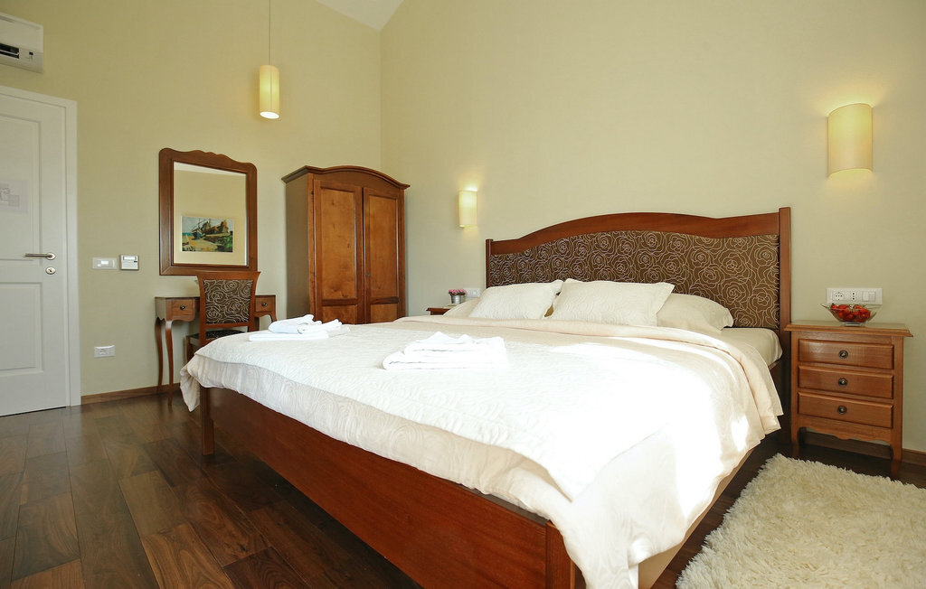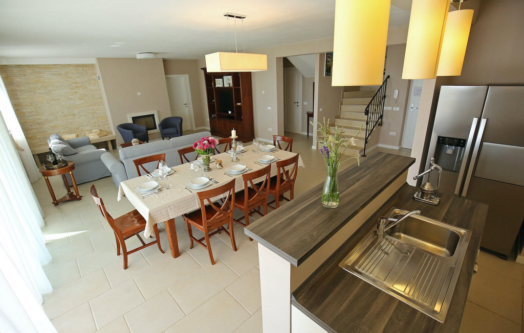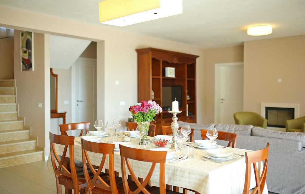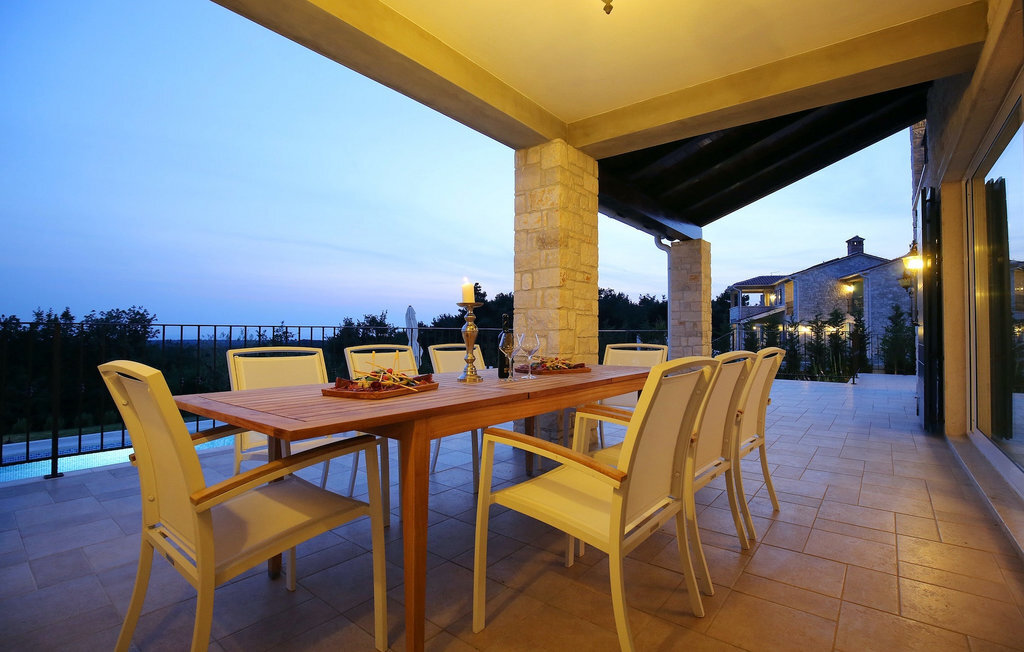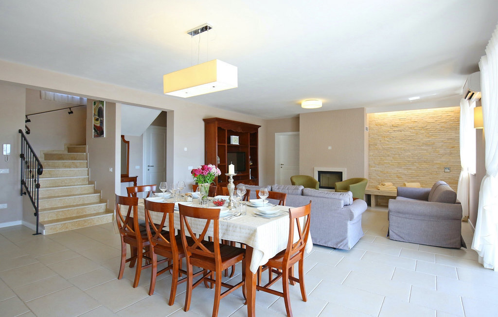La villa Babudri se trouve dans le petit hameau de Babudri, à proximité de Visnjan. Avec une surface habitable totale de 220 mètres carrés, elle peut accueillir jusqu'à 10 personnes et son intérieur est aménagé avec soin. La villa de deux étages est aménagée dans un design rustique et donne un sentiment de convivialité et de confort. Le rez-de-chaussée se compose d'un salon spacieux avec télévision, d'un coin repas et d'une cuisine entièrement équipée. Au rez-de-chaussée, vous trouverez une chambre à coucher avec salle de bain privée et un espace bien-être avec sauna et chaises longues où vous pourrez vous détendre. À l'étage, vous trouverez trois chambres avec salle de bains privative et une terrasse où vous pourrez profiter de l'intimité et de la vue magnifique sur les environs. Si vous souhaitez passer vos vacances au soleil, une grande piscine privée se trouve devant la villa, dans laquelle vous pourrez vous rafraîchir lors des chaudes journées d'été. À quelques pas de là se trouve une terrasse couverte où vous pourrez préparer de délicieux repas pour votre famille et vos amis. Alors ne manquez pas cette occasion et réservez la Villa Babudri dès maintenant pour passer les meilleurs moments en Croatie !