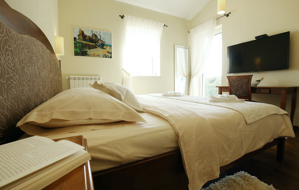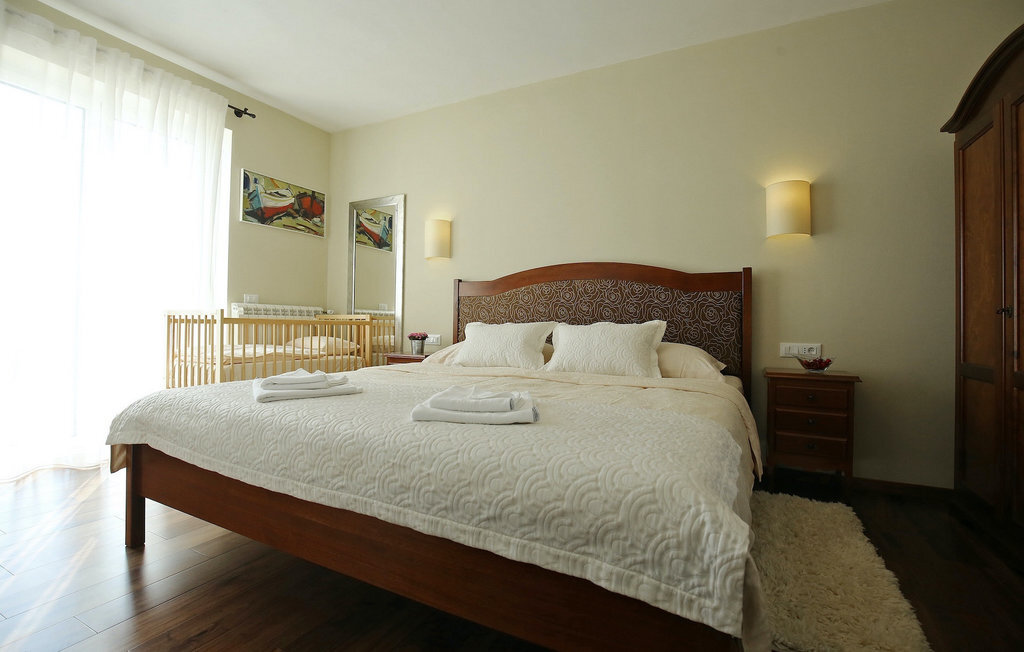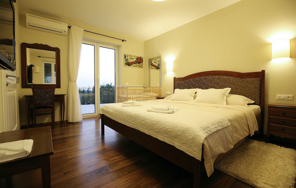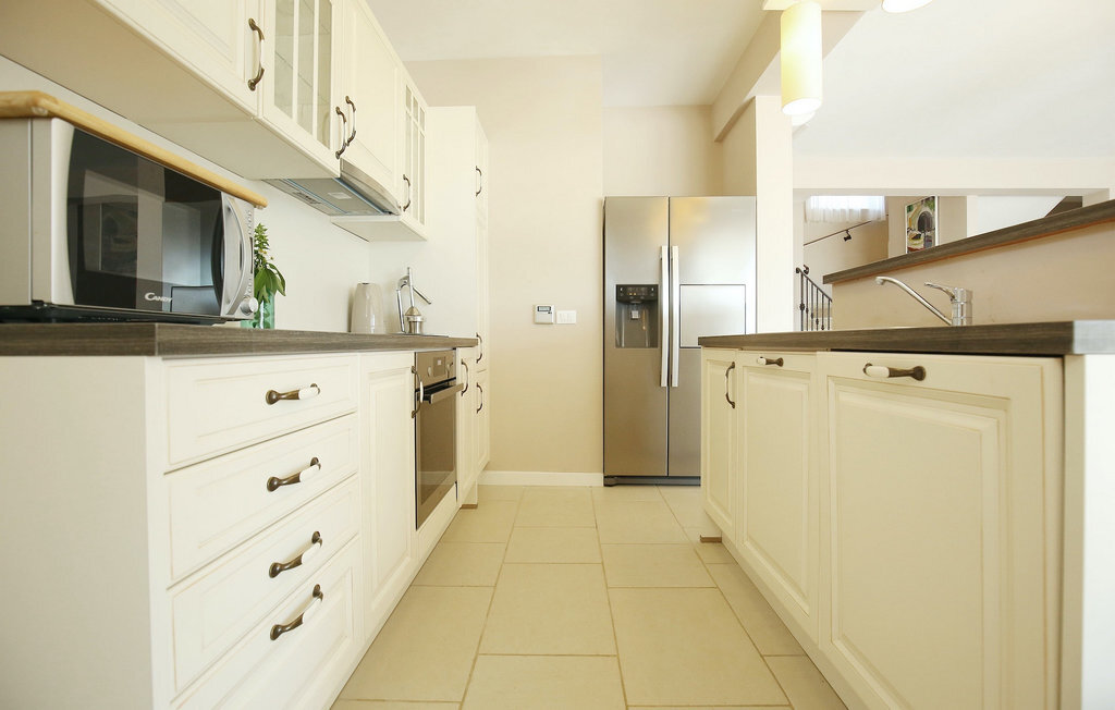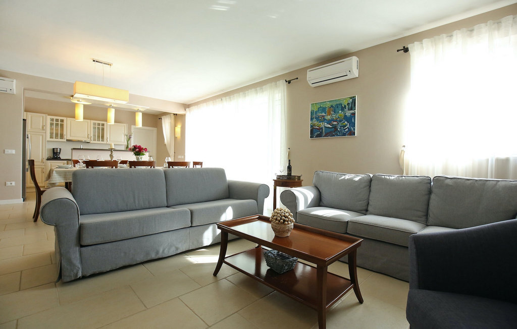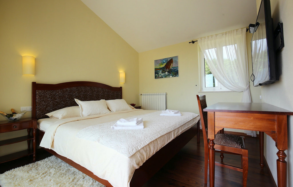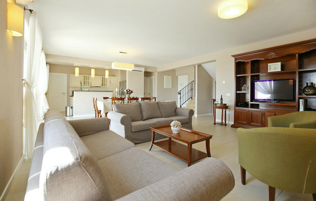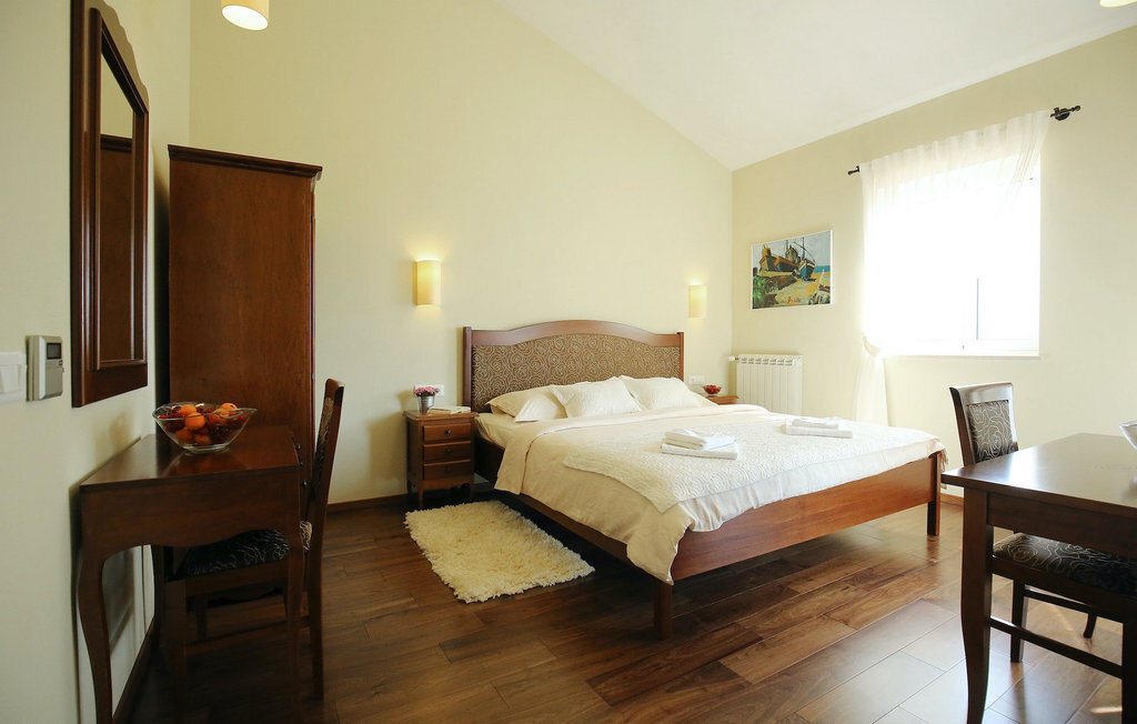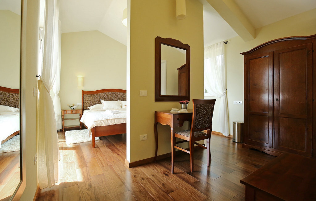 La villa Babudri se trouve dans le petit hameau de Babudri, à proximité de Visnjan. Avec une surface habitable totale de 220 mètres carrés, elle peut accueillir jusqu'à 10 personnes et son intérieur est aménagé avec soin. La villa de deux étages est aménagée dans un design rustique et donne un sentiment de convivialité et de confort. Le rez-de-chaussée se compose d'un salon spacieux avec télévision, d'un coin repas et d'une cuisine entièrement équipée. Au rez-de-chaussée, vous trouverez une chambre à coucher avec salle de bain privée et un espace bien-être avec sauna et chaises longues où vous pourrez vous détendre. À l'étage, vous trouverez trois chambres avec salle de bains privative et une terrasse où vous pourrez profiter de l'intimité et de la vue magnifique sur les environs. Si vous souhaitez passer vos vacances au soleil, une grande piscine privée se trouve devant la villa, dans laquelle vous pourrez vous rafraîchir lors des chaudes journées d'été. À quelques pas de là se trouve une terrasse couverte où vous pourrez préparer de délicieux repas pour votre famille et vos amis. Alors ne manquez pas cette occasion et réservez la Villa Babudri dès maintenant pour passer les meilleurs moments en Croatie !