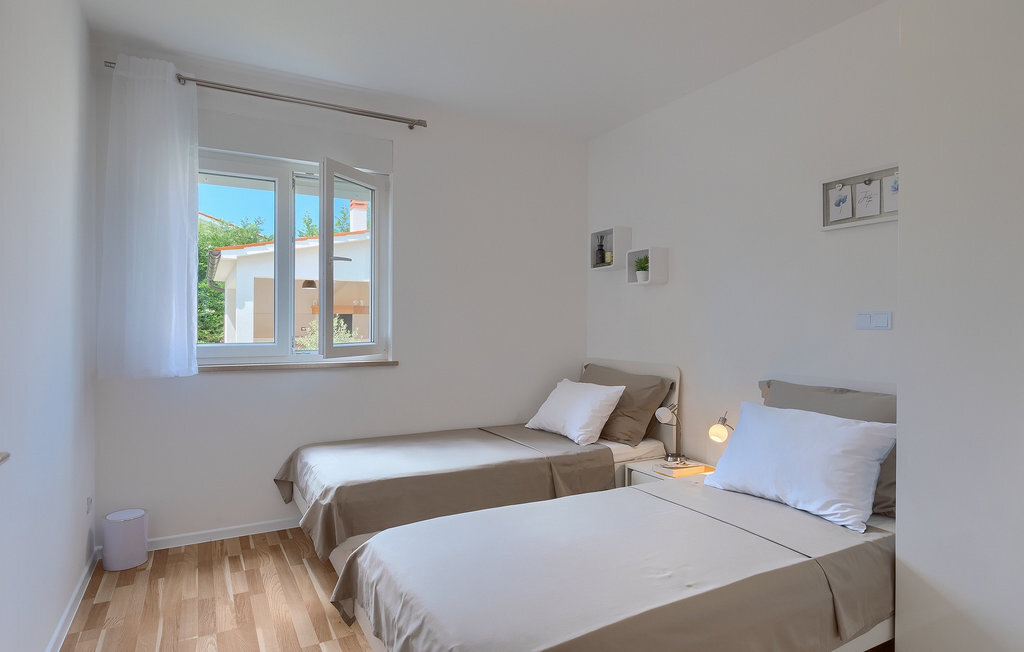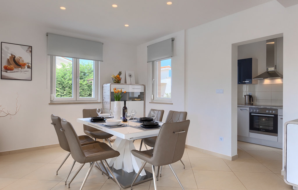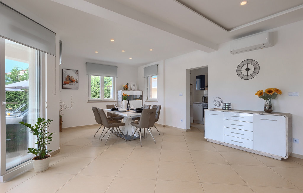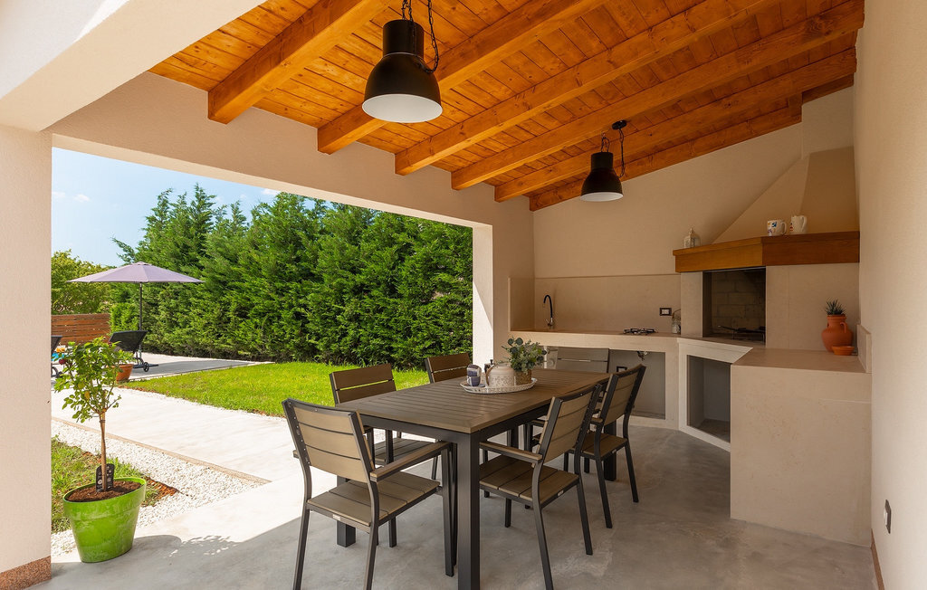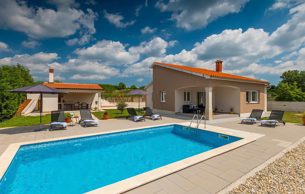 Vous rêvez de vacances reposantes en famille ? Alors la Villa Rita est le choix parfait pour vous ! Elle se trouve dans un endroit calme et idyllique au cœur de l'Istrie centrale. La villa peut accueillir six personnes au total dans trois chambres à coucher. À l'extérieur, vous trouverez une piscine privée dans laquelle vous pourrez vous rafraîchir pendant les chaudes journées d'été ou profiter de la brise estivale tout en vous relaxant sur l'un des transats. À quelques pas de là se trouve une salle à manger ombragée avec une cuisine d'été et un barbecue au charbon de bois - l'endroit idéal pour se réunir en famille. Utilisez le barbecue pour montrer vos talents de grilliste et régaler vos proches. En entrant à l'intérieur de la villa depuis la terrasse, vous découvrirez un salon et une salle à manger ouverts, aménagés avec goût et reliés à une cuisine entièrement équipée. Il y a également trois chambres à coucher confortables et deux salles de bains. Réservez la Villa Rita et passez des vacances inoubliables dans le soleil de l'Istrie.La Villa Rita est située près du village médiéval de Tinjan, au cœur de l'Istrie. Sa situation magnifique offre aux hôtes la possibilité d'explorer les petites villes environnantes et de visiter leurs restaurants aux célèbres spécialités istriennes. Si vous souhaitez rester actif pendant vos vacances, c'est l'endroit idéal pour vous ! Les environs offrent de nombreuses possibilités de loisirs : Faire du vélo, de l'équitation, du jogging, des randonnées et bien plus encore. Tous les amoureux de la nature peuvent essayer la tyrolienne près de Pazin. La côte adriatique avec ses plages et ses stations balnéaires comme Porec, Rovinj et Novigrad n'est qu'à une courte distance en voiture de la villa. Nous vous recommandons de visiter la ville historique de Pula. La ville est connue pour son célèbre amphithéâtre datant du 1er siècle. Situé dans le centre-ville, c'est un symbole que vous devez absolument explorer. Pour ceux qui aiment l'histoire, nous recommandons une visite guidée afin d'apprendre de nombreuses choses intéressantes sur cet imposant bâtiment.