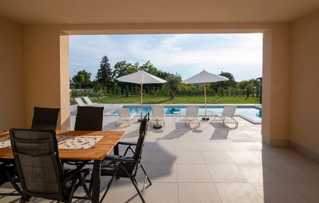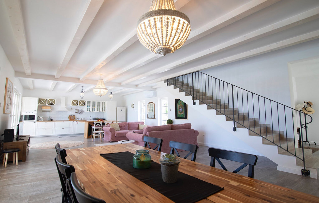 Si vous cherchez une villa pour des vacances reposantes, la Villa Stella Smoljanci est le choix idéal pour vous. Cette charmante villa offre trois chambres pouvant accueillir jusqu'à six personnes. Les poutres en bois qui s'étendent sur les plafonds de toutes les pièces confèrent à la villa un charme particulier. Les trois chambres sont situées au premier étage, elles sont spacieuses et confortables et disposent d'une salle de bain privée, de la climatisation et d'un accès à un balcon commun. Dans deux chambres, vous trouverez deux lits simples qui peuvent être réunis pour former un lit double. Dans la troisième chambre, il y a un lit double. Au rez-de-chaussée de la villa, vous trouverez un salon avec un canapé et une télévision, relié à la salle à manger et à une cuisine entièrement équipée. Toute la pièce est climatisée. À côté de la maison se trouve une terrasse couverte avec une table à manger où vous pourrez déguster de délicieux plats préparés sur le barbecue qui est à votre disposition. Dans le jardin de la villa, vous trouverez une piscine et des chaises longues où vous pourrez vous détendre en lisant un livre ou en buvant une boisson rafraîchissante, ainsi qu'une table de ping-pong pour vous divertir. Le terrain est entièrement clôturé et dispose d'un parking privé pour 4 voitures. Réservez votre hébergement à la Villa Stella Smoljanci et passez des vacances inoubliables en famille ou entre amis.La Villa Stella Smoljanci est située au cœur de l'Istrie rurale, à mi-chemin entre Pazin et Pula. L'Istrie centrale est connue pour ses oliveraies et ses vignobles, ainsi que pour ses petites villes médiévales pittoresques. Dans la ville voisine de Svetvinenat, on trouve des restaurants, des cafés, des vignobles et des magasins. Cette charmante localité n'est pas seulement connue pour ses sites historiques et culturels, mais aussi pour son excellente et délicieuse cuisine istrienne. Nous vous recommandons de goûter à des spécialités telles que le prosciutto d'Istrie fait maison, la pâte d'Istrie (Fui) et les spécialités méditerranéennes faites maison. De nombreux itinéraires de randonnée et de vélo sont à votre disposition dans cette région pour une véritable expérience de l'Istrie. Les célèbres villes animées le long de la magnifique côte ainsi que les plages ne sont qu'à une courte distance en voiture à travers les environs pittoresques.