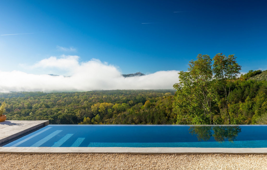 Située en Istrie centrale, près de Motovun, sur une colline, elle vous offre une vue vraiment magique, car cette luxueuse villa est entourée de champs verdoyants, de vignobles et de collines.